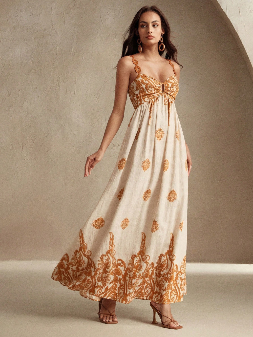 MiuVogue Paetlr Orange Color Block Printed Dress, Sexy Beach Boho Dress For Women, Spring/Summer