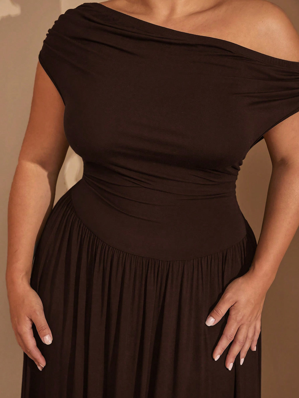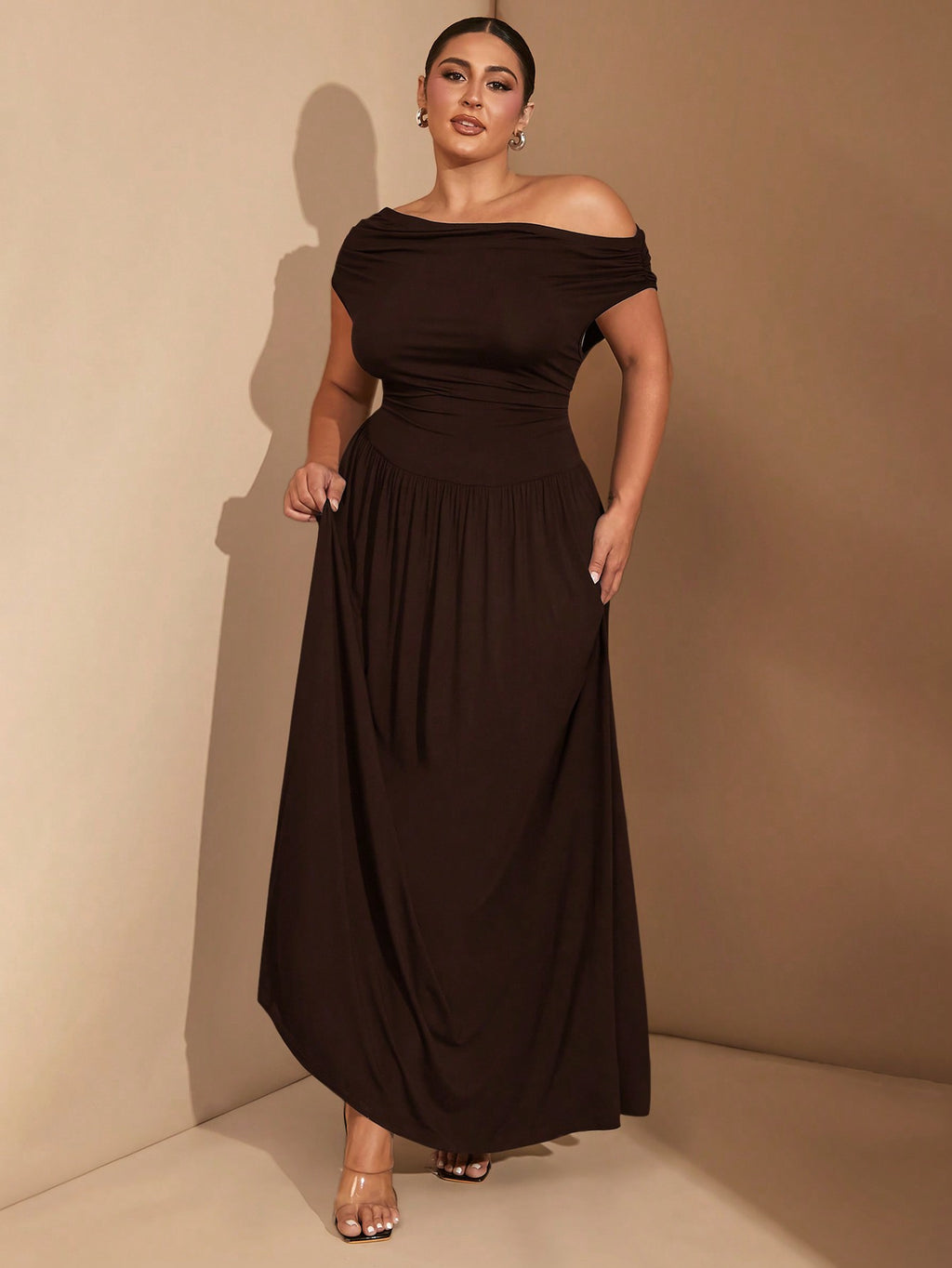 MiuVogue Plus Size Women's Elegant Super Versatile Stretch Fabric Black Or Daily Wear, Party, Off-Shoulder, Big Women, A-Level Dress,Birthday Dresses For Women