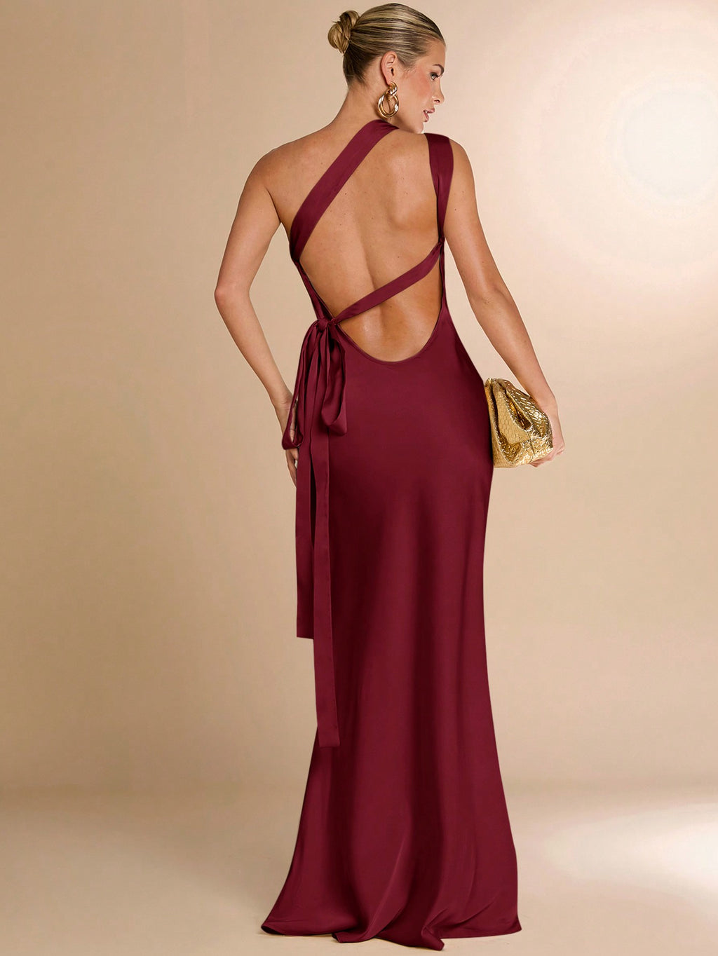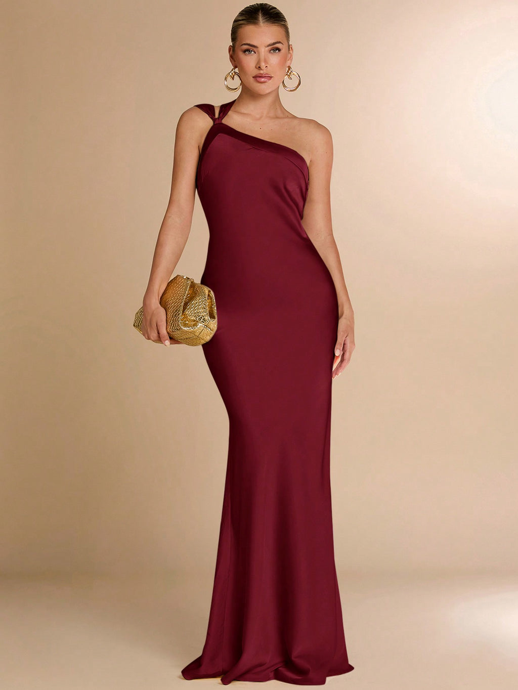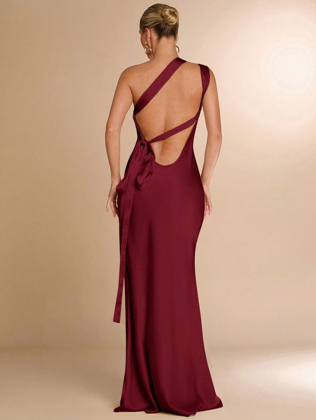 MiuVogue Sexy Minimalist Solid Satin One Shoulder Backless Dress, Suitable For Party, Cocktail Party, Formal Occasion, Romantic Date, Wedding,Summer Dresses For Women,Pastel Dresses For Women