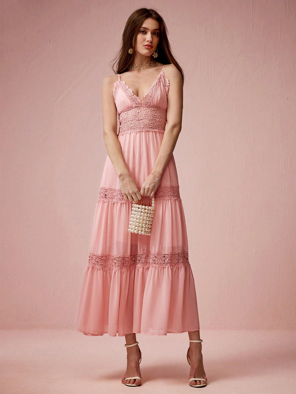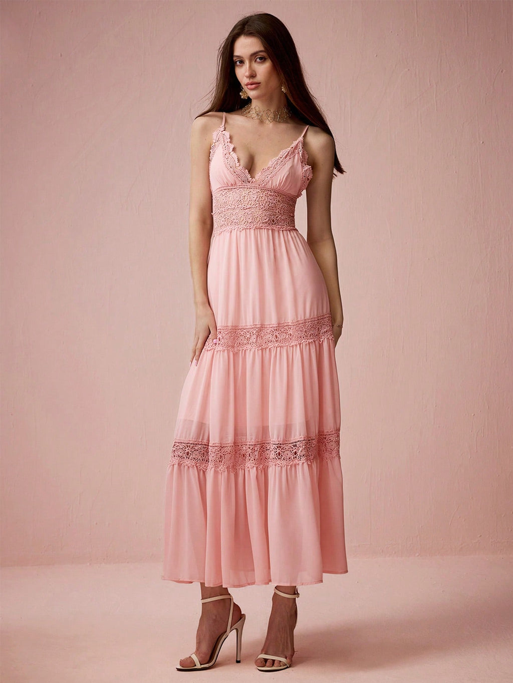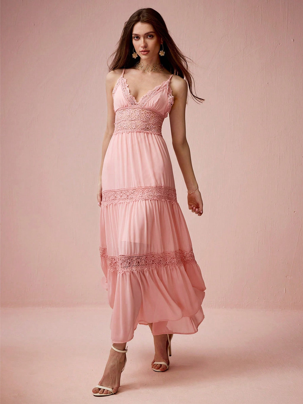MiuVogue Spring/Summer Romantic Women Lace Splicing Sling Long Dresses,Sweet