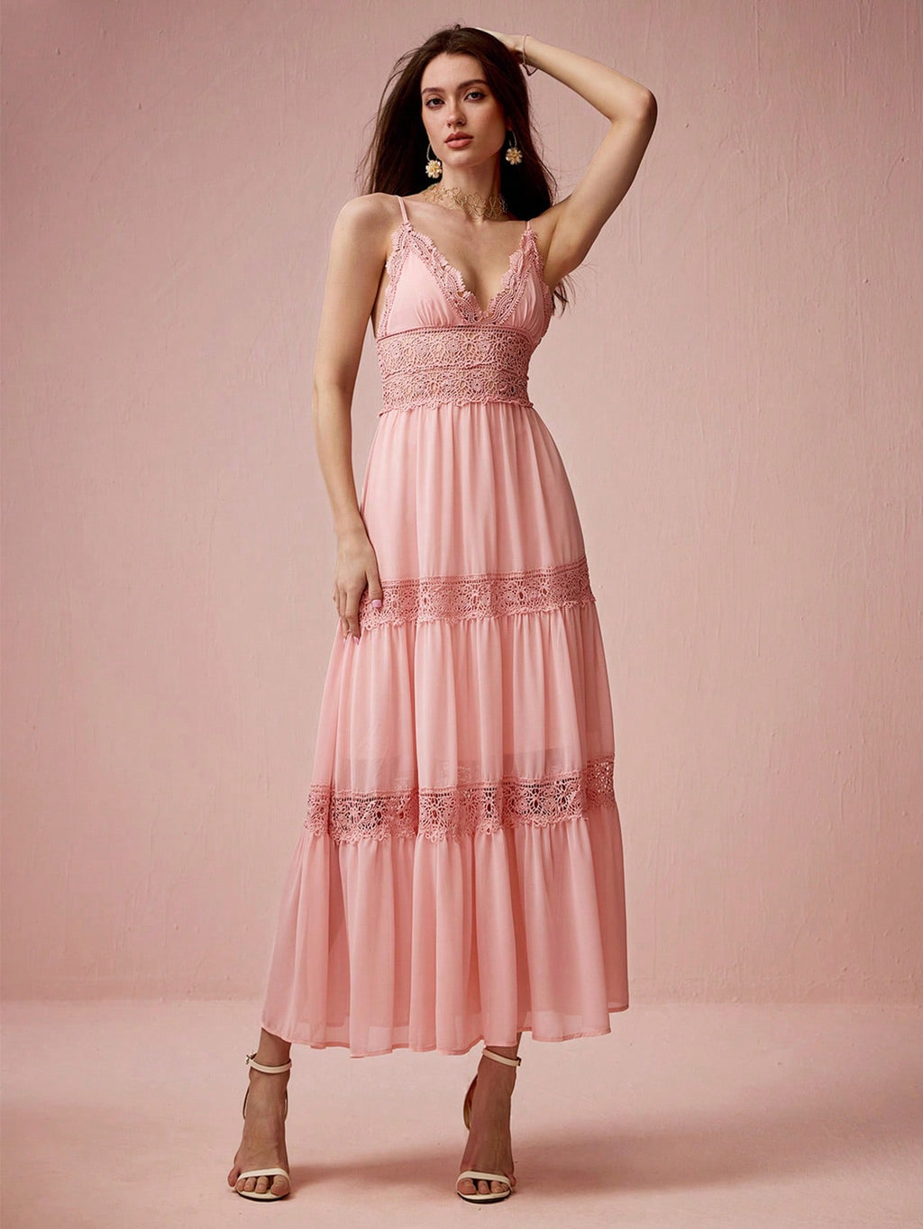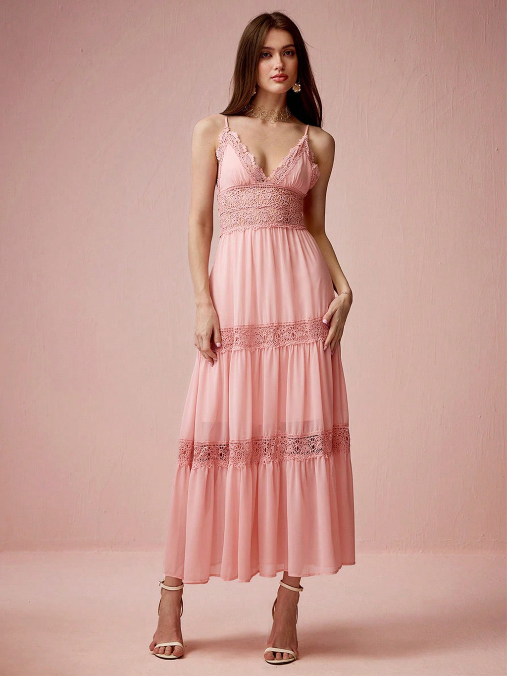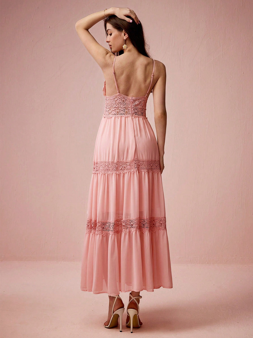 MiuVogue Spring/Summer Romantic Women Lace Splicing Sling Long Dresses,Sweet