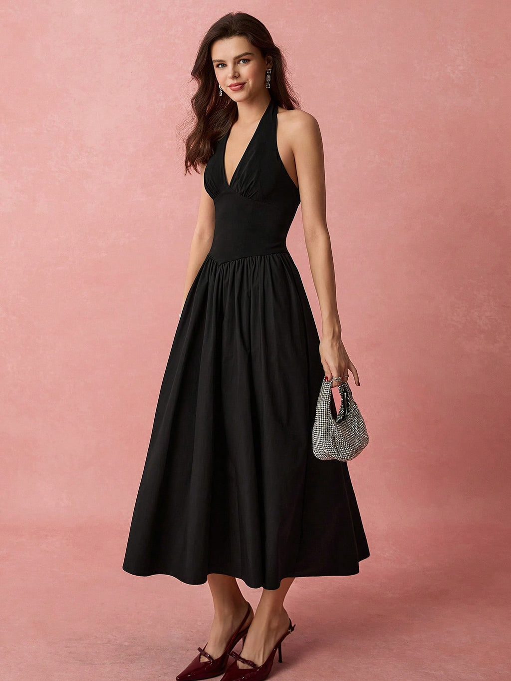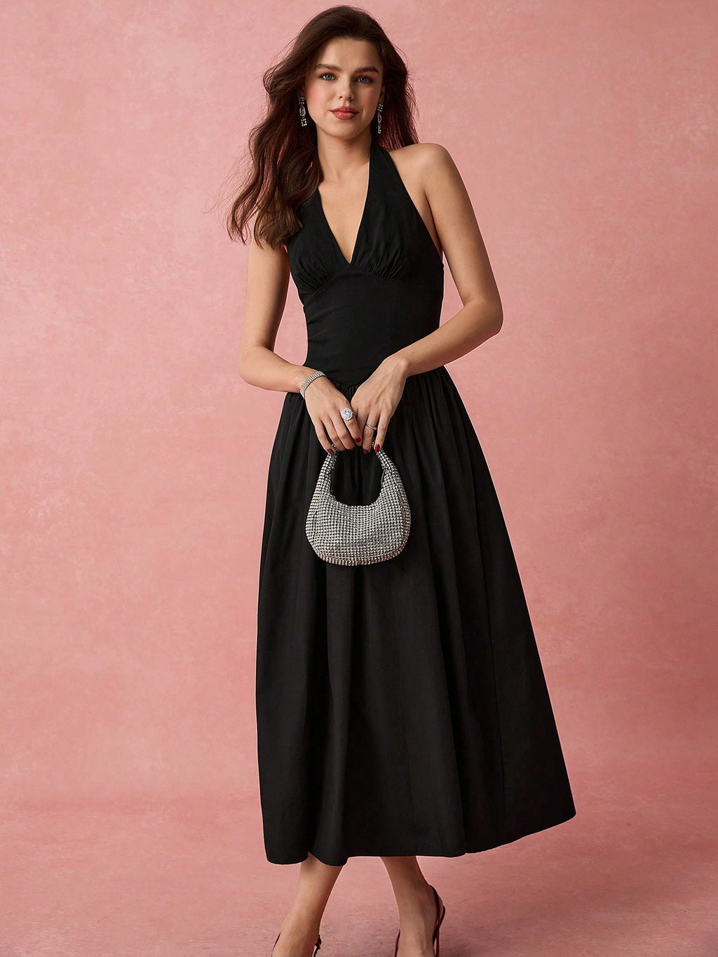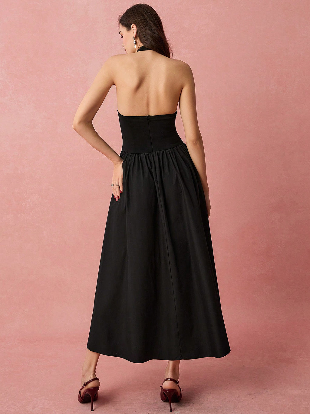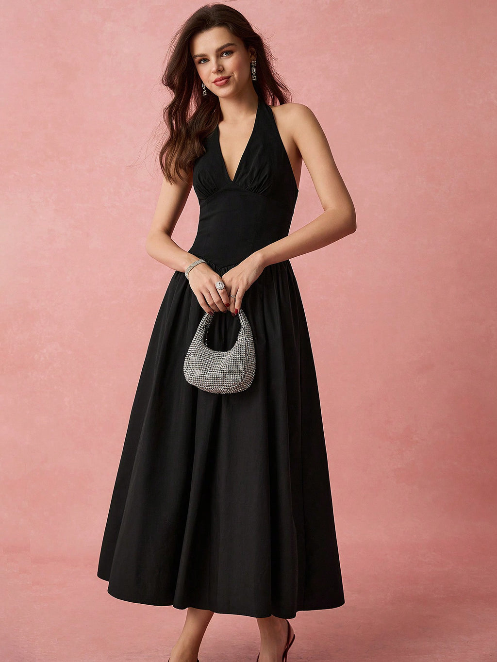 MiuVogue Spring/Summer Romantic Women's Fashionable Black Halter Neck Sleeveless A-Line Long Dress,Sweet