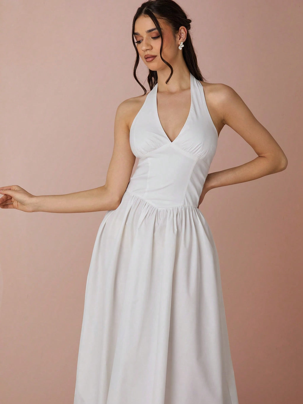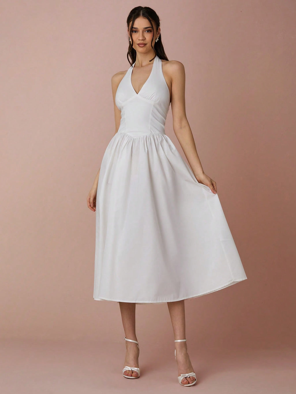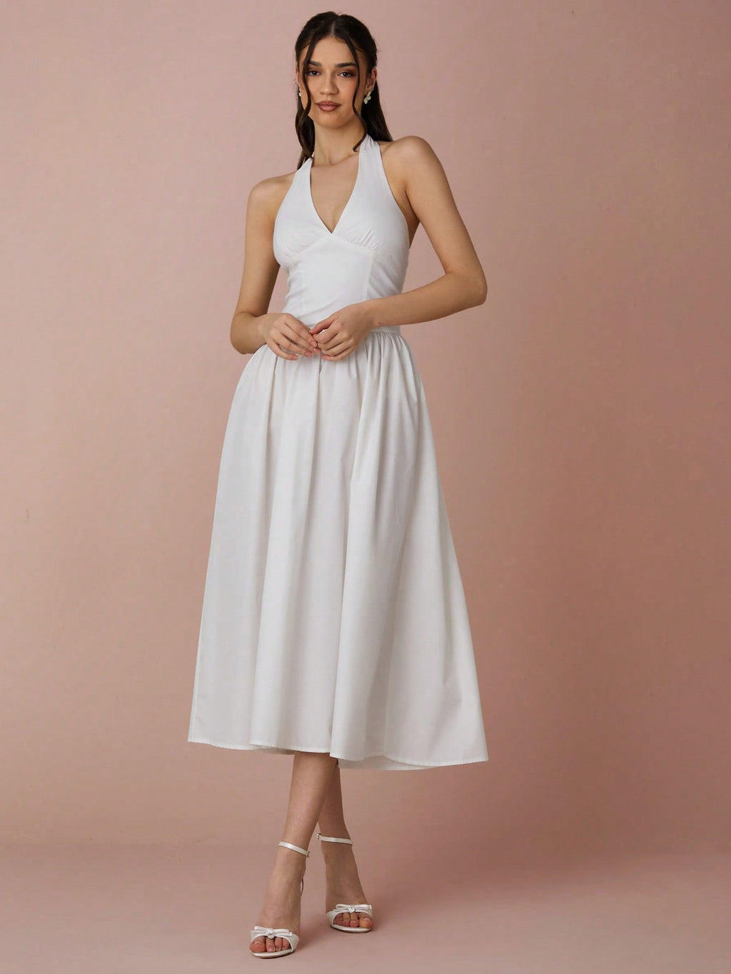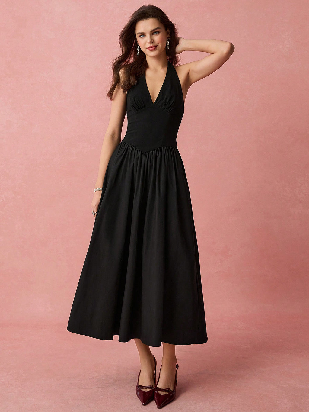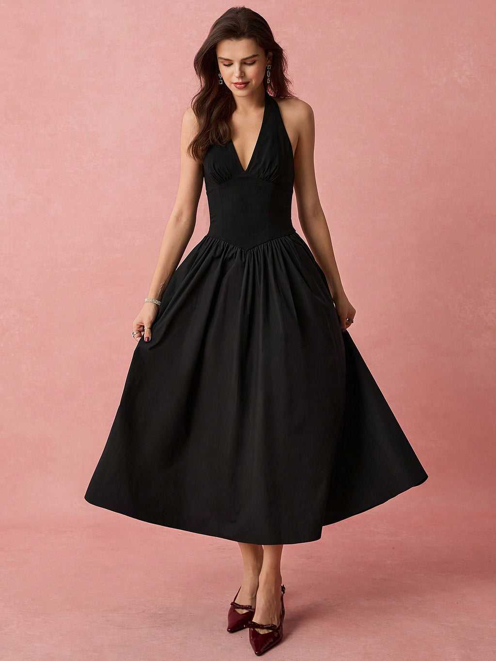 MiuVogue Spring/Summer Romantic Women's Fashionable Black Halter Neck Sleeveless A-Line Long Dress,Sweet