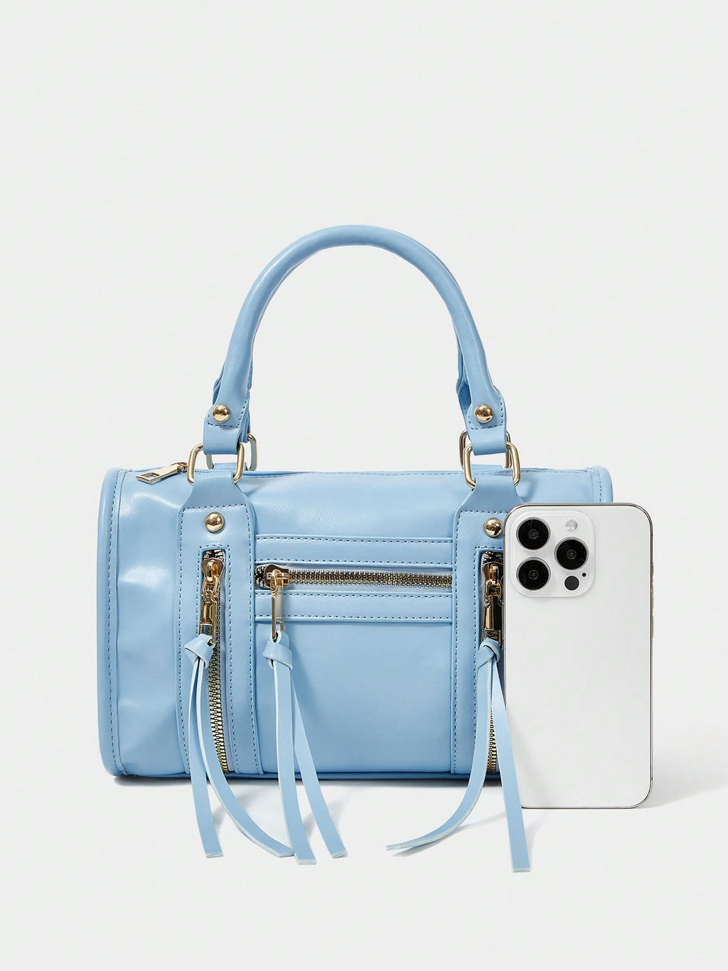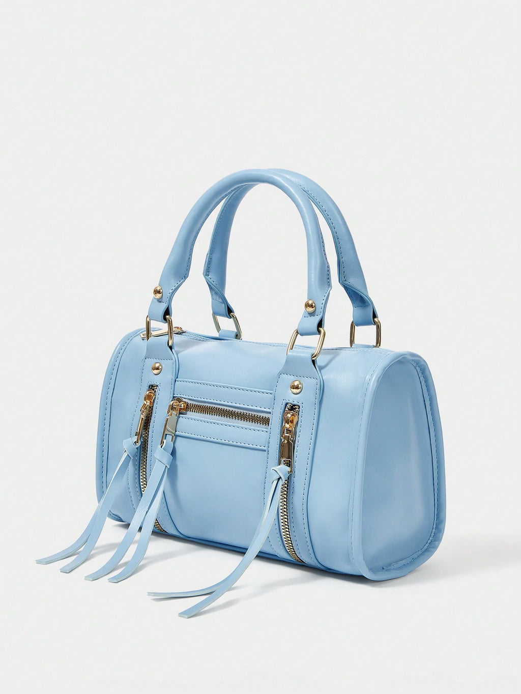 MIU ljetna torba u resort stilu u svijetloplavoj boji — ženska motoristička torba koja se može nositi i kao torba za rame.