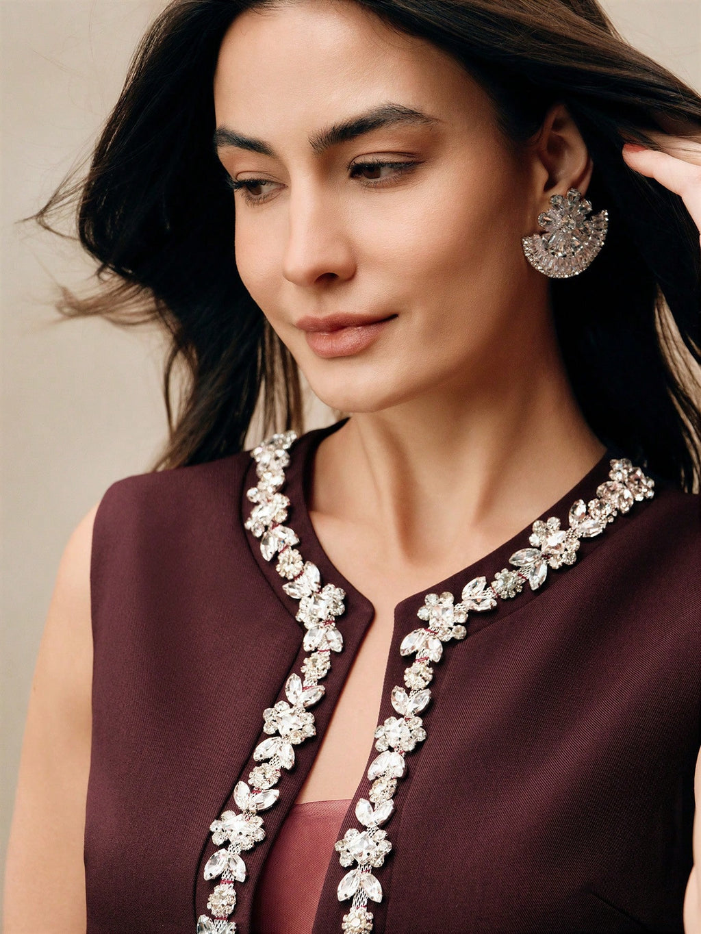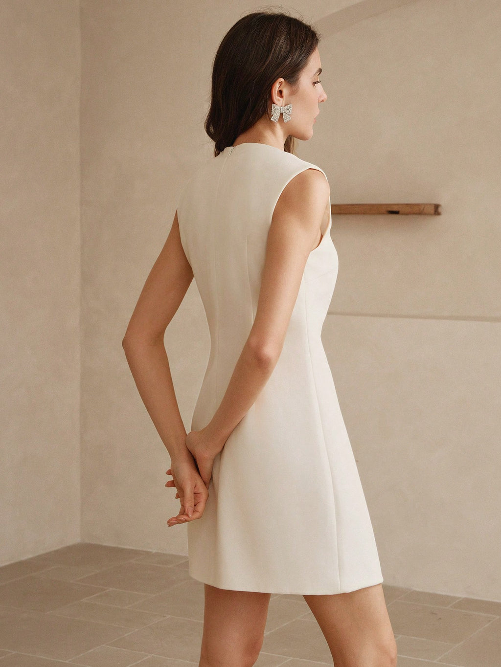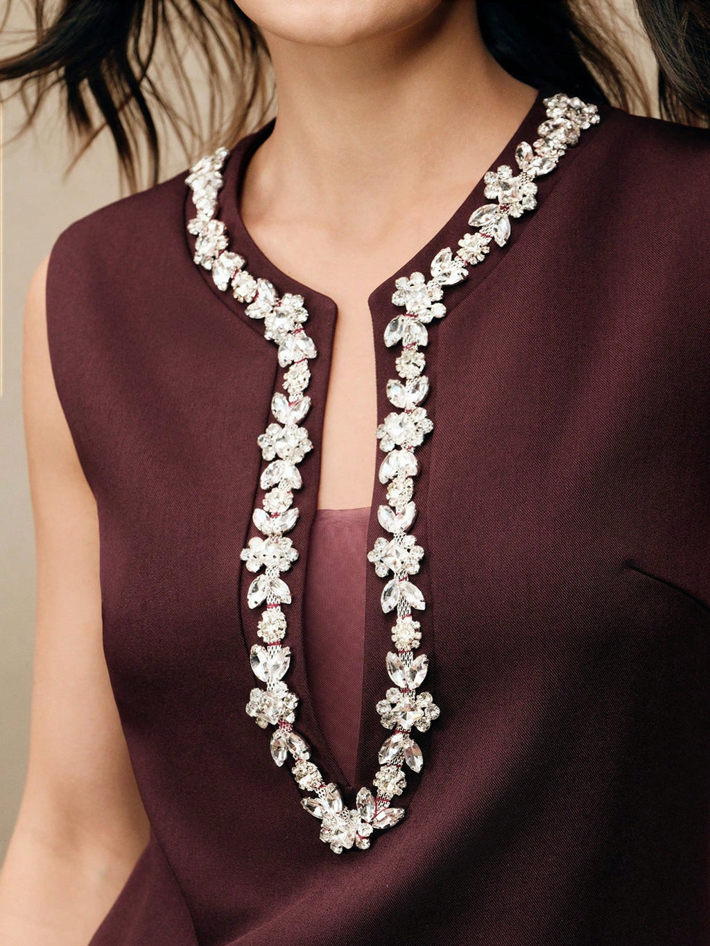 MiuVogue Wealthy Heiress French Fashionable Embellished Collar Beaded Hollow Waist Fitted Sleeveless Bodycon Dress