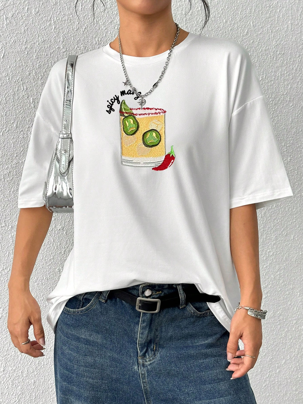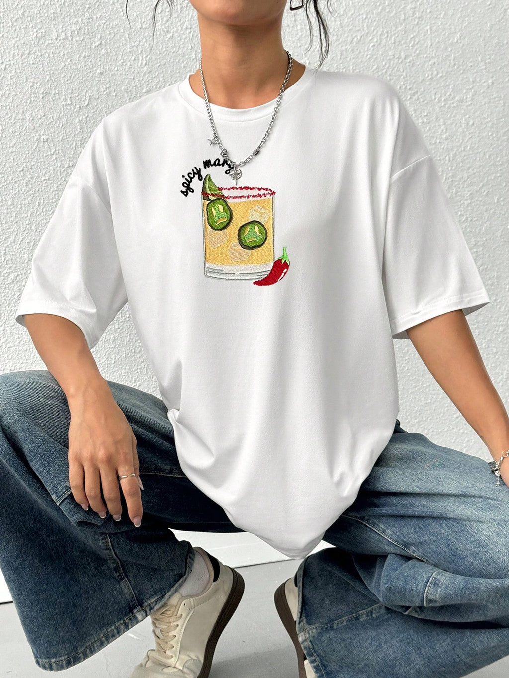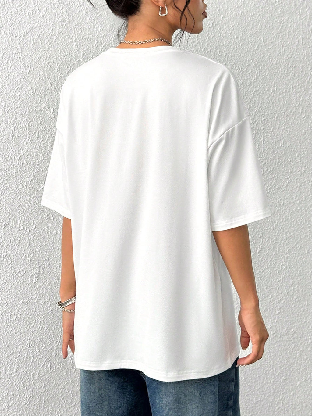 MiuVogue Women Cartoon Print Casual Round Neck Loose Short Sleeve T-Shirt