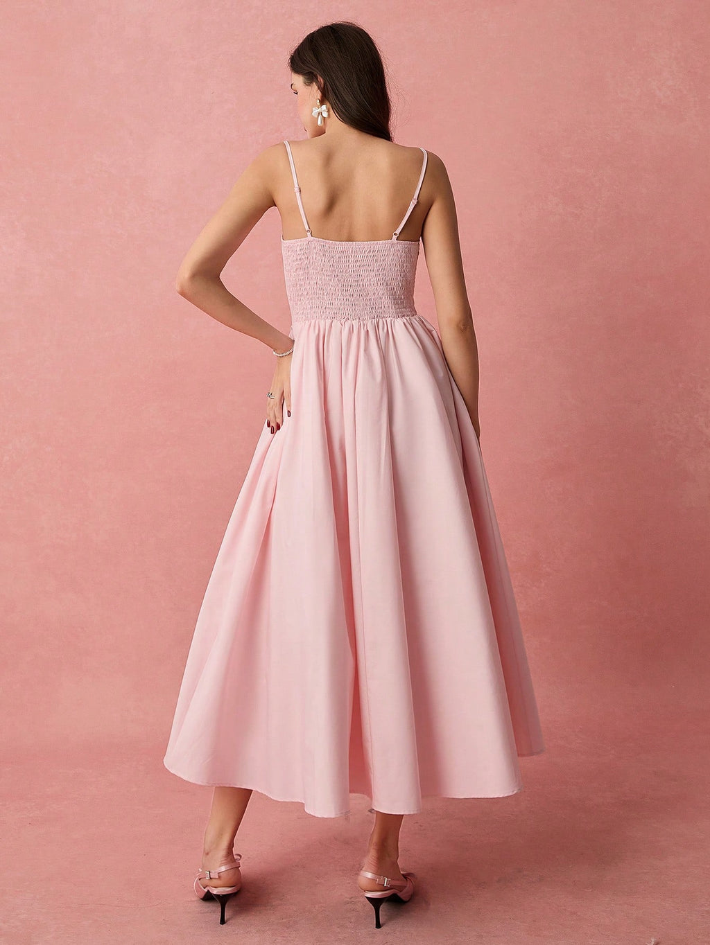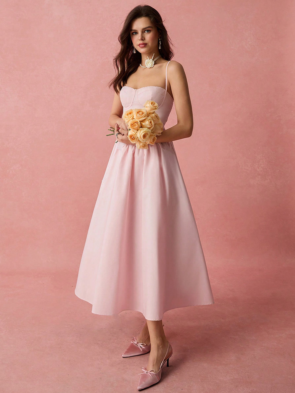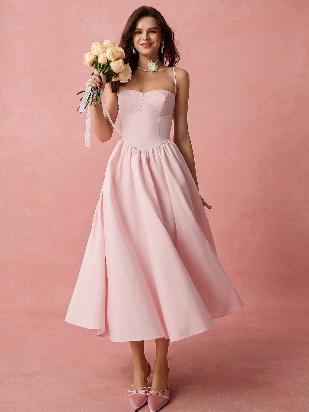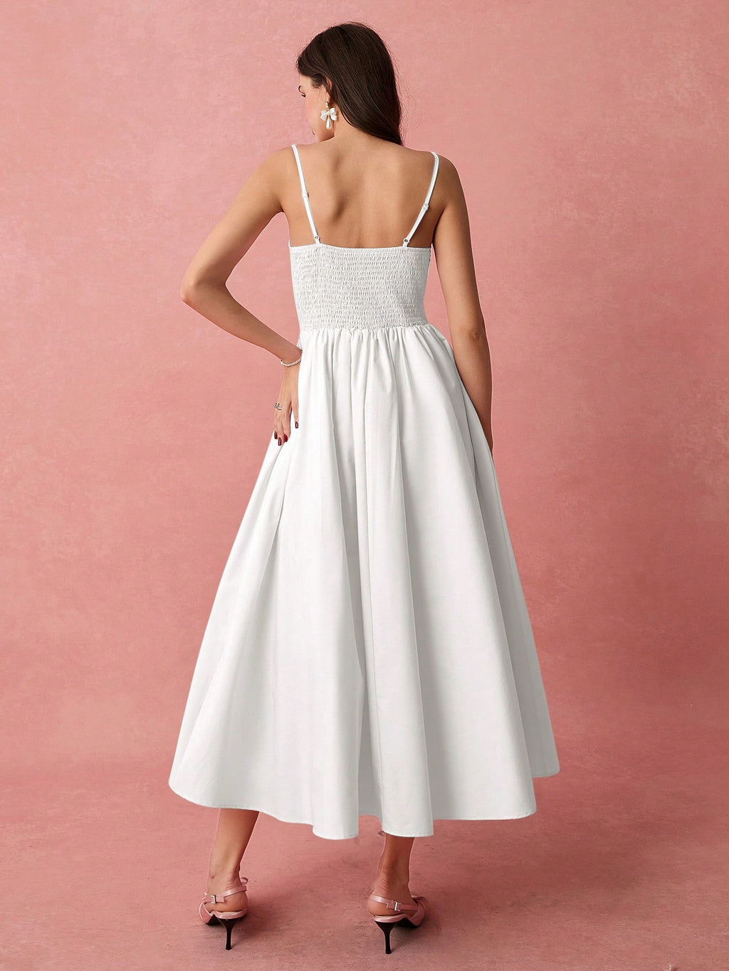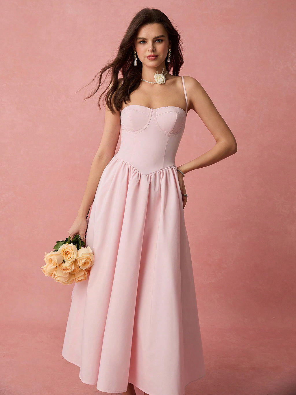 MiuVogue Women Elegant Solid Color Camisole Waist Fitted Dress,Butter Yellow,Summer Dresses For Women