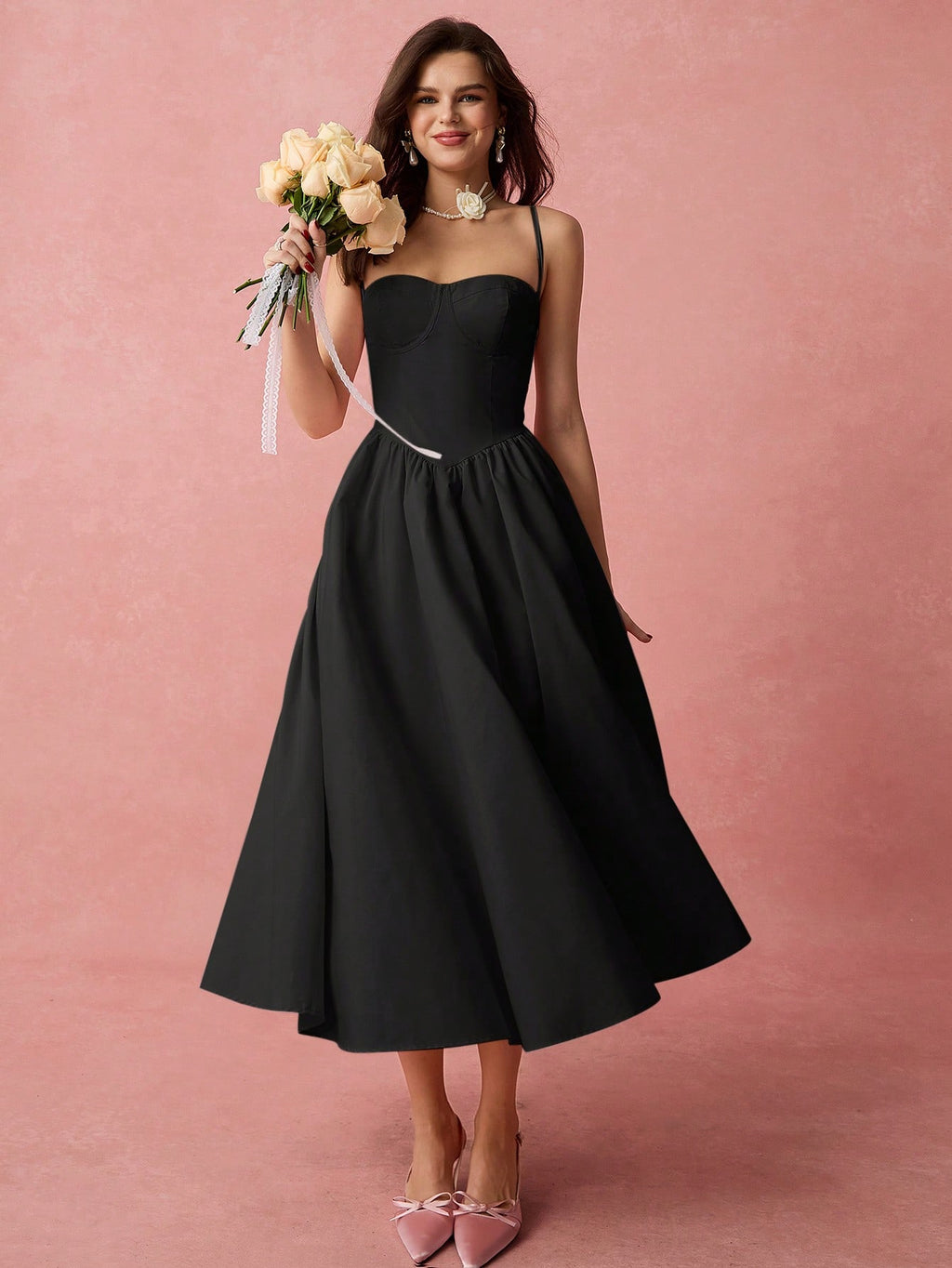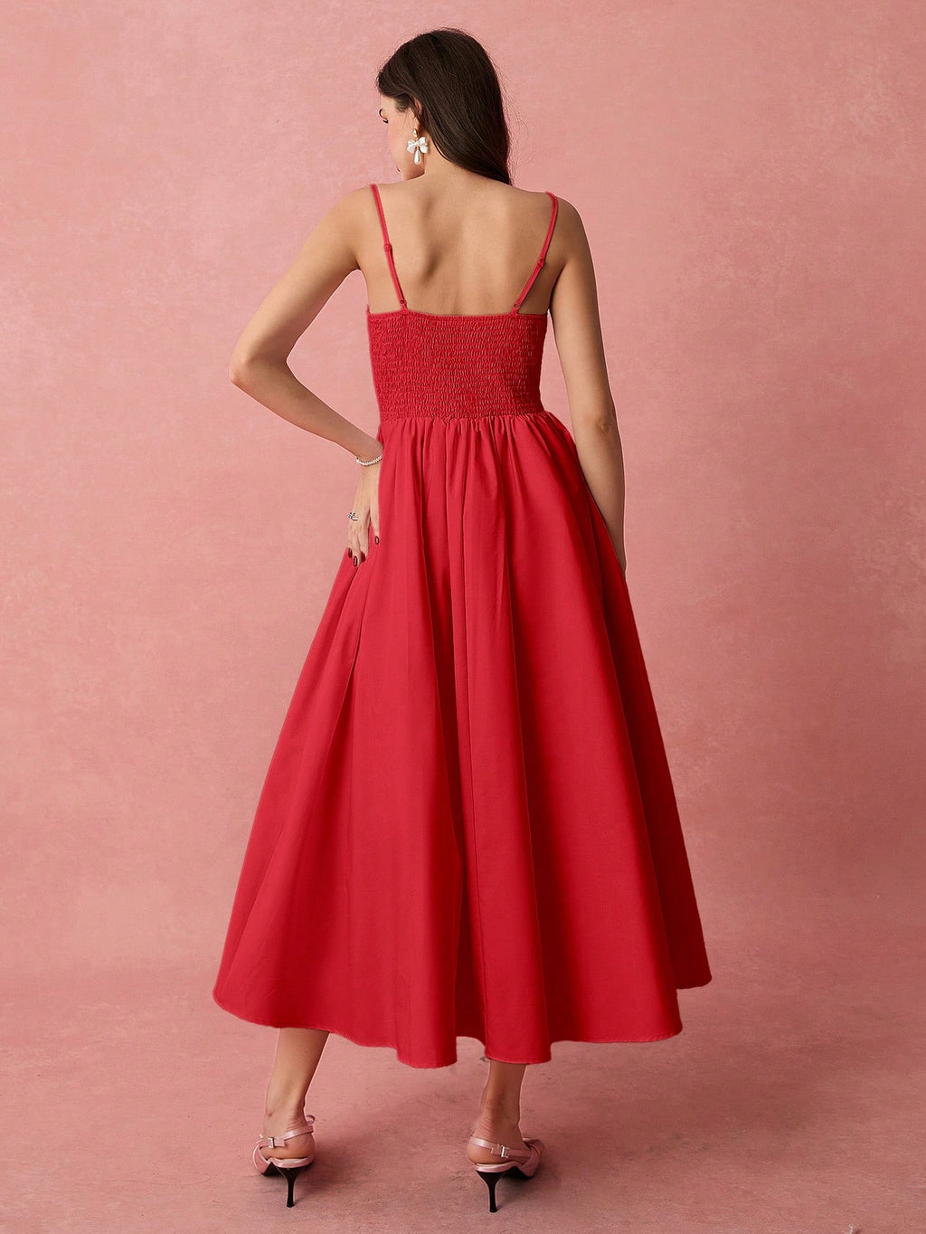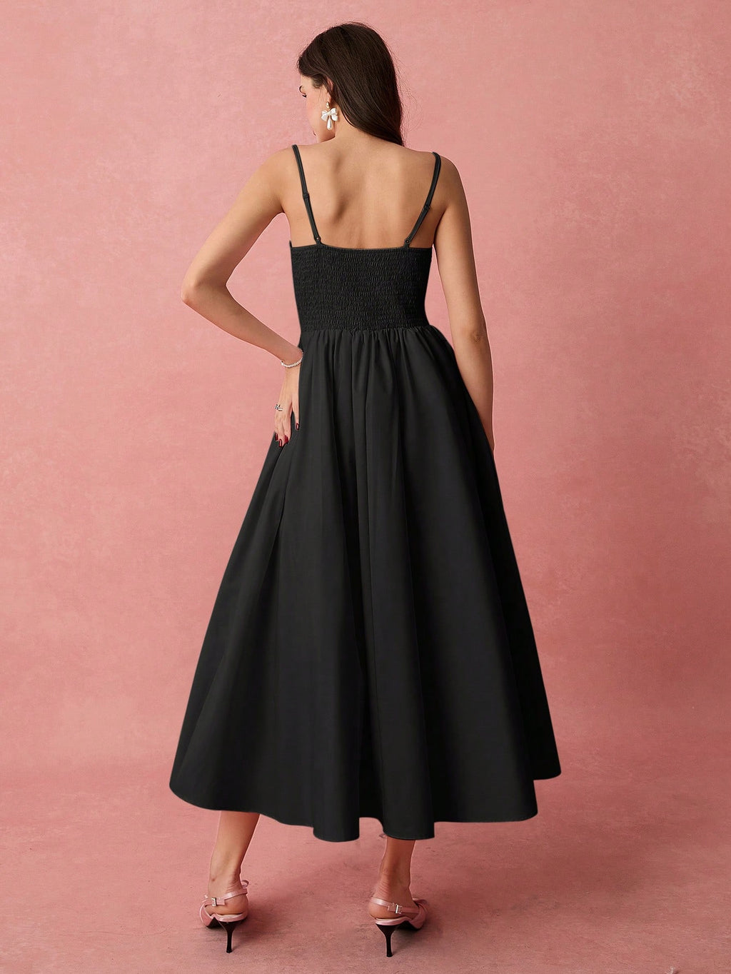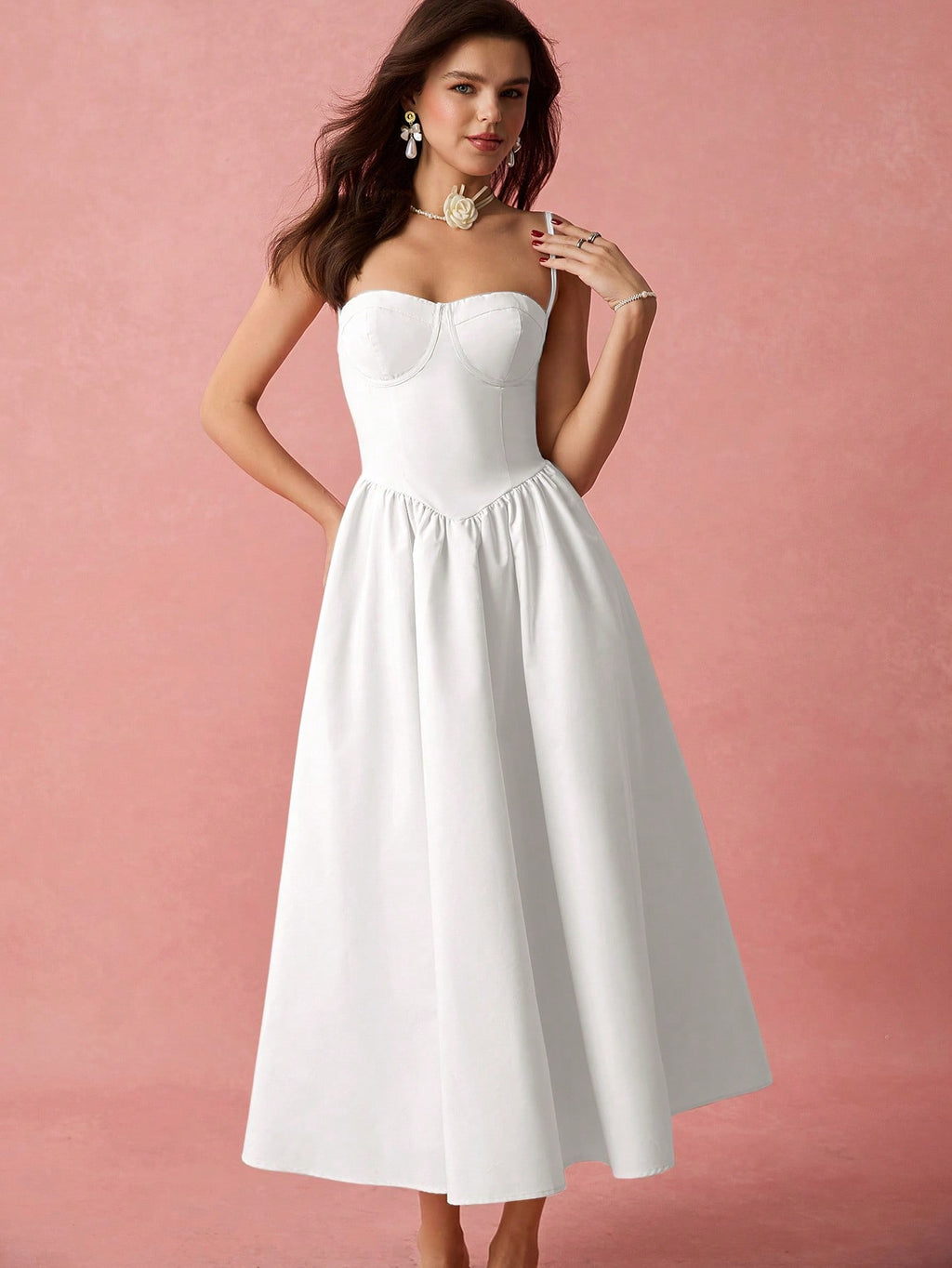 MiuVogue Women Elegant Solid Color Camisole Waist Fitted Dress,Butter Yellow,Summer Dresses For Women