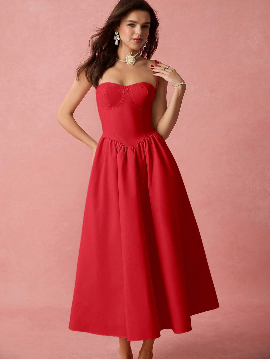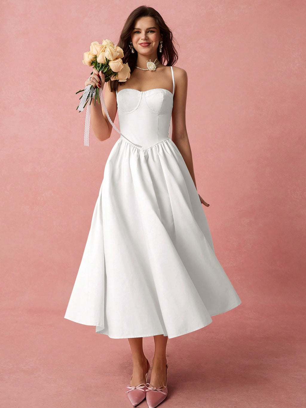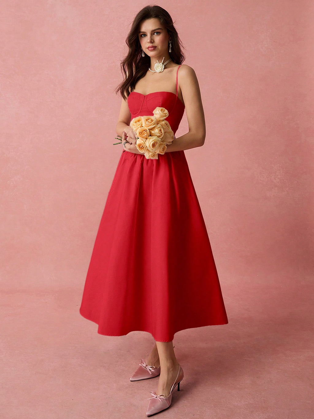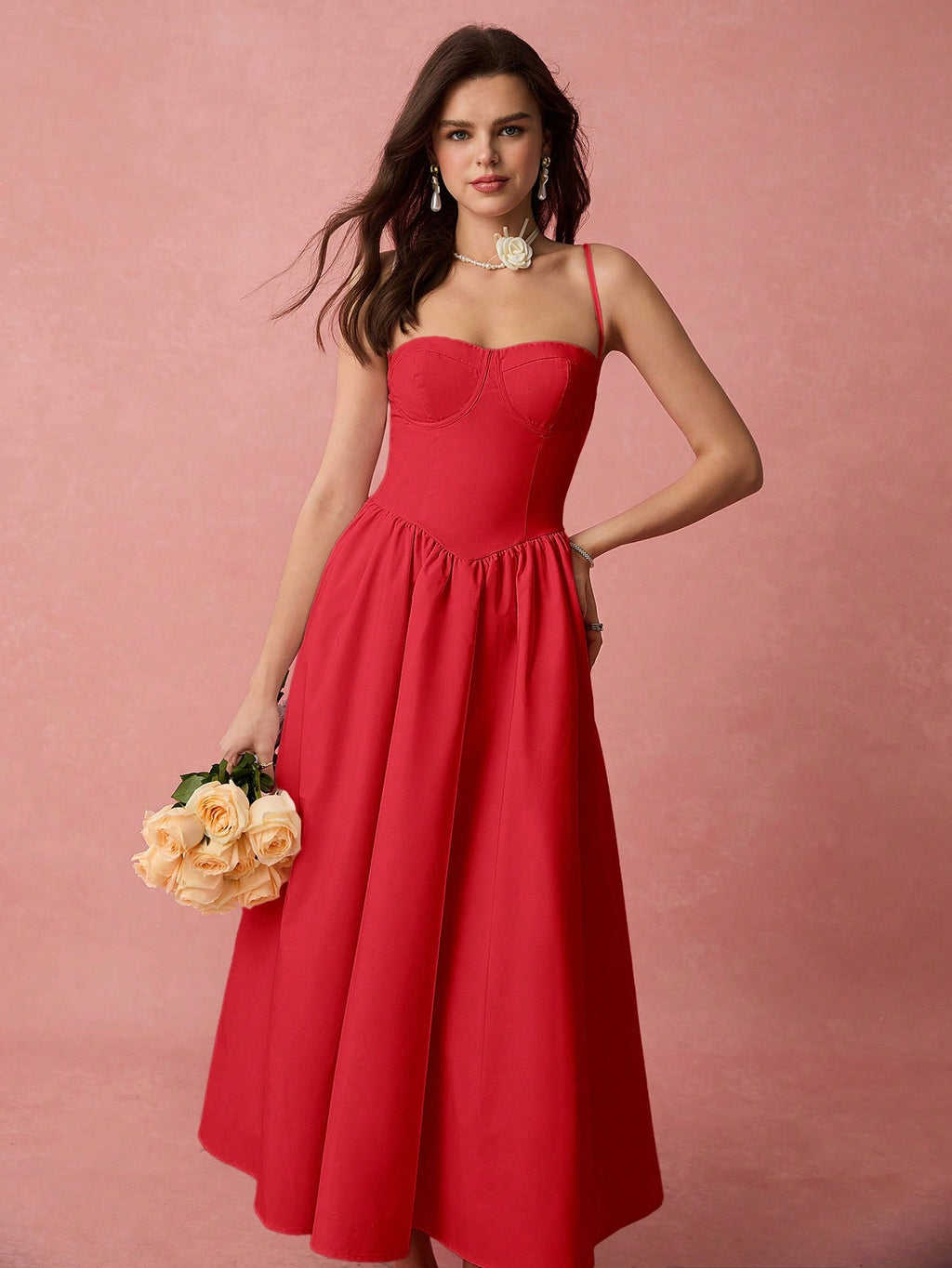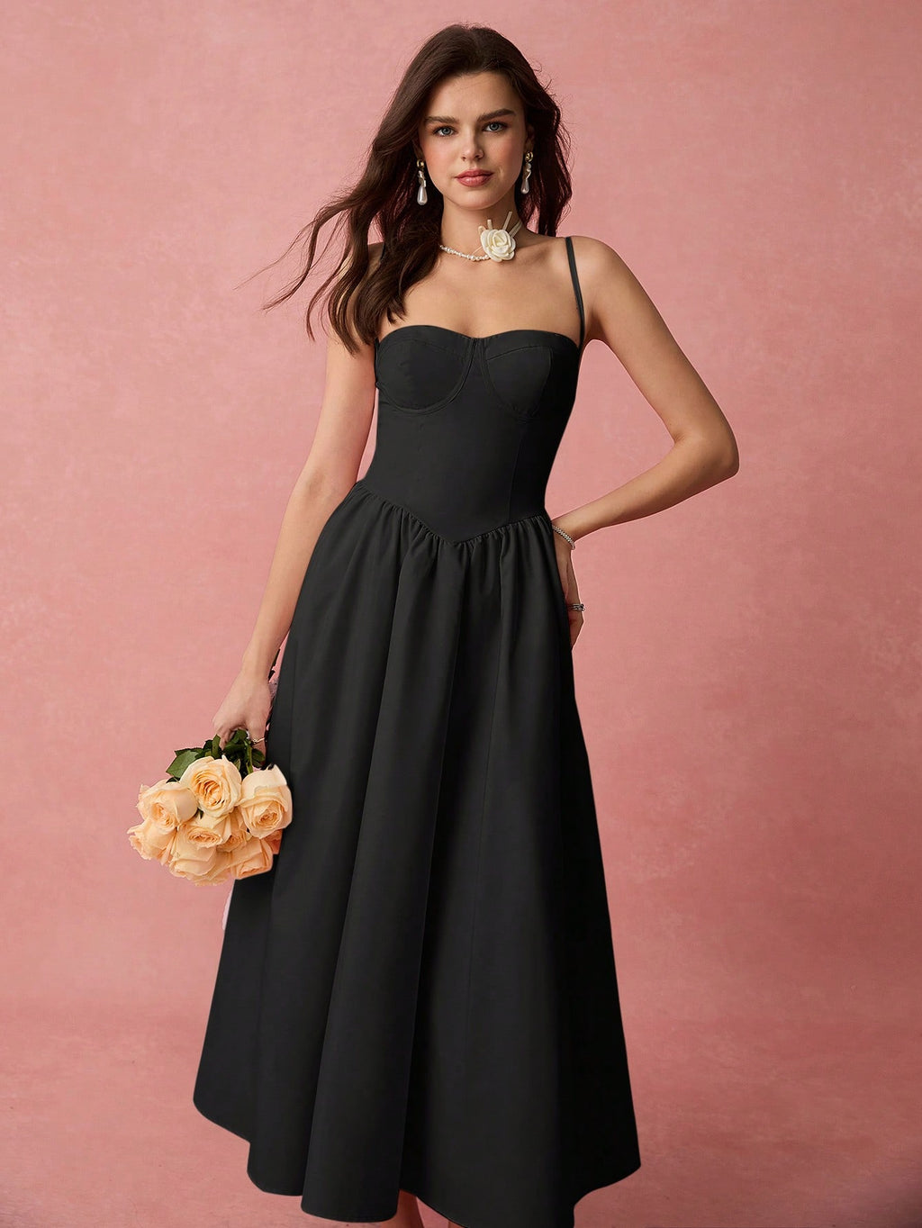 MiuVogue Women Elegant Solid Color Camisole Waist Fitted Dress,Butter Yellow,Summer Dresses For Women