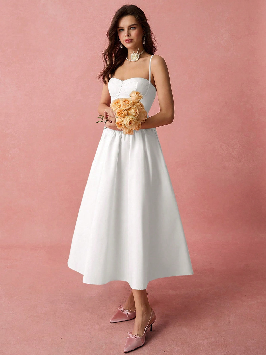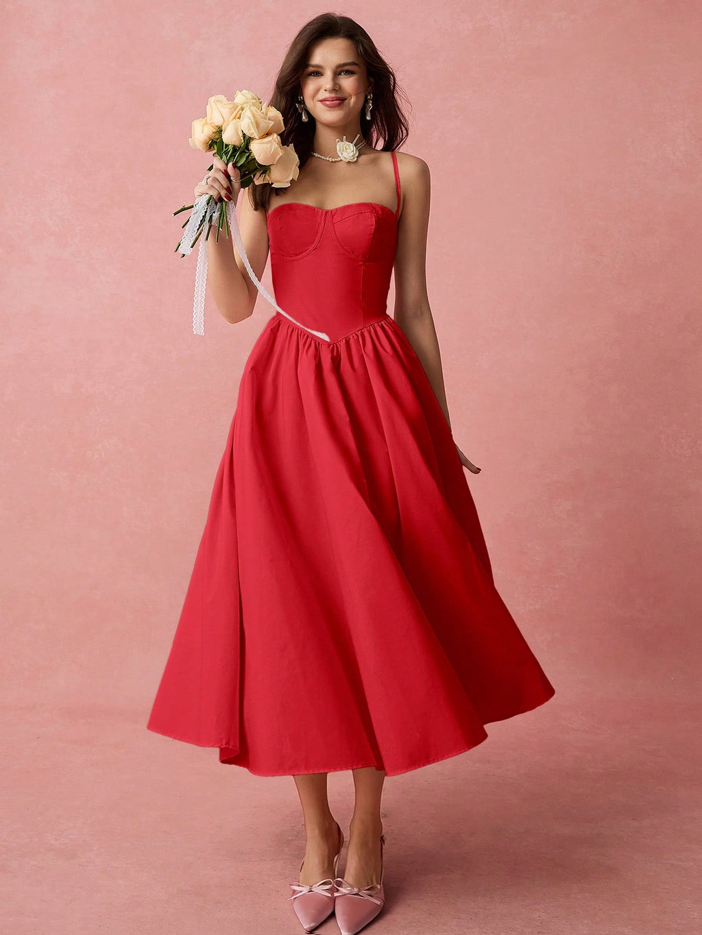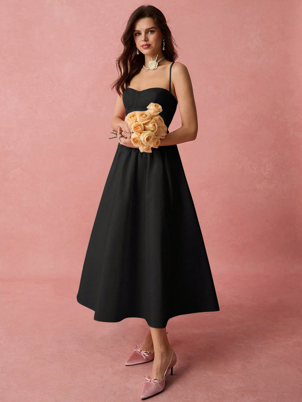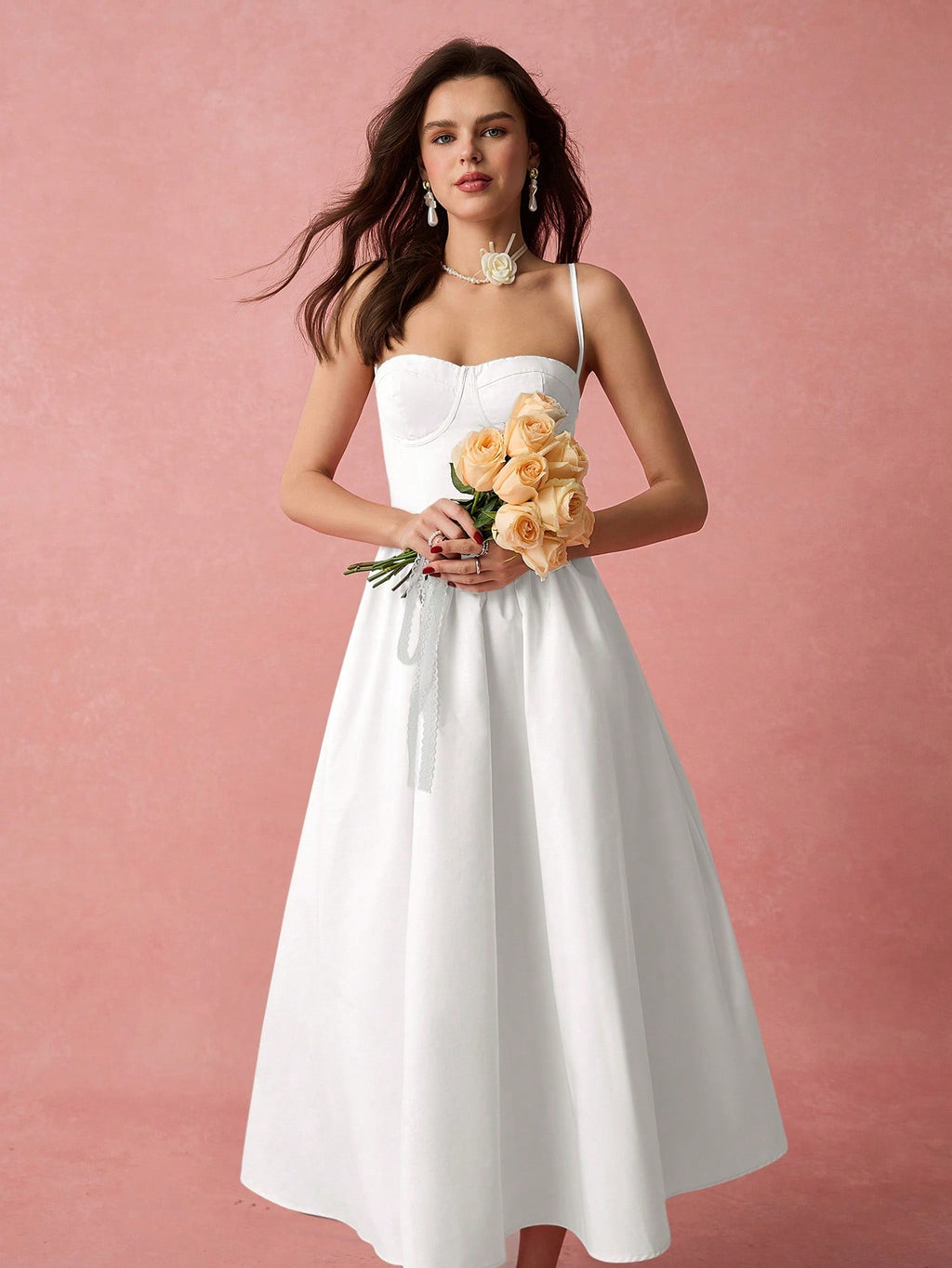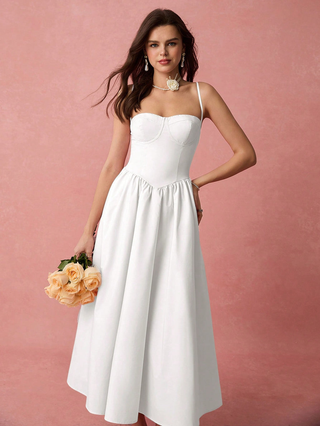 MiuVogue Women Elegant Solid Color Camisole Waist Fitted Dress,Butter Yellow,Summer Dresses For Women