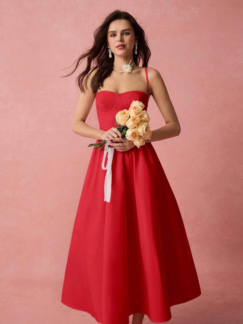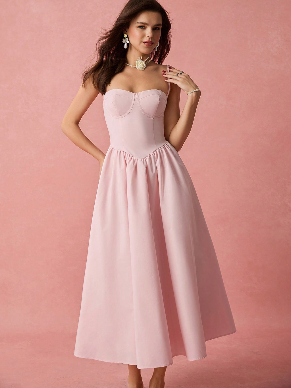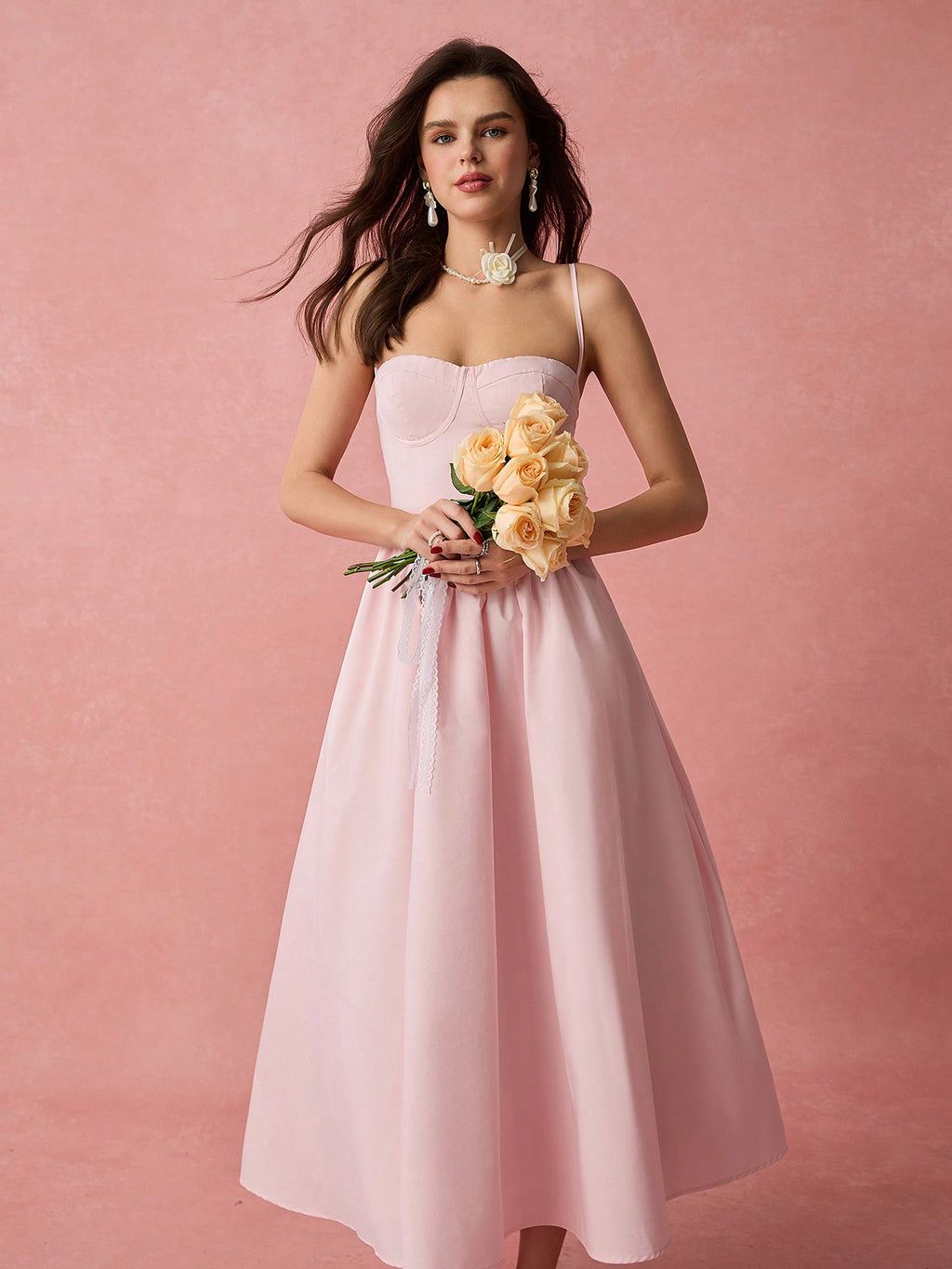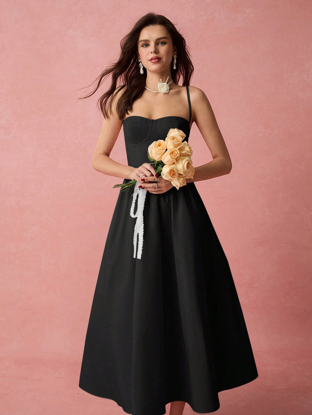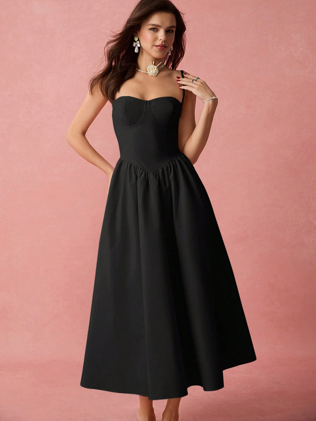 MiuVogue Women Elegant Solid Color Camisole Waist Fitted Dress,Butter Yellow,Summer Dresses For Women