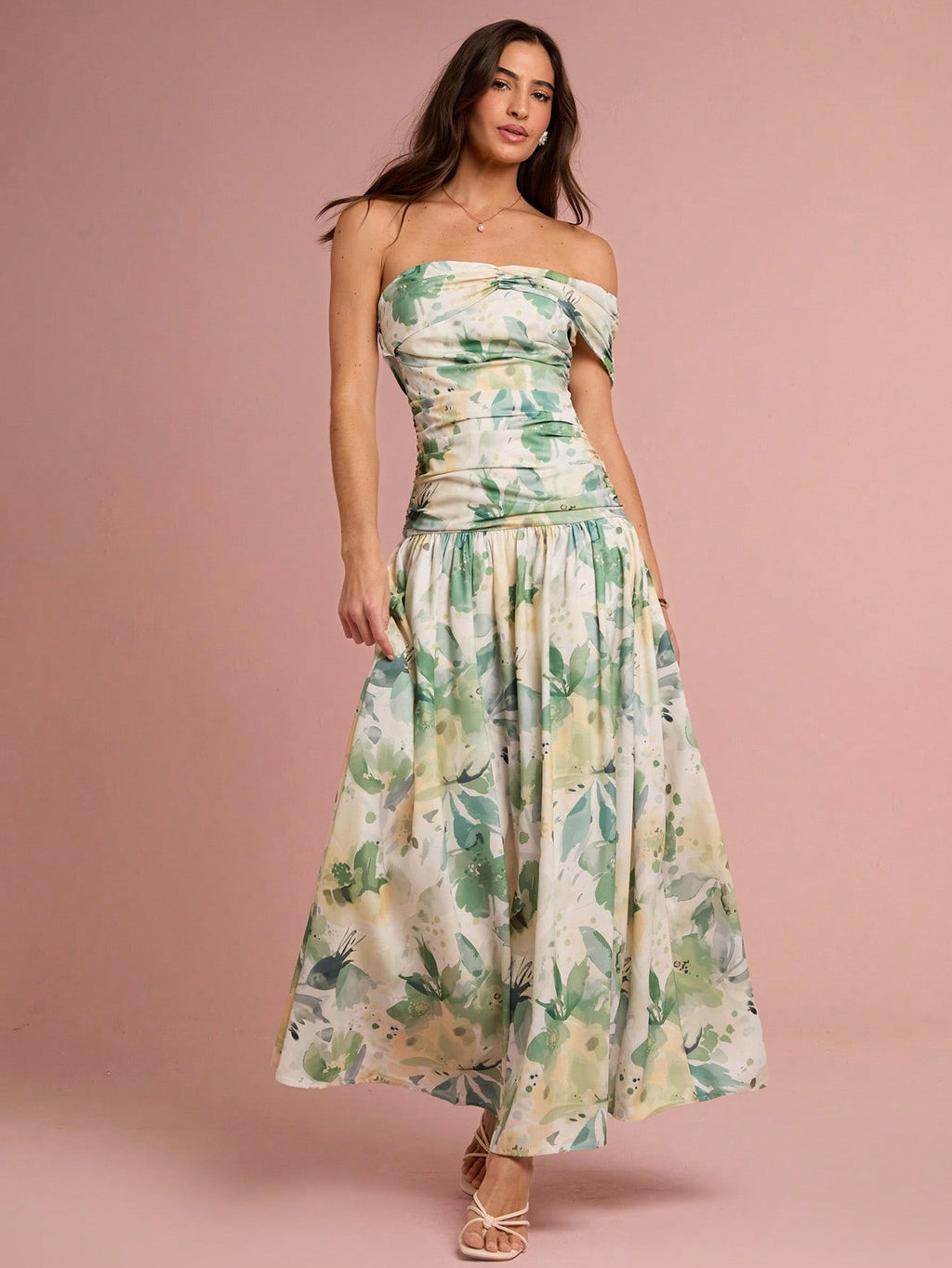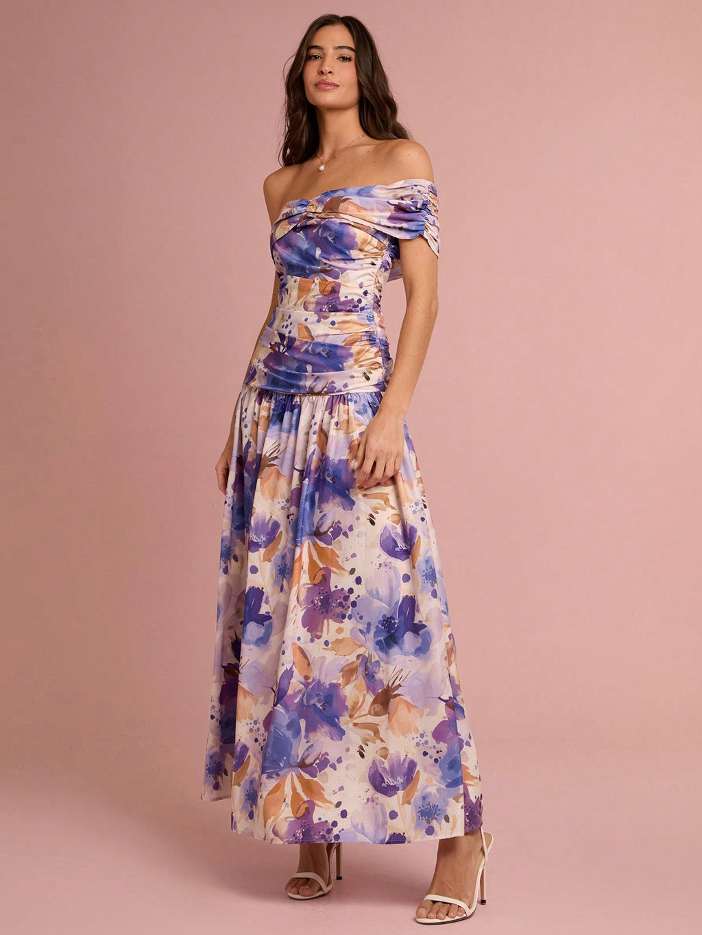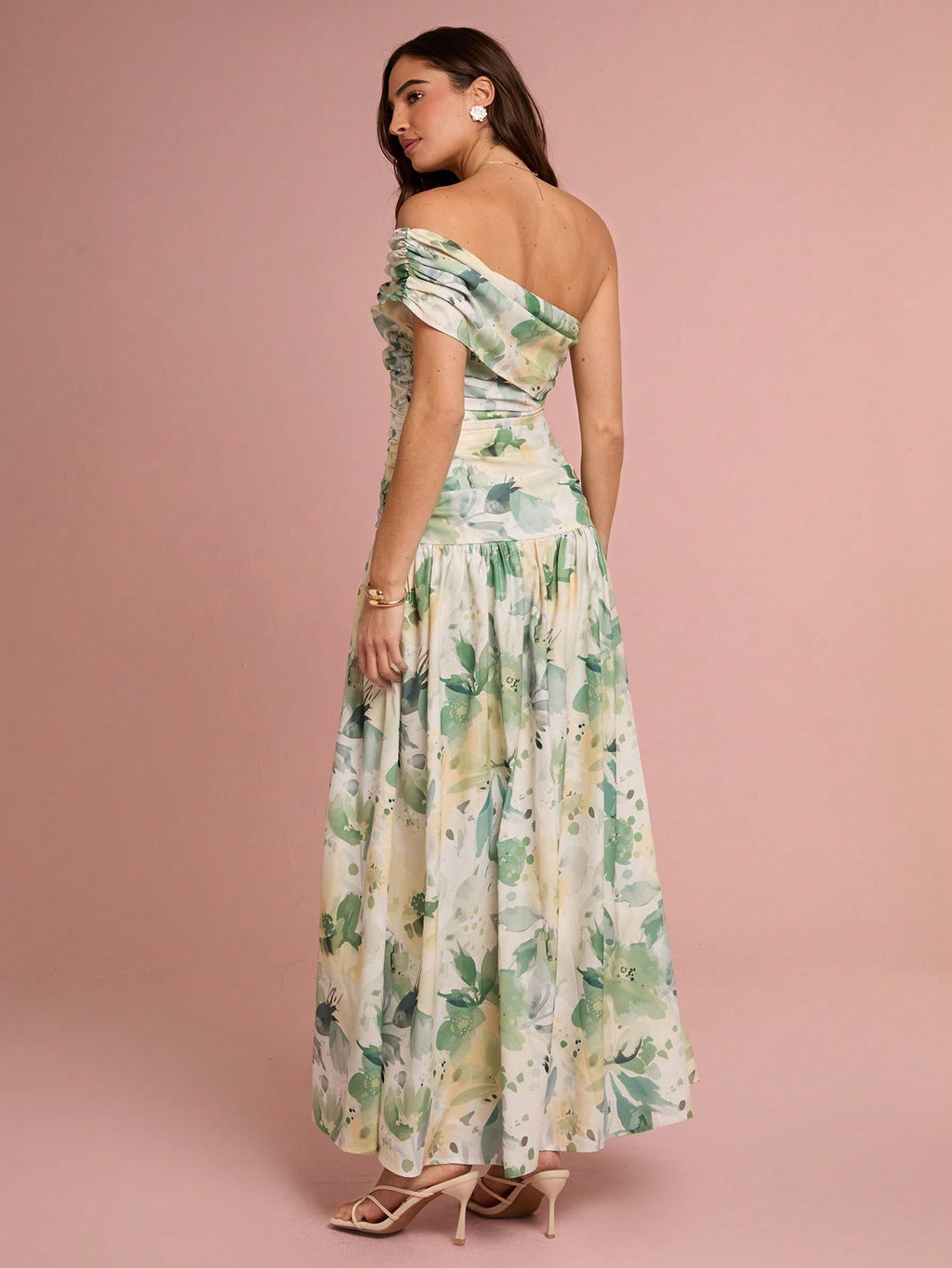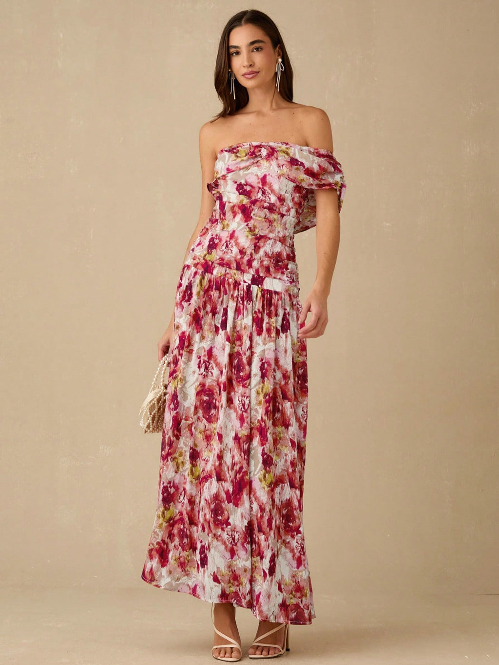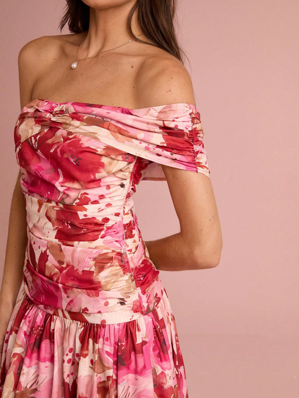 MiuVogue Women Summer Floral Print Off-Shoulder Ruffle Dress