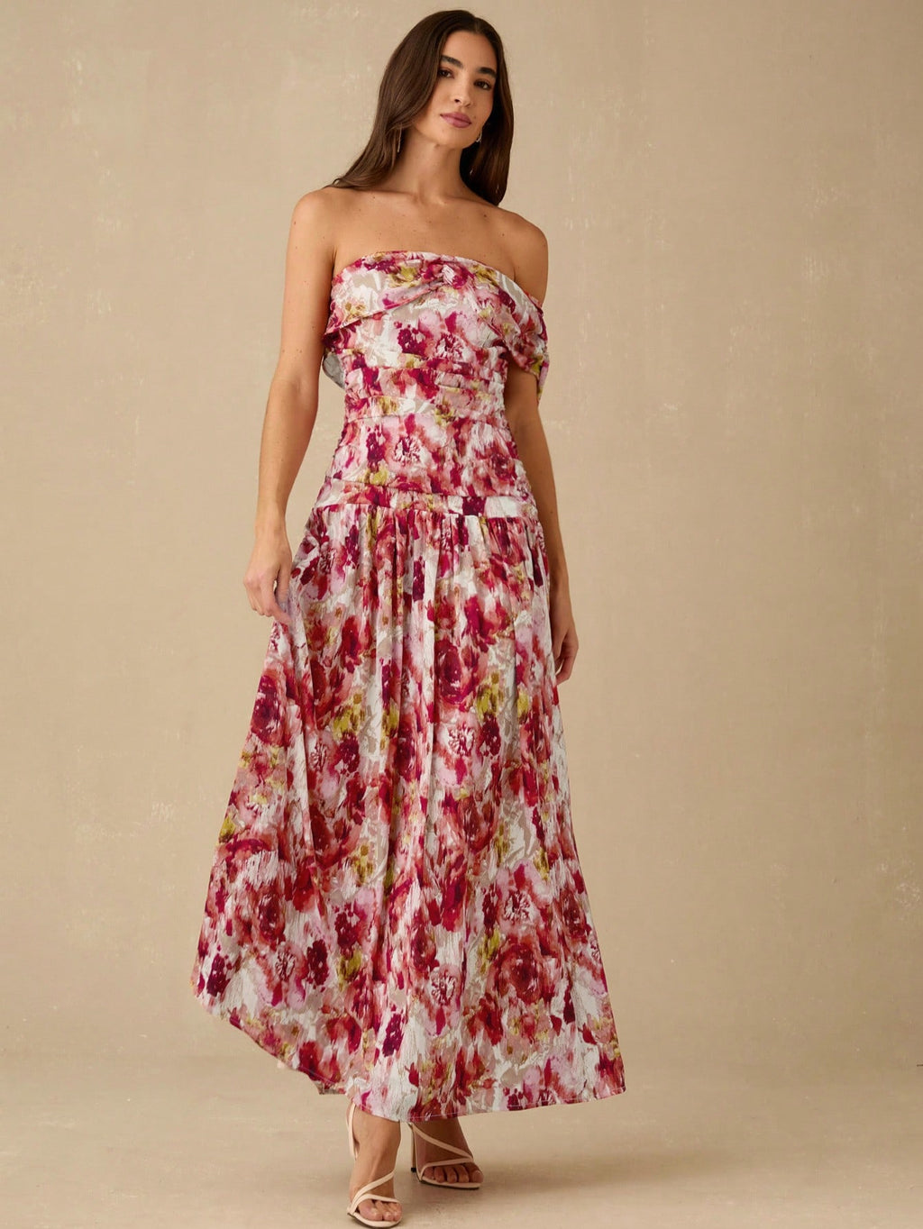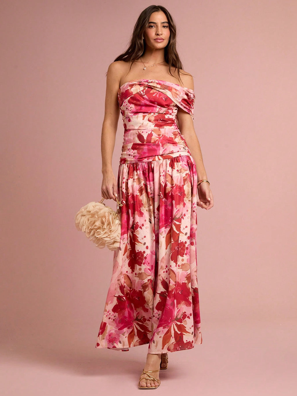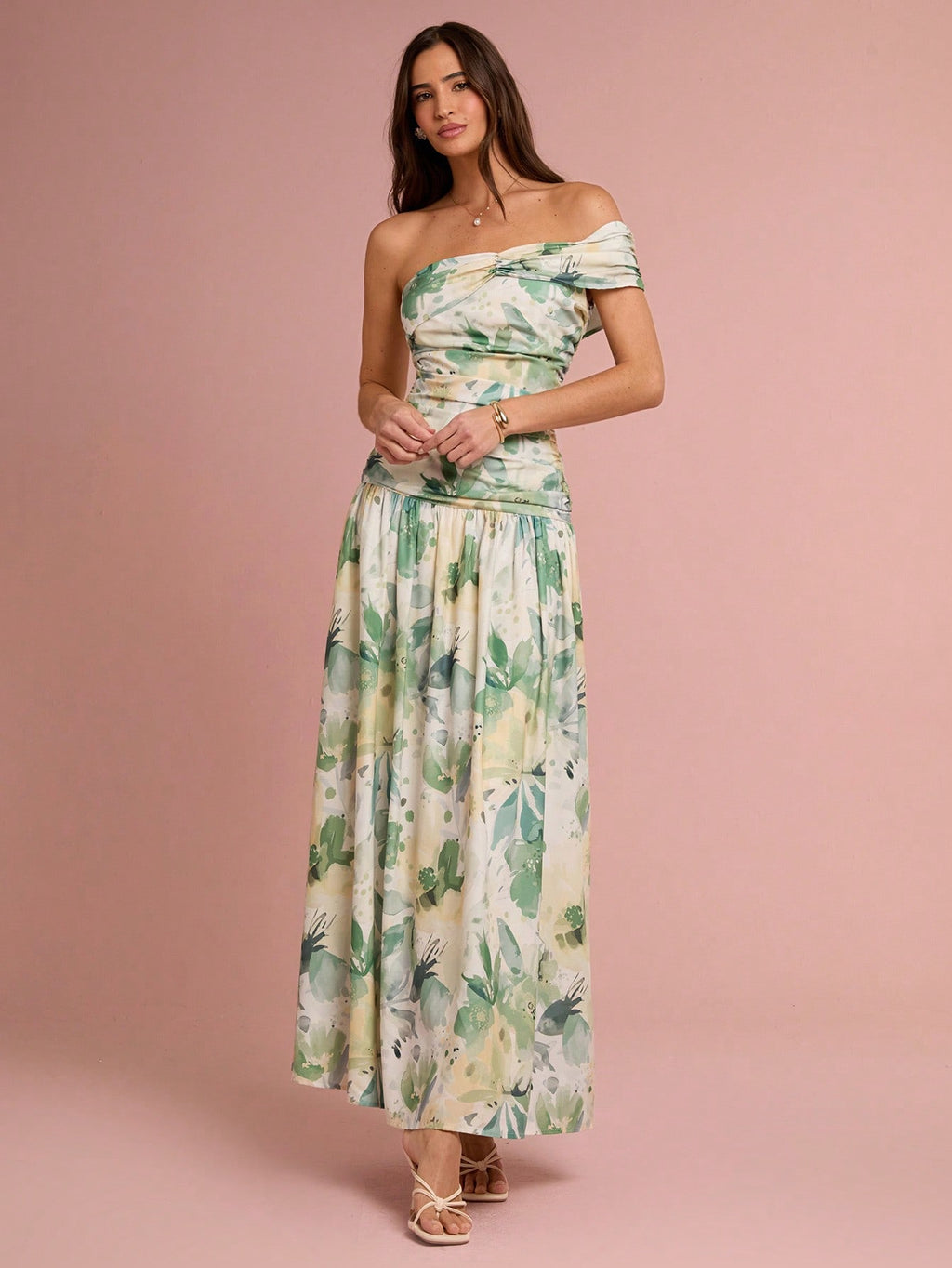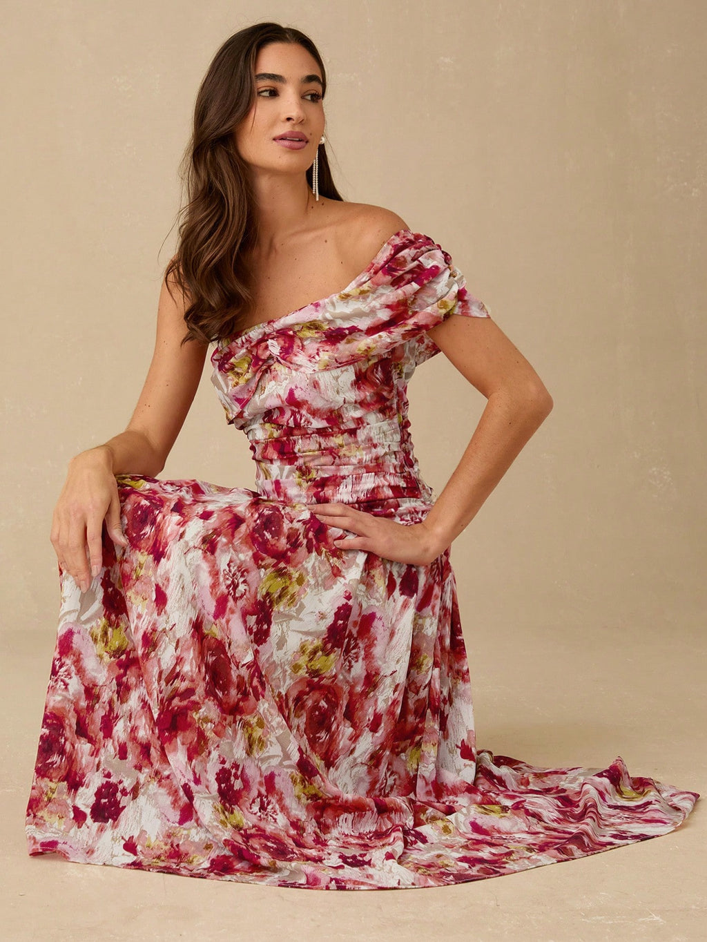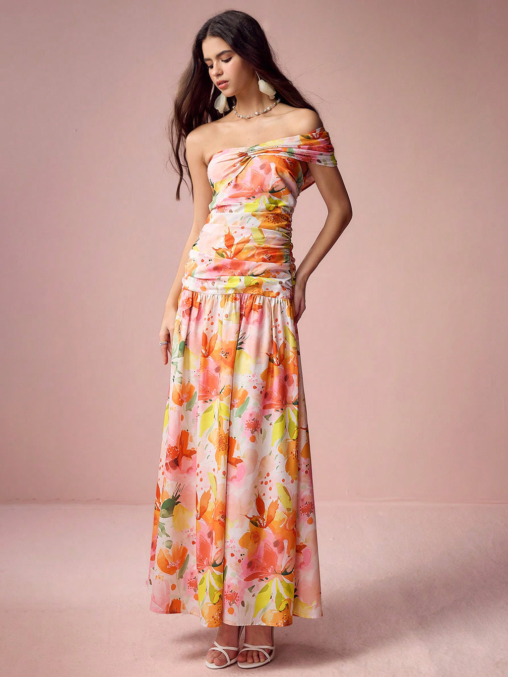 MiuVogue Women Summer Floral Print Off-Shoulder Ruffle Dress