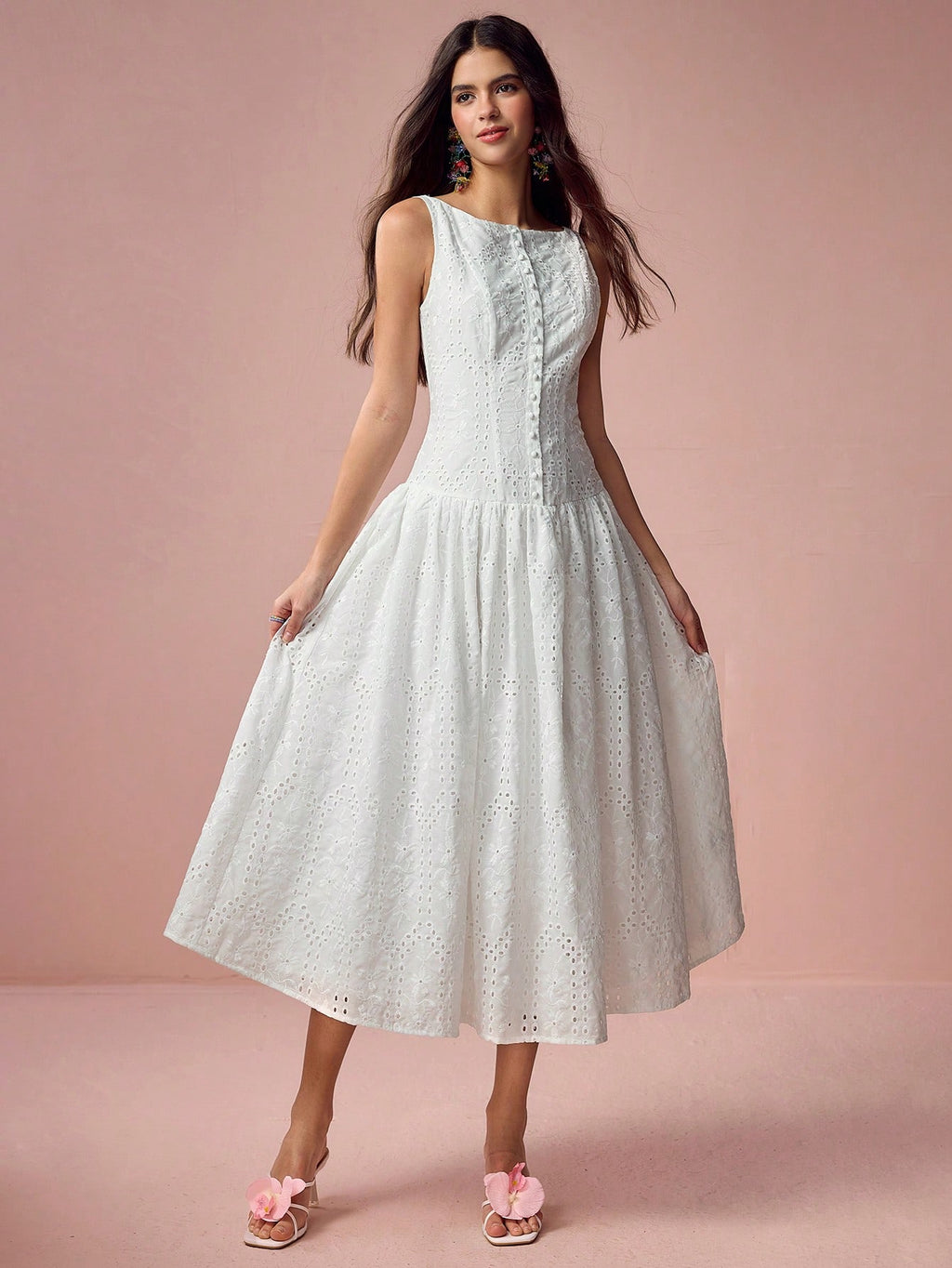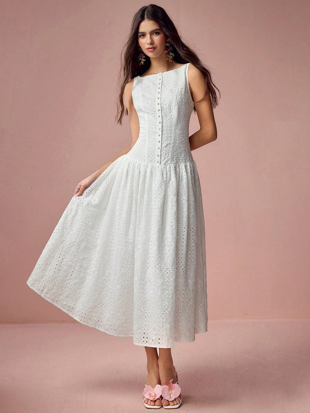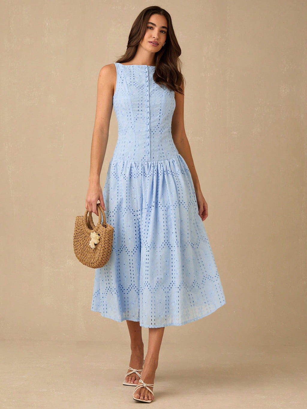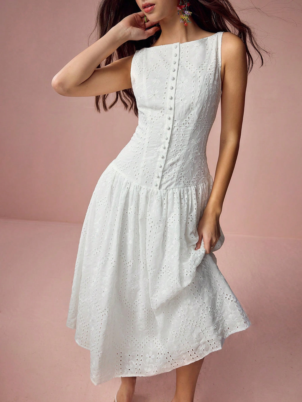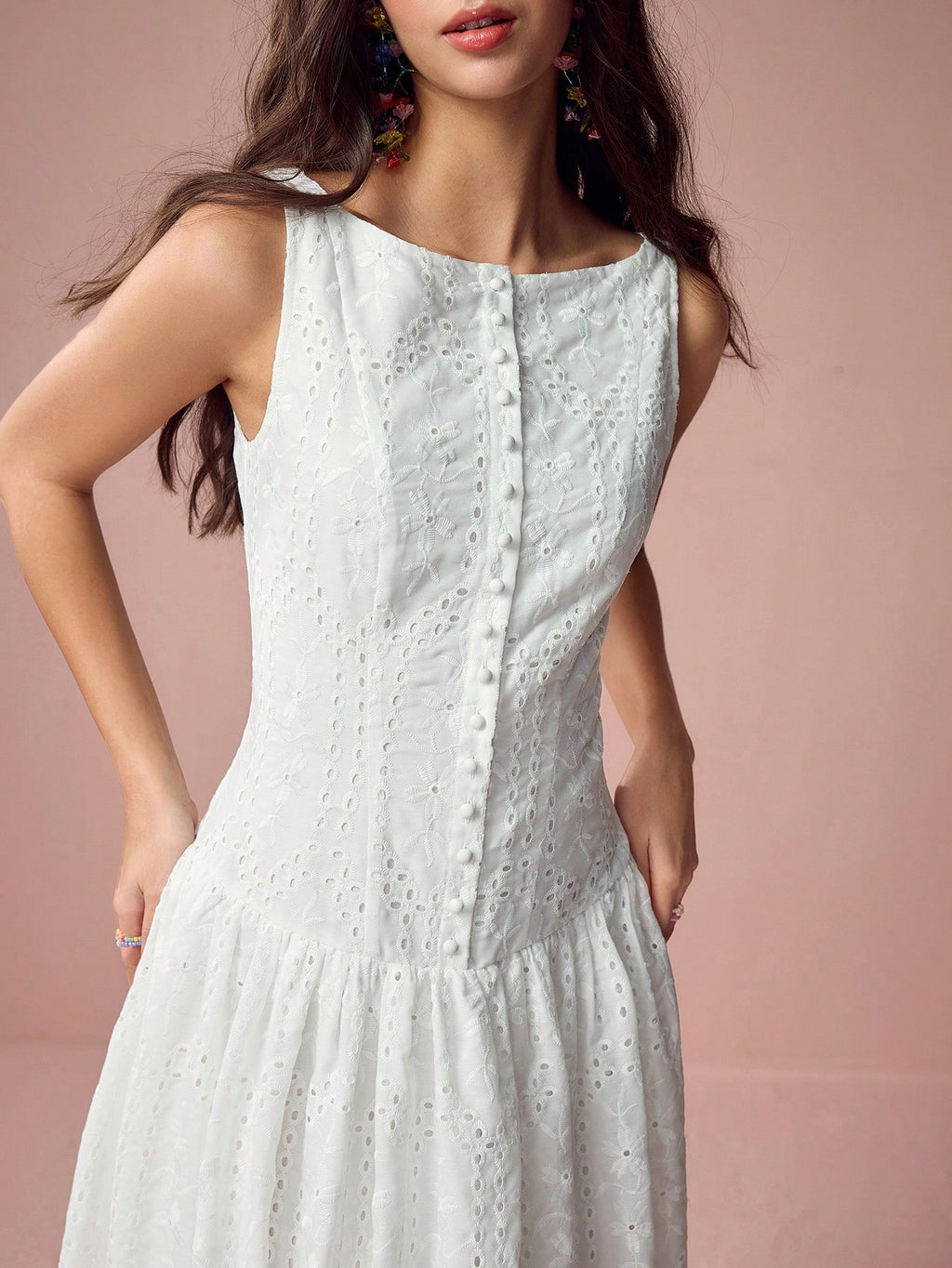 MiuVogue Women's Elegant Hollow Embroidered Sleeveless Dress, Summer