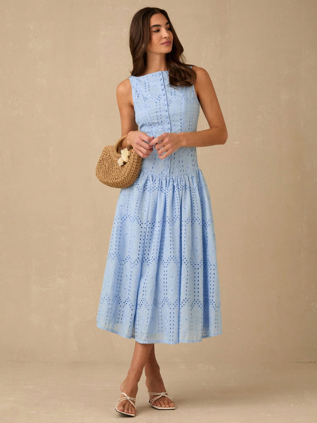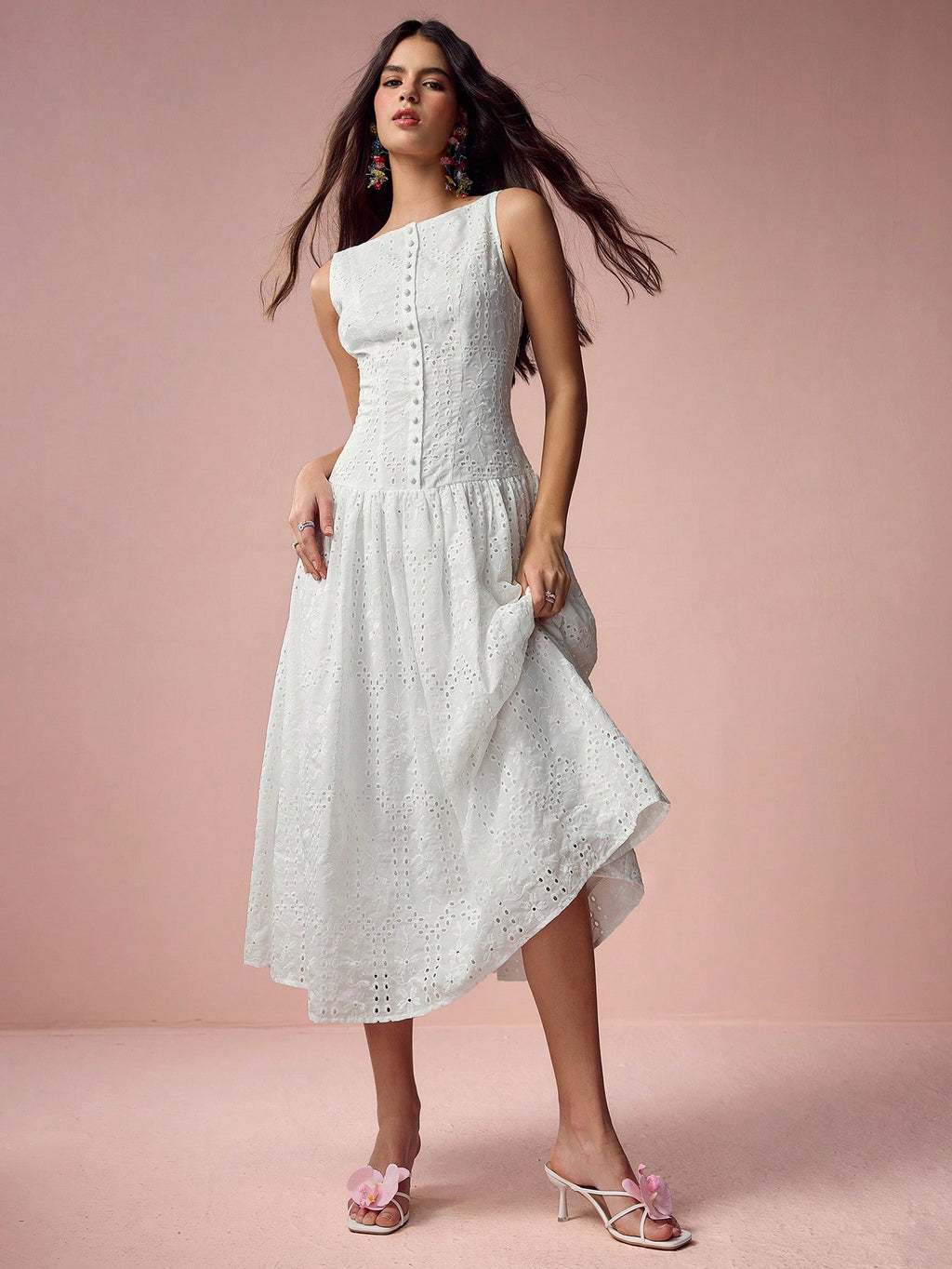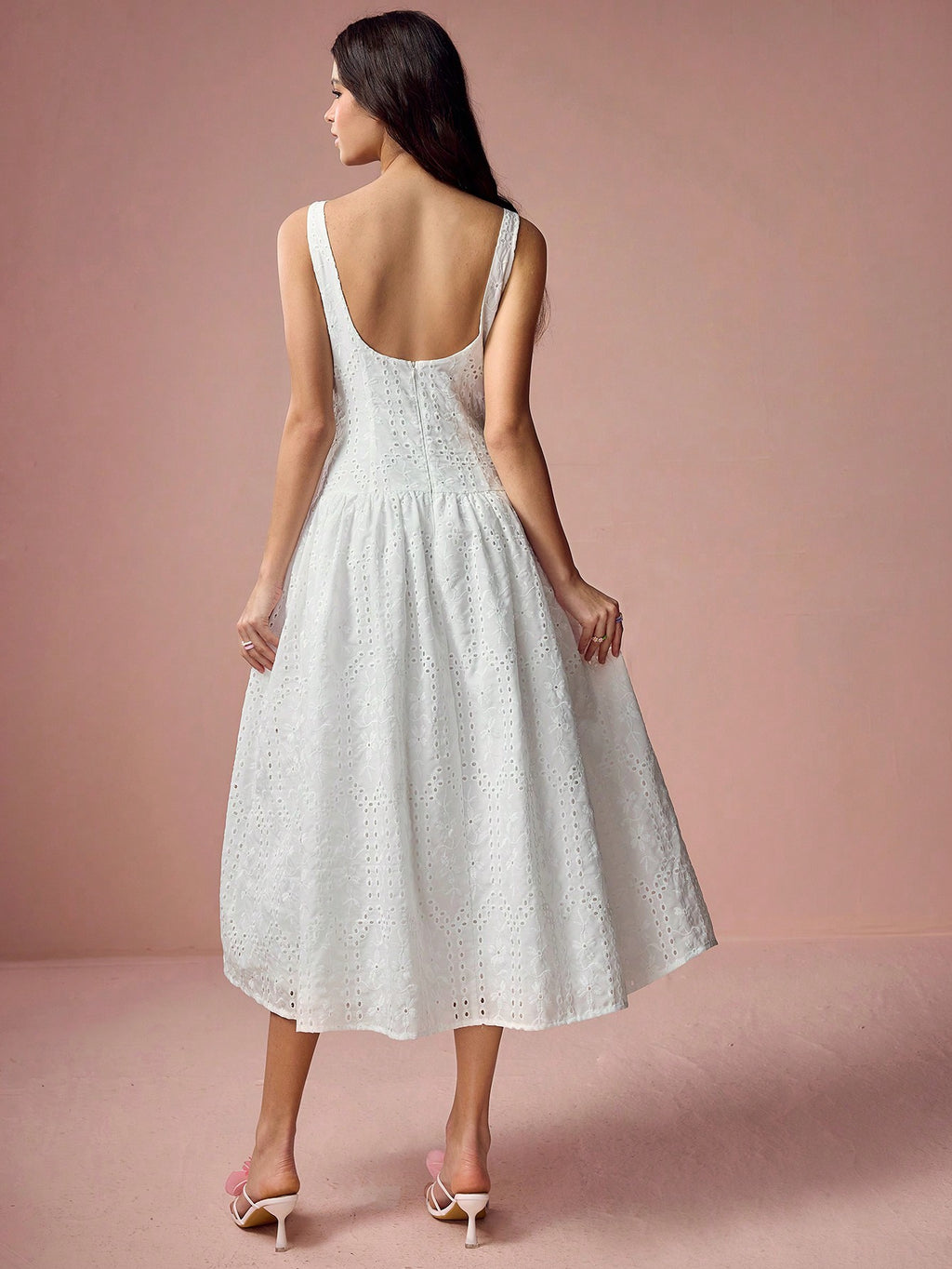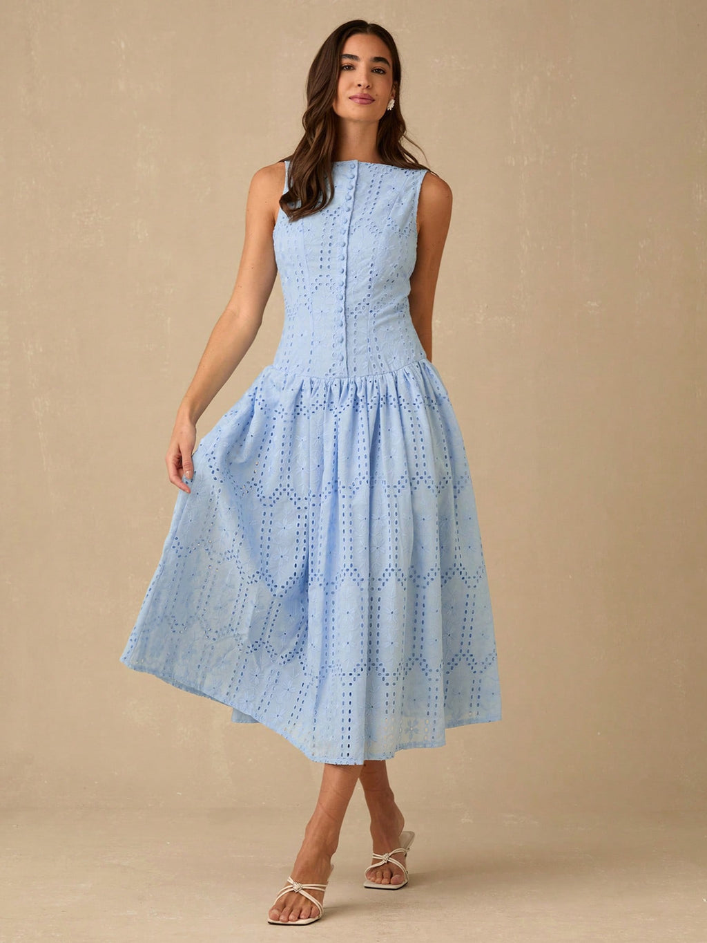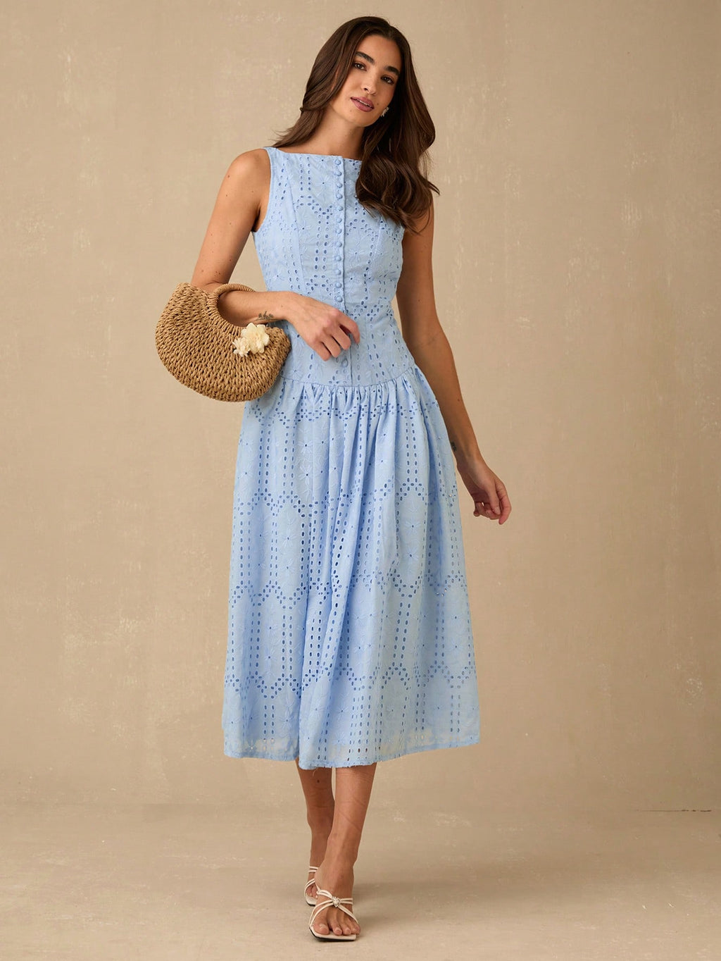 MiuVogue Women's Elegant Hollow Embroidered Sleeveless Dress, Summer