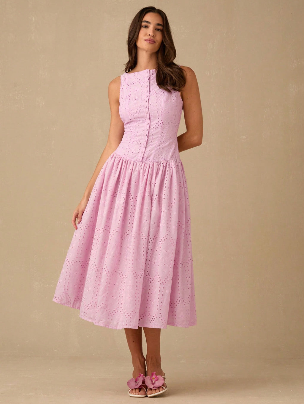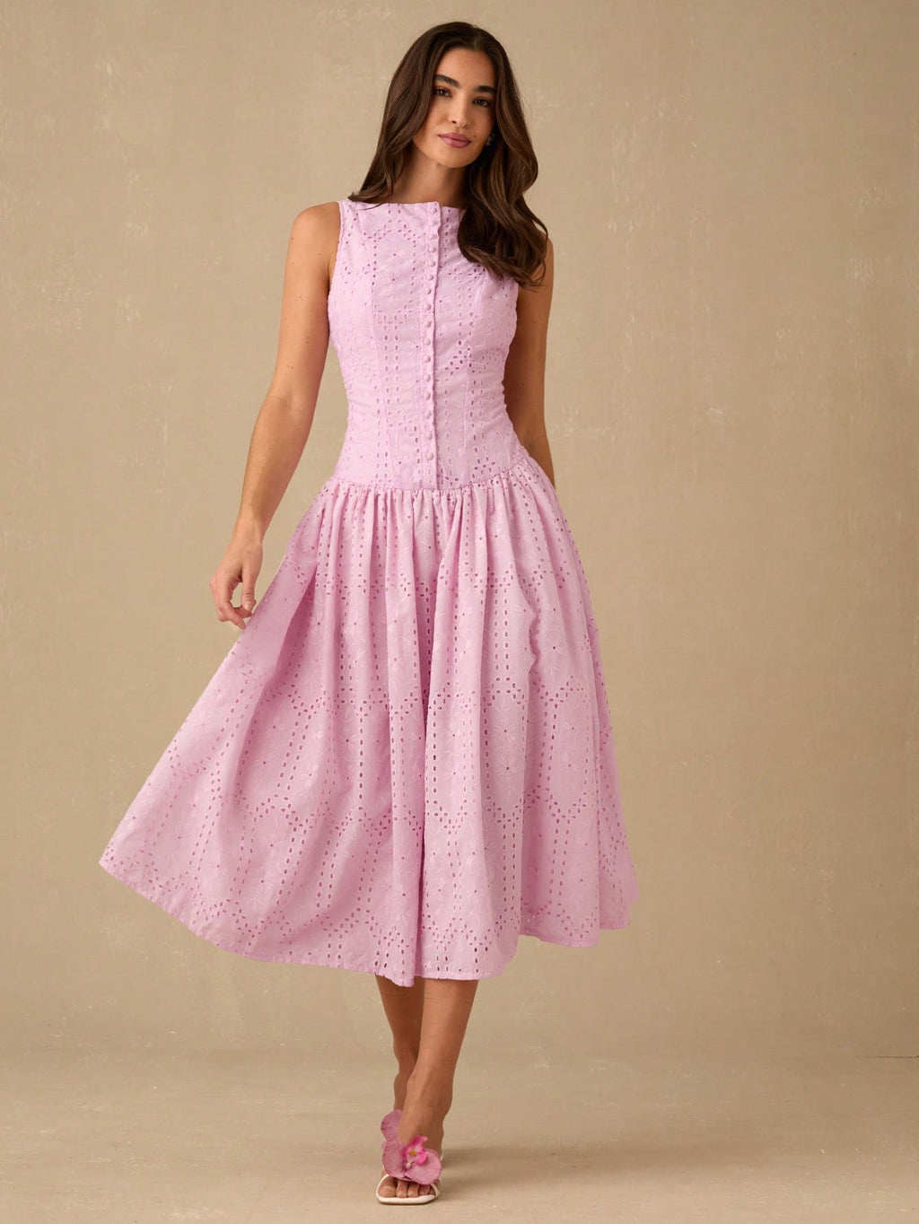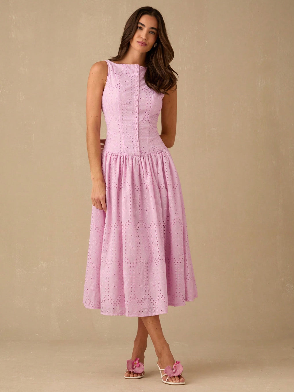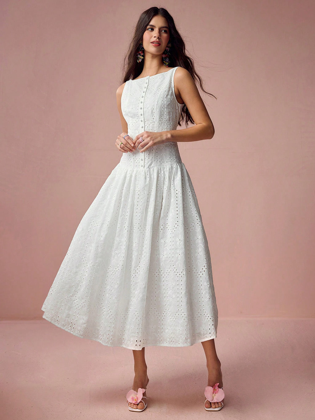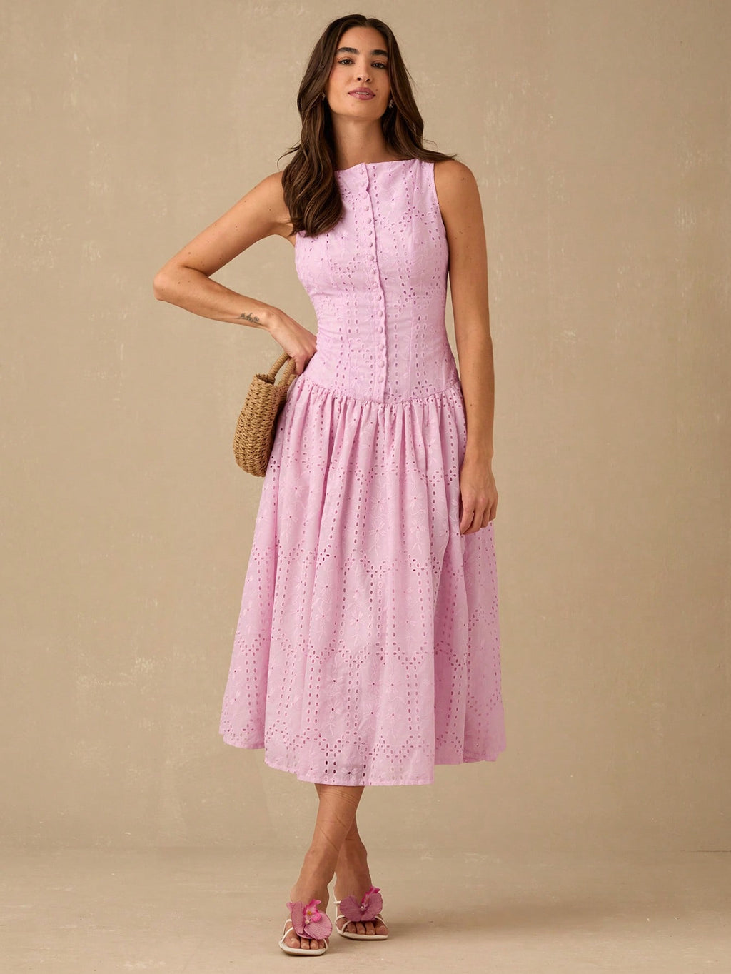 MiuVogue Women's Elegant Hollow Embroidered Sleeveless Dress, Summer