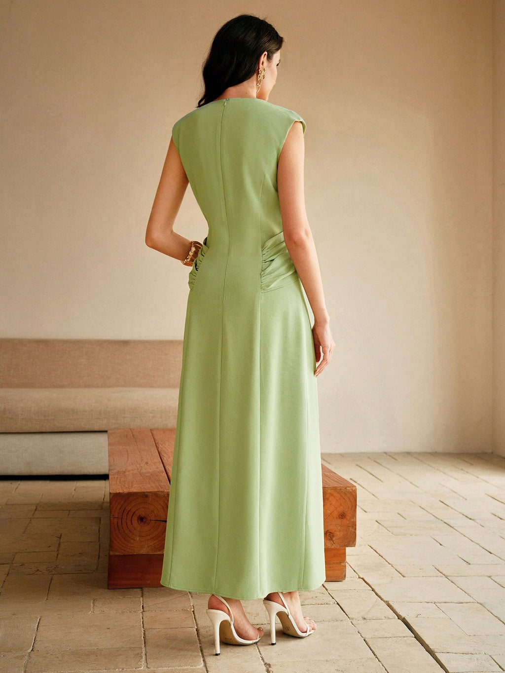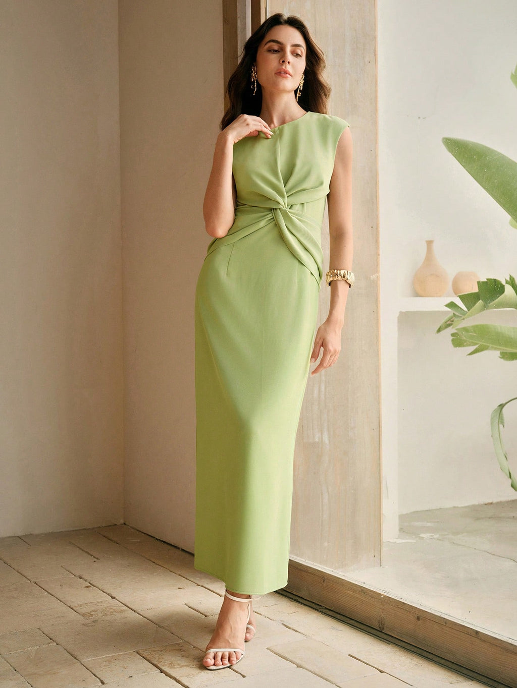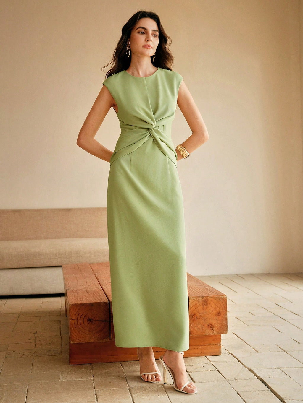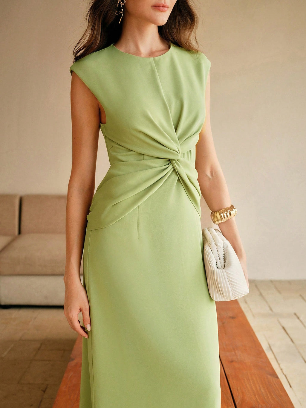MiuVogue Women's Solid Color Round Neck Dolman Sleeve Twisted Long Elegant Dress