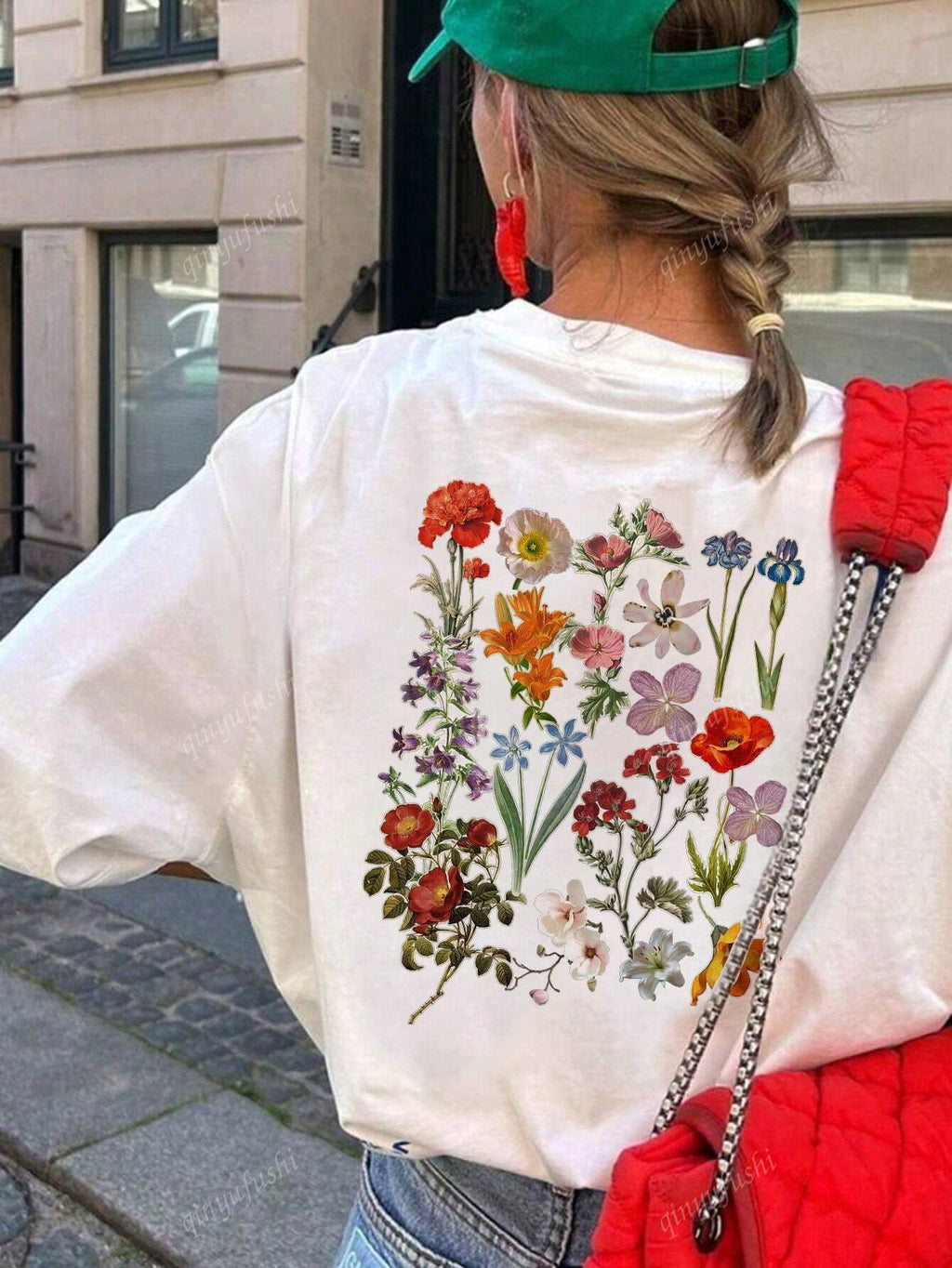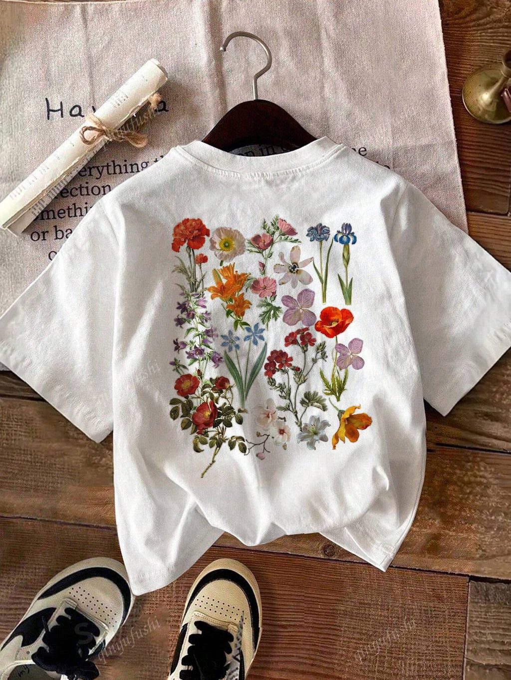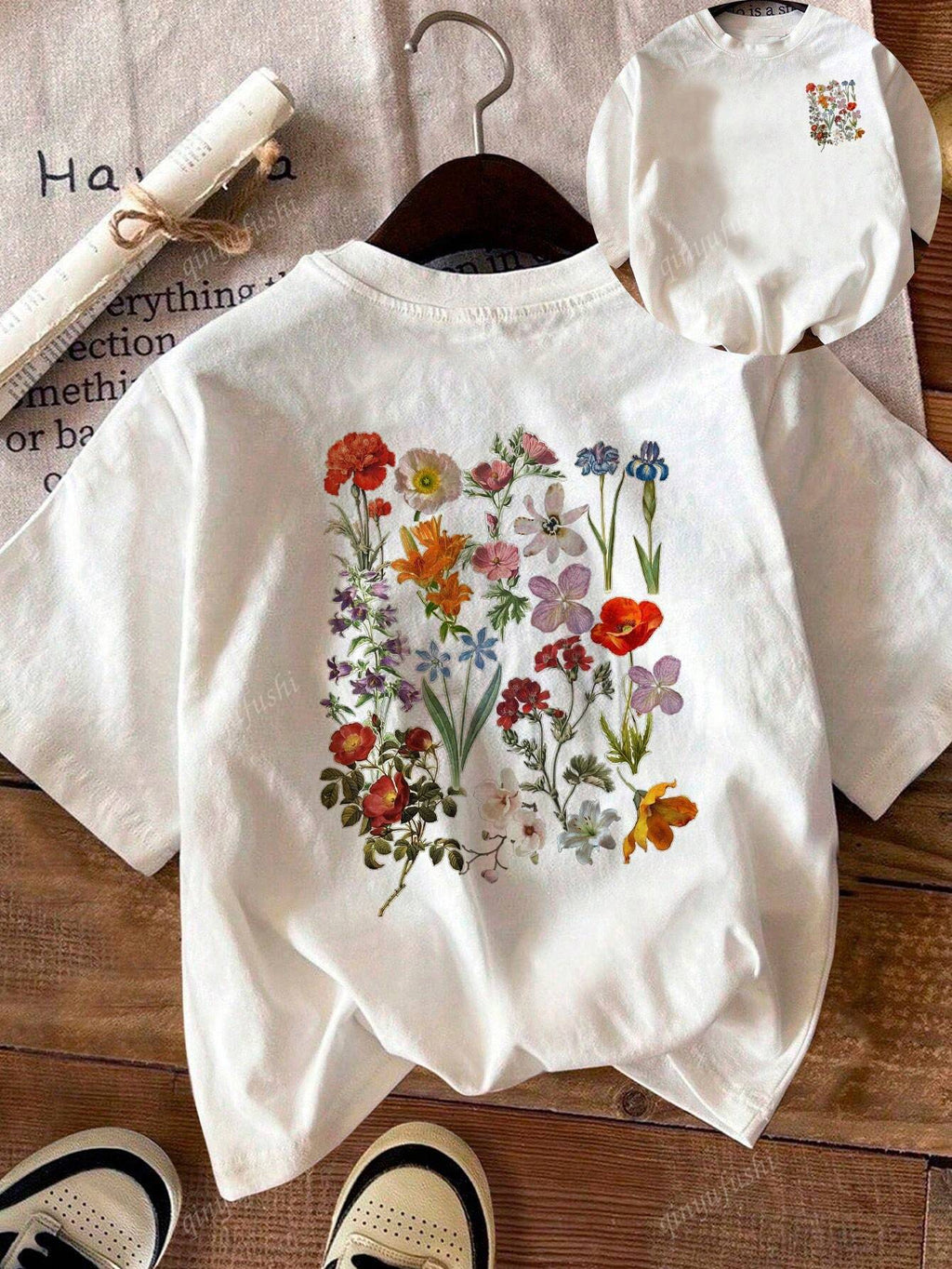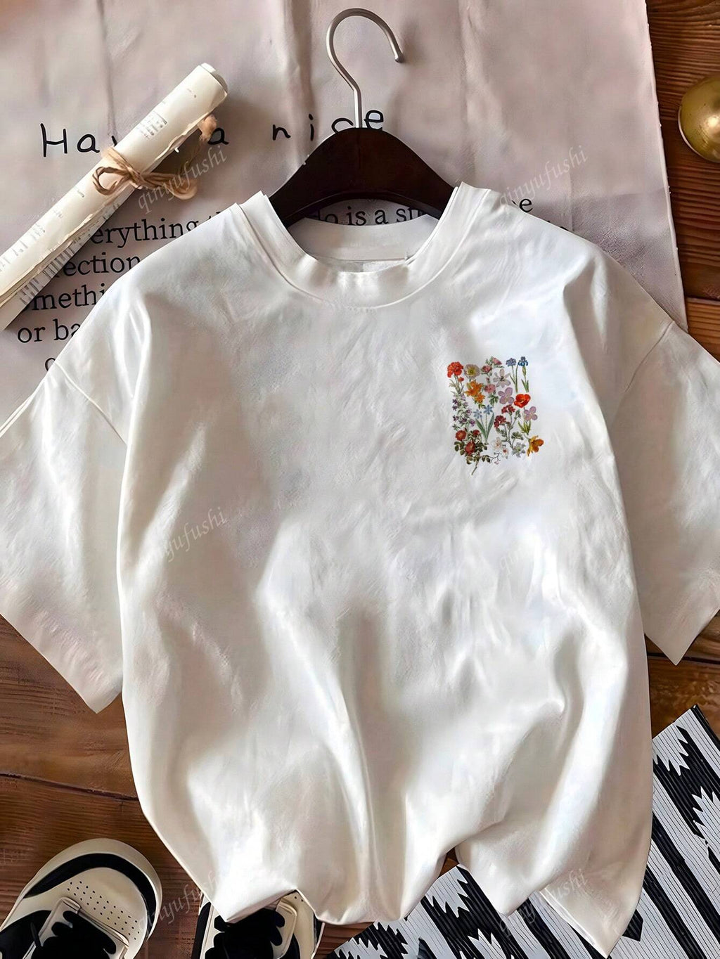 MiuVogue Women's Wide Slogan Floral Print Round Neck Short Sleeve Casual Loose T-Shirt