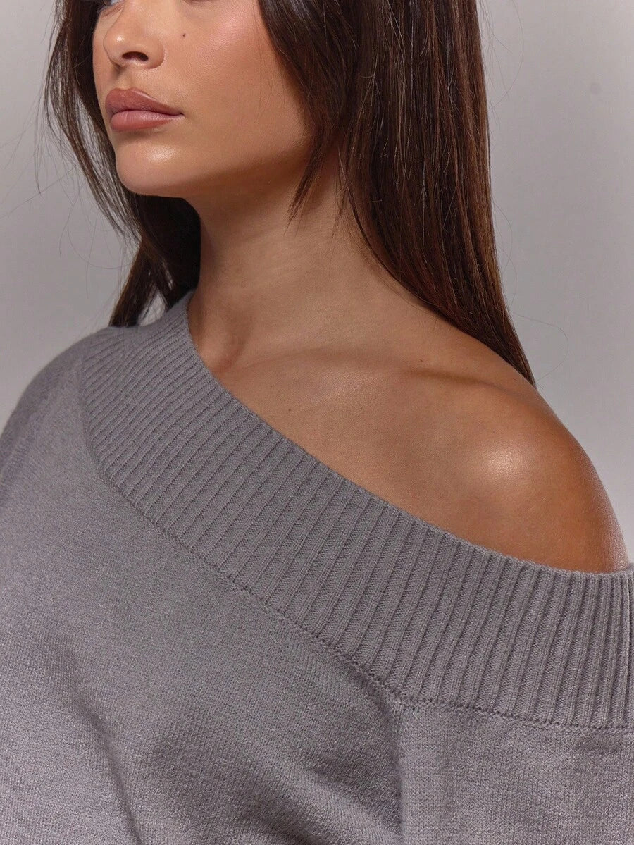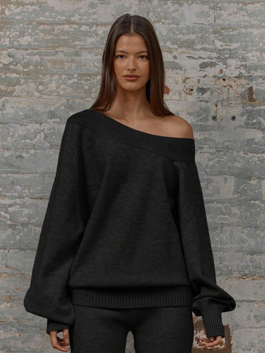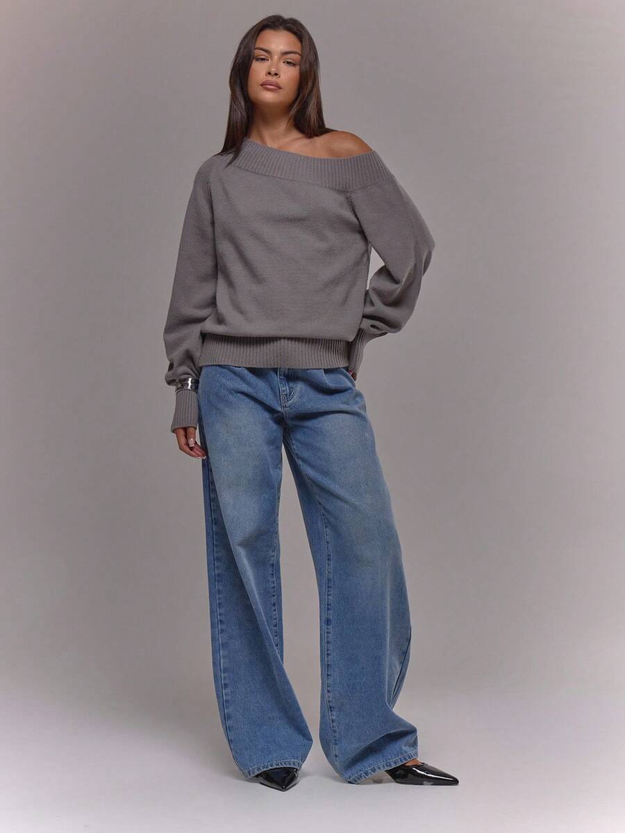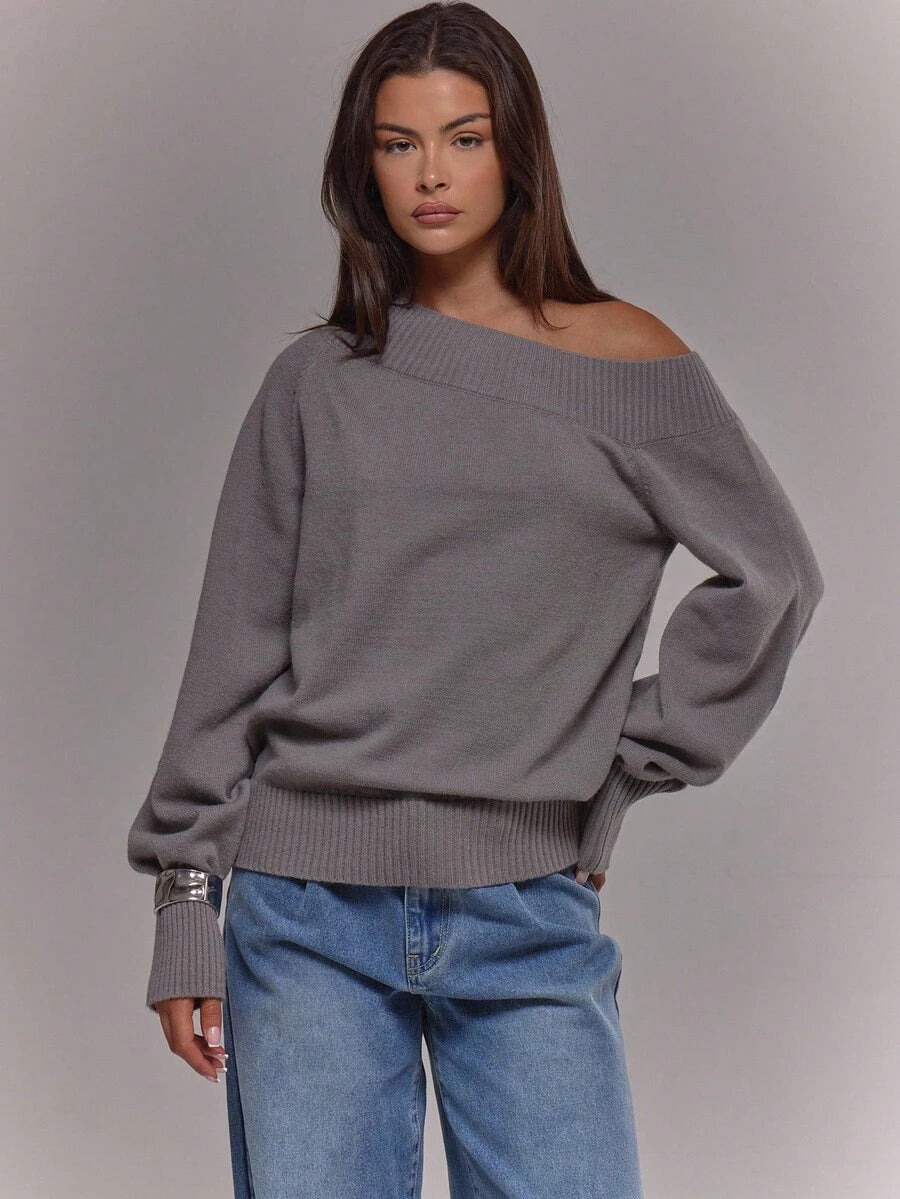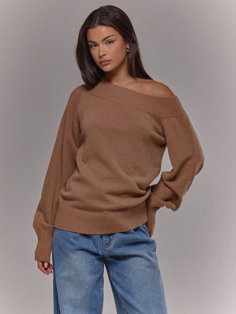 MUSERA Knit Ribbed Off Shoulder Long Sleeve Cuffed Hem Jumper Airport Holiday Fall Autumn Winter Everyday Christmas Work Office