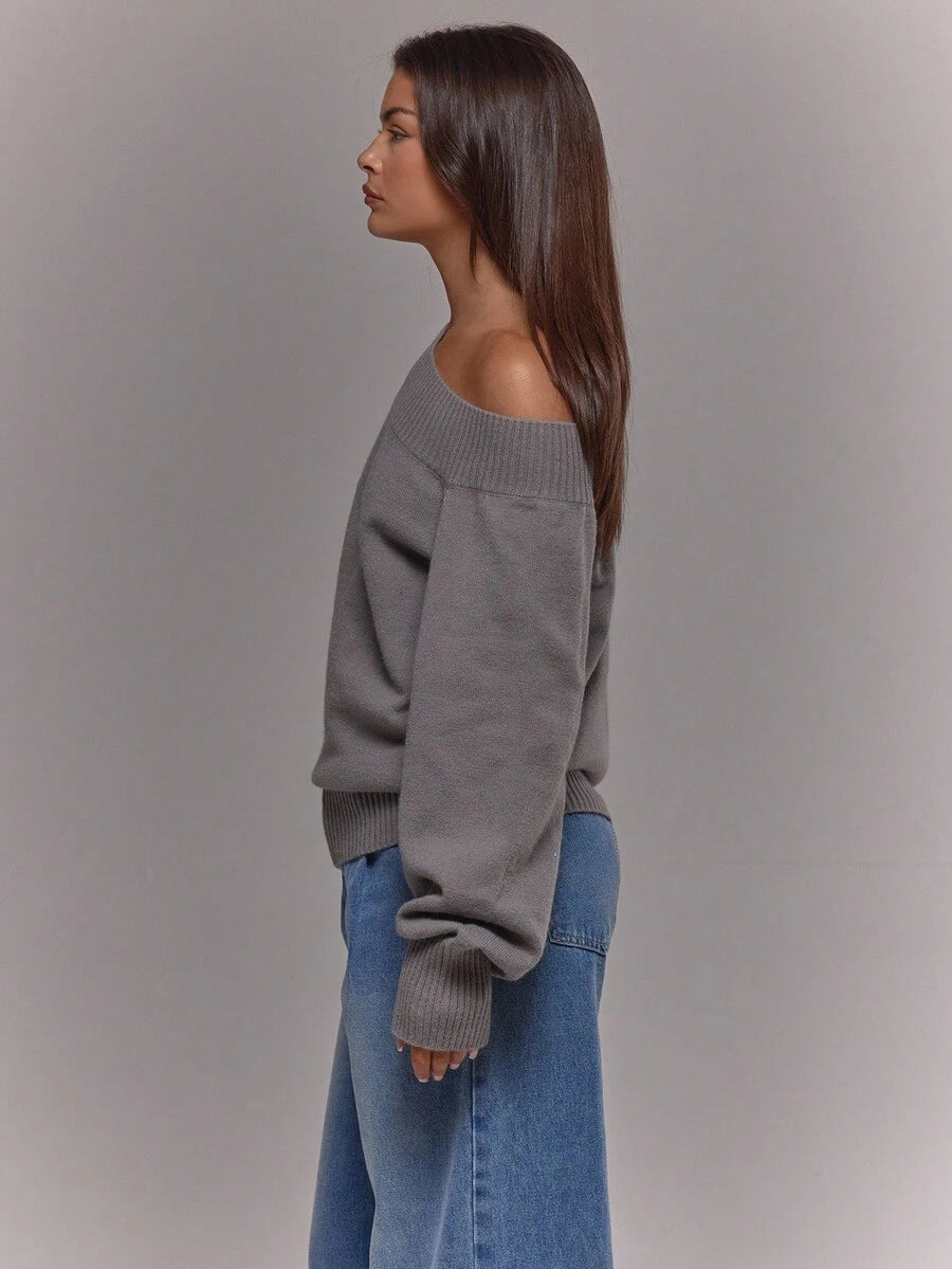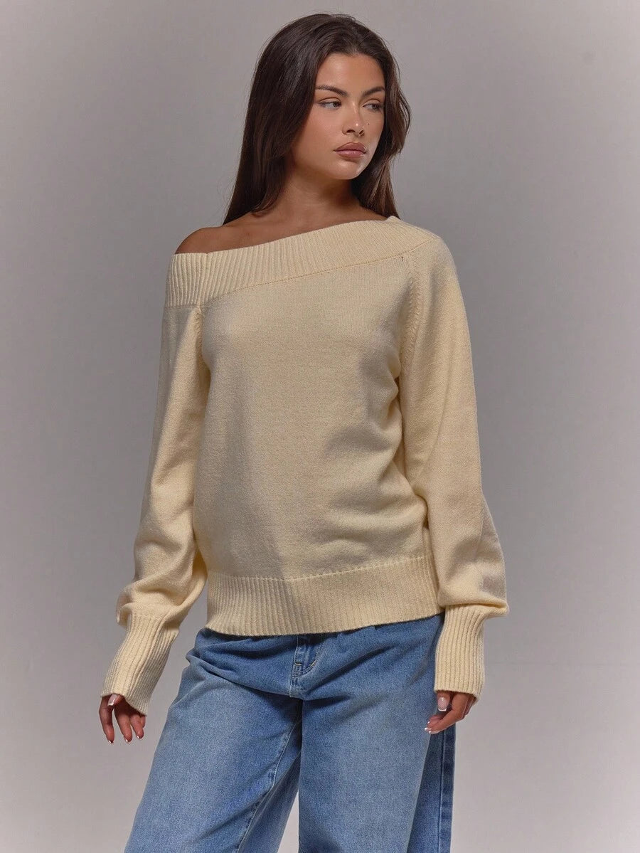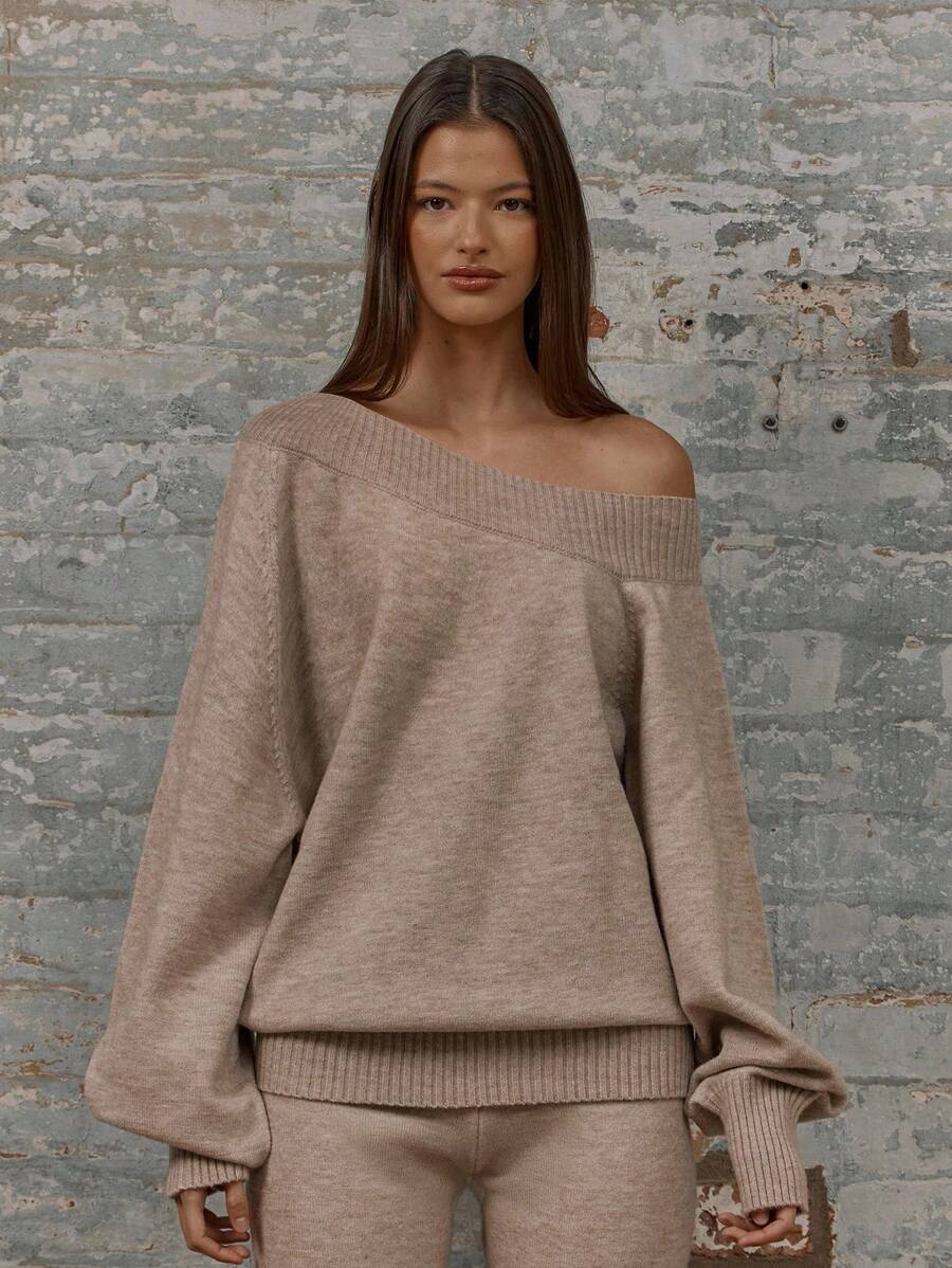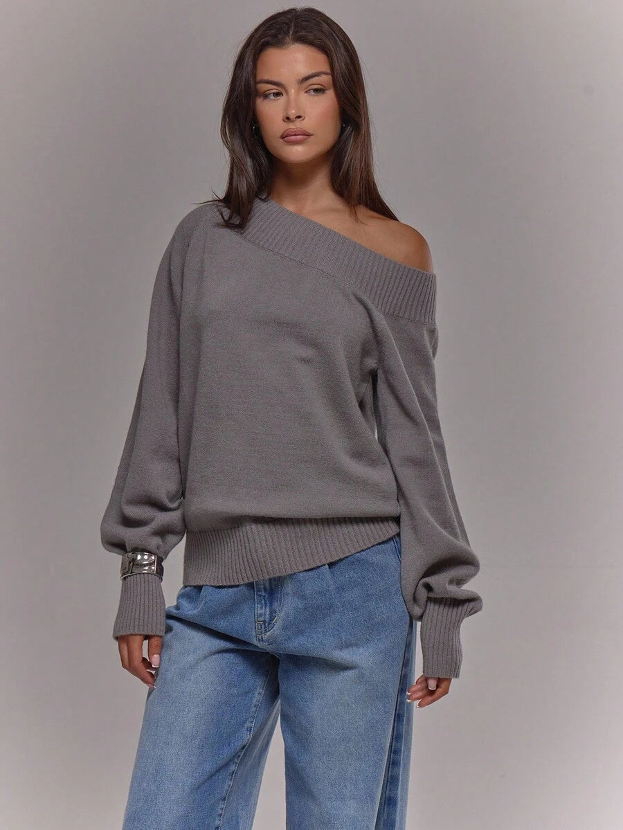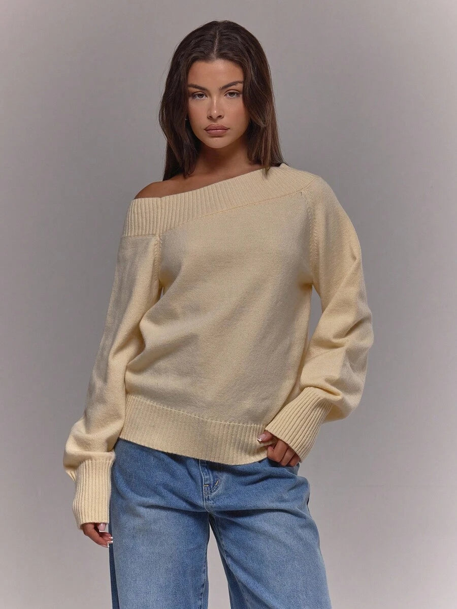 MUSERA Knit Ribbed Off Shoulder Long Sleeve Cuffed Hem Jumper Airport Holiday Fall Autumn Winter Everyday Christmas Work Office