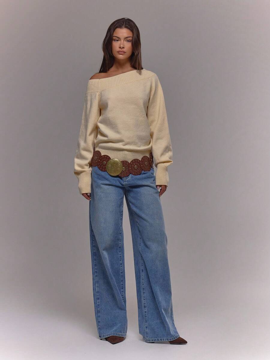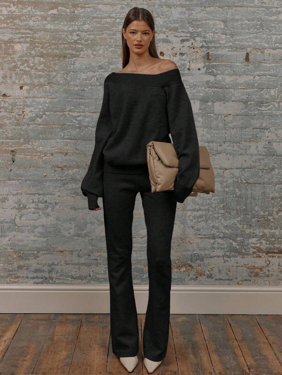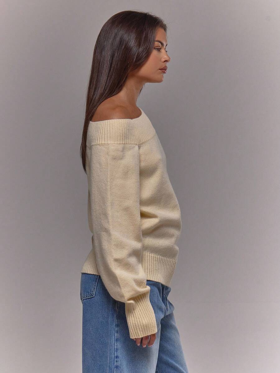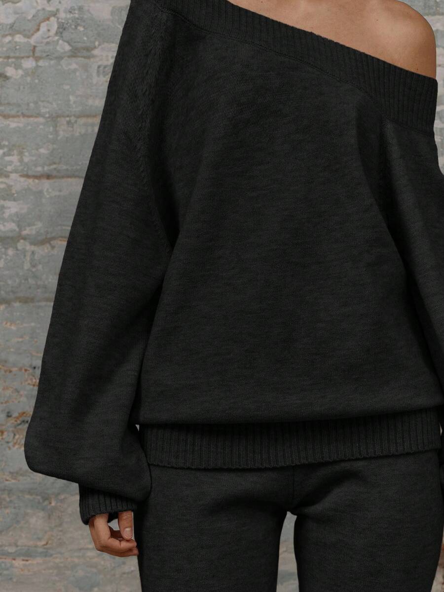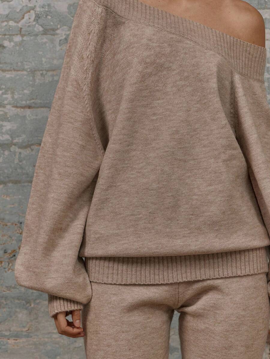 MUSERA Knit Ribbed Off Shoulder Long Sleeve Cuffed Hem Jumper Airport Holiday Fall Autumn Winter Everyday Christmas Work Office