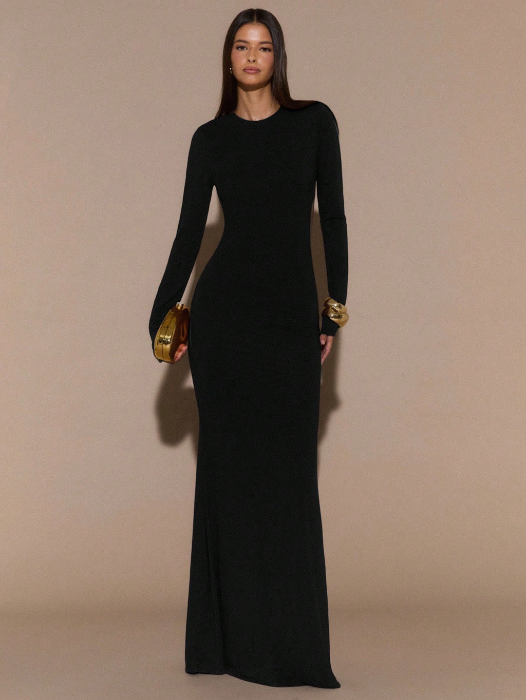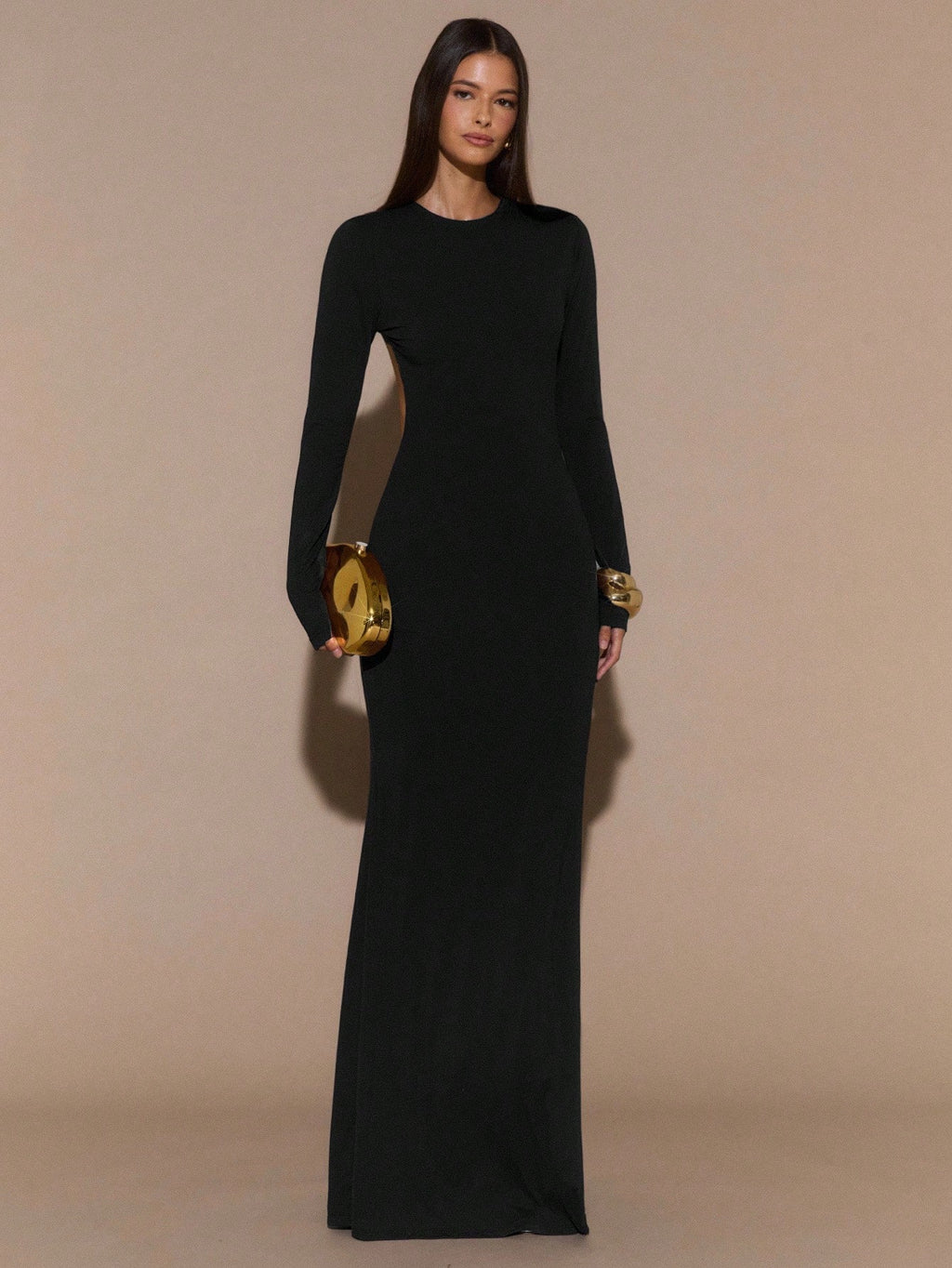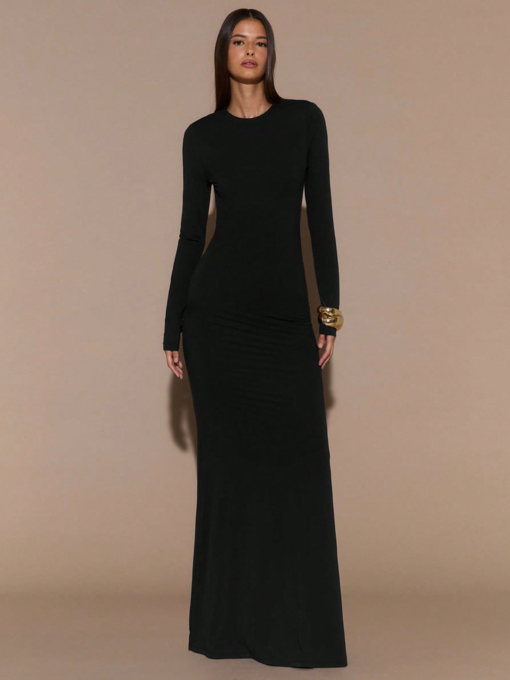 NOVO Čvrsta Smeđa Duga Rukava Seksi Haljina Bez Leđa