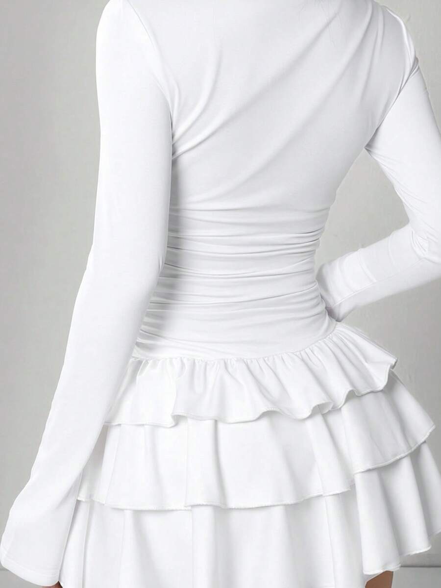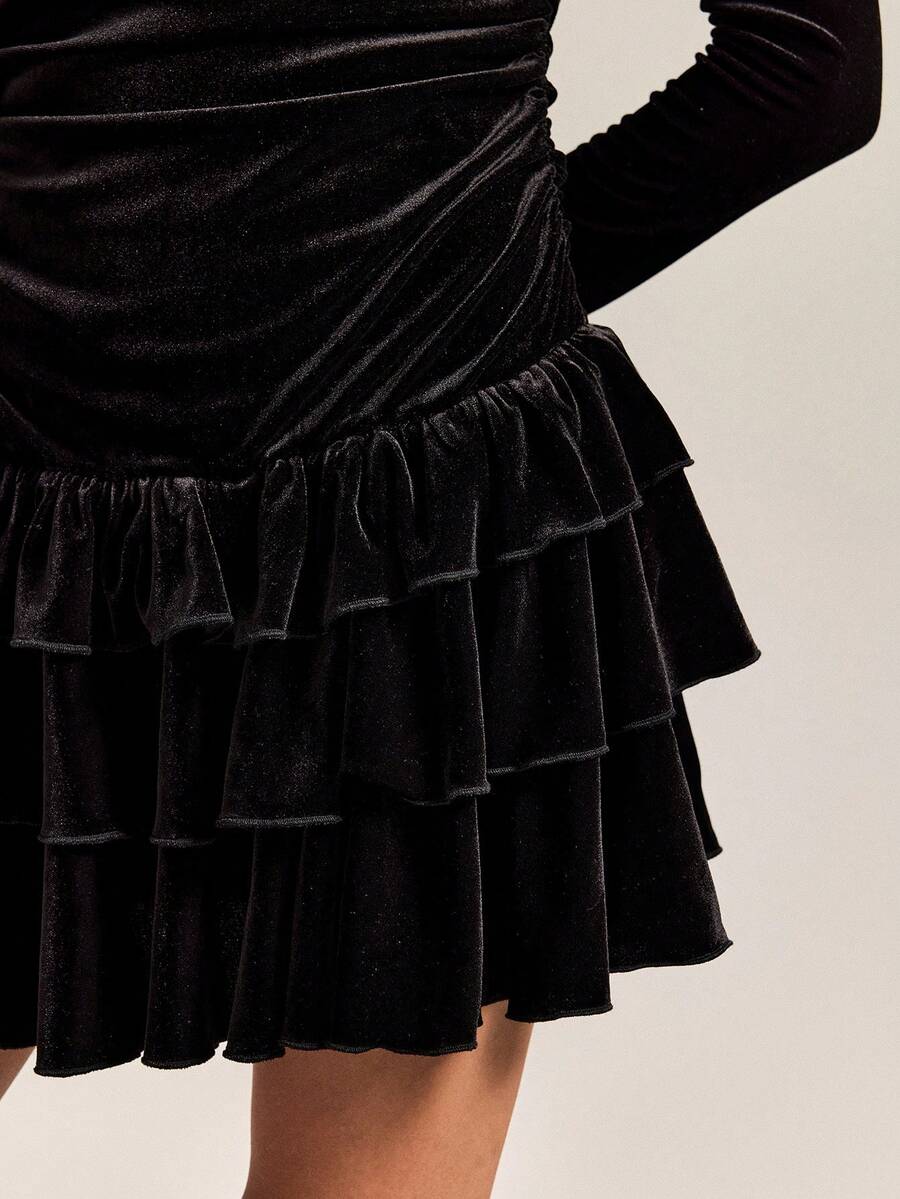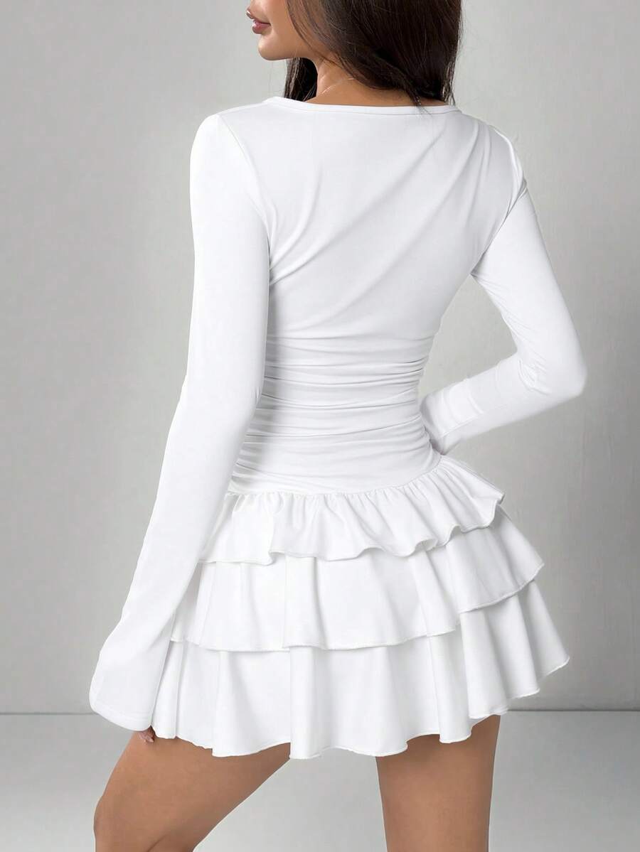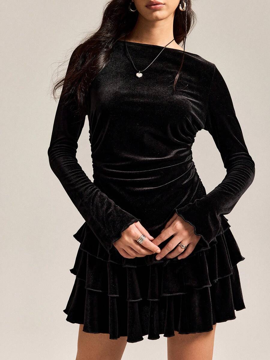 NOVO EZwear Ženska Elegantna Haljina s Ruffles Detaljima - Crna, Dugački Rukavi, Ljetne Haljine za Žene