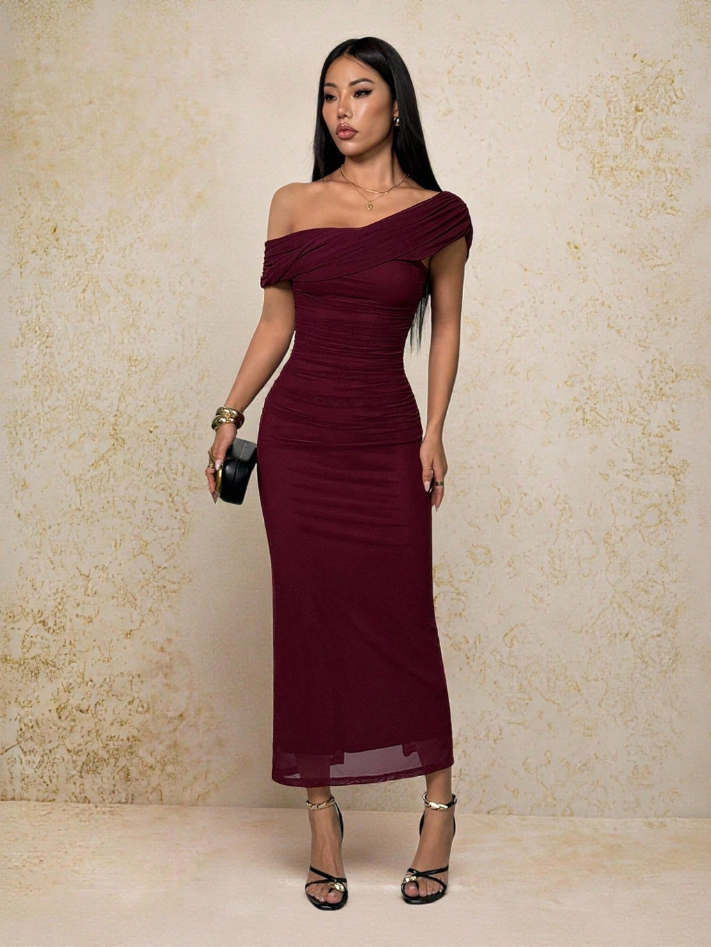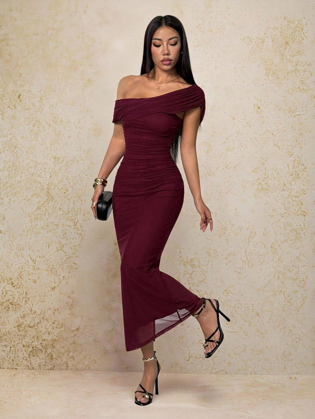 NOVO Ljetna Plaža Vjenčanje Boho Stil Plaža Vanjski Sezonski Party Elegantan Angola Crvena Mrežasta Haljina Jednog Rame
