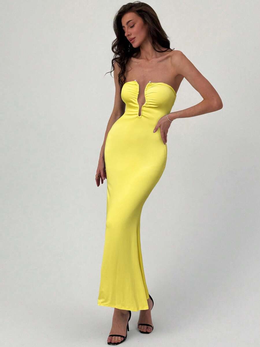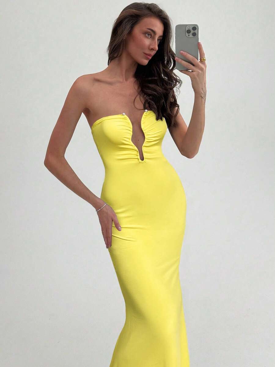 NOVO Sexy Duboki V-Izrez Moderni Bandeau Prilagođeni Sirena Duga Haljina, Mršavi