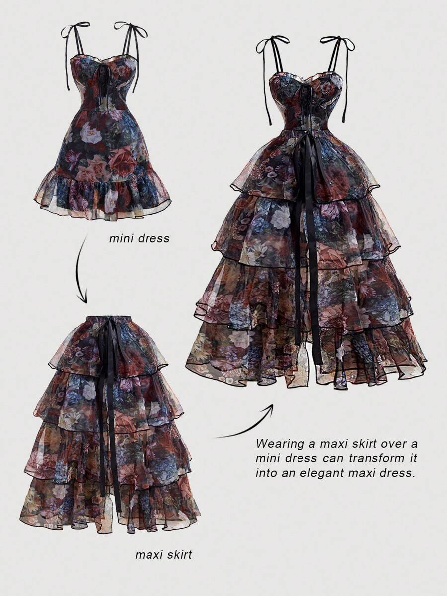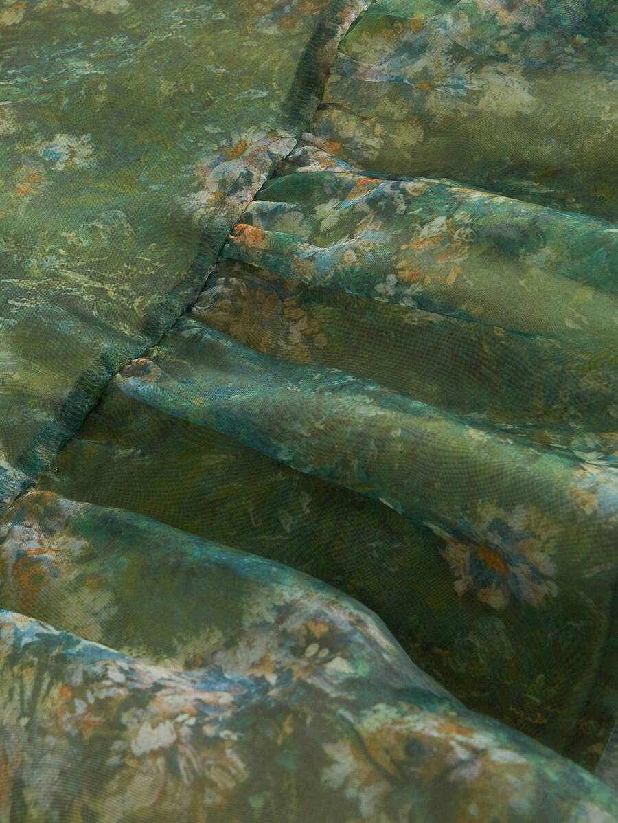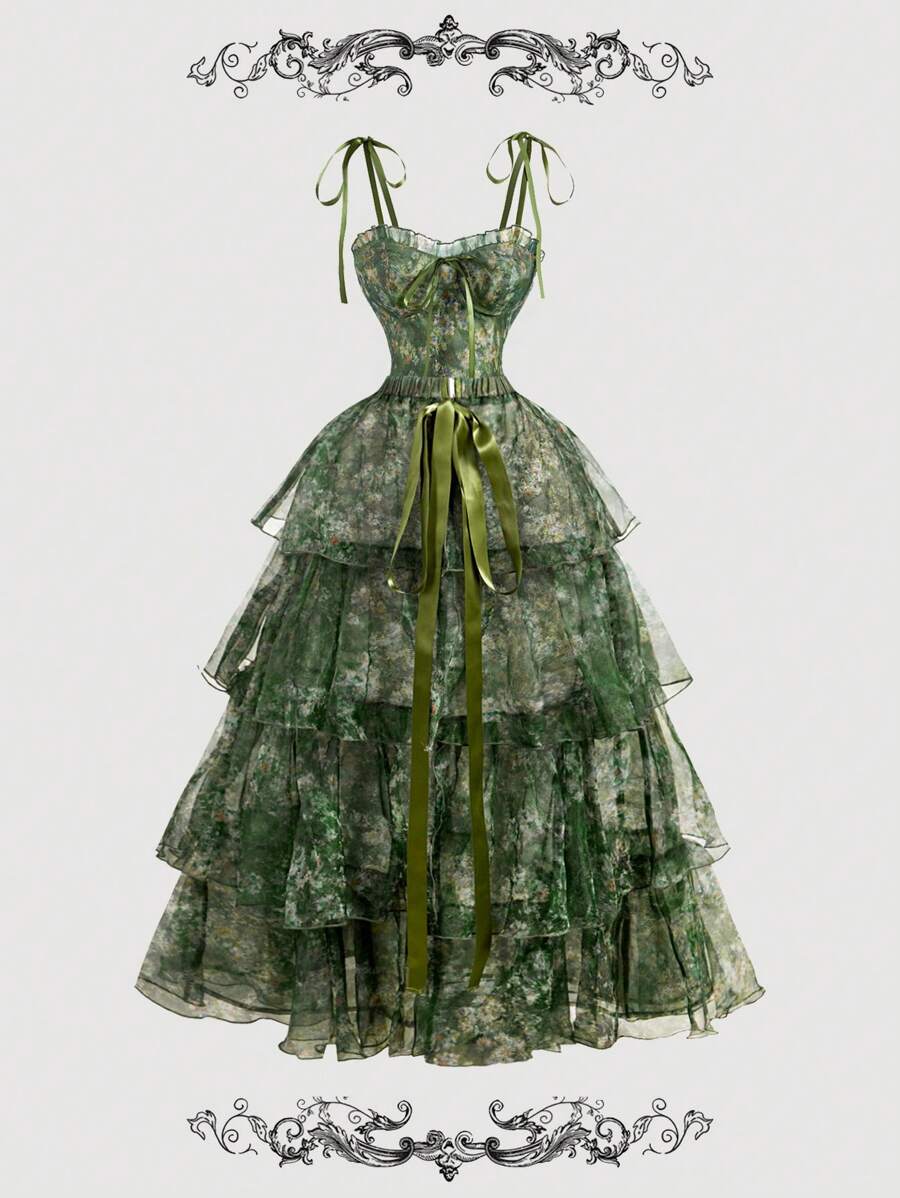 NOVOVintage uljana slika s cvjetnim printom - Prekrasna 2u1 haljina s odvojivim višestrukim suknjama - Palace stil, haljina za rođendan, haljina za krstarenje, slojevita haljina, cvjetna haljina, zelena haljina, odjeća za plažu, ljetne haljine, haljina z