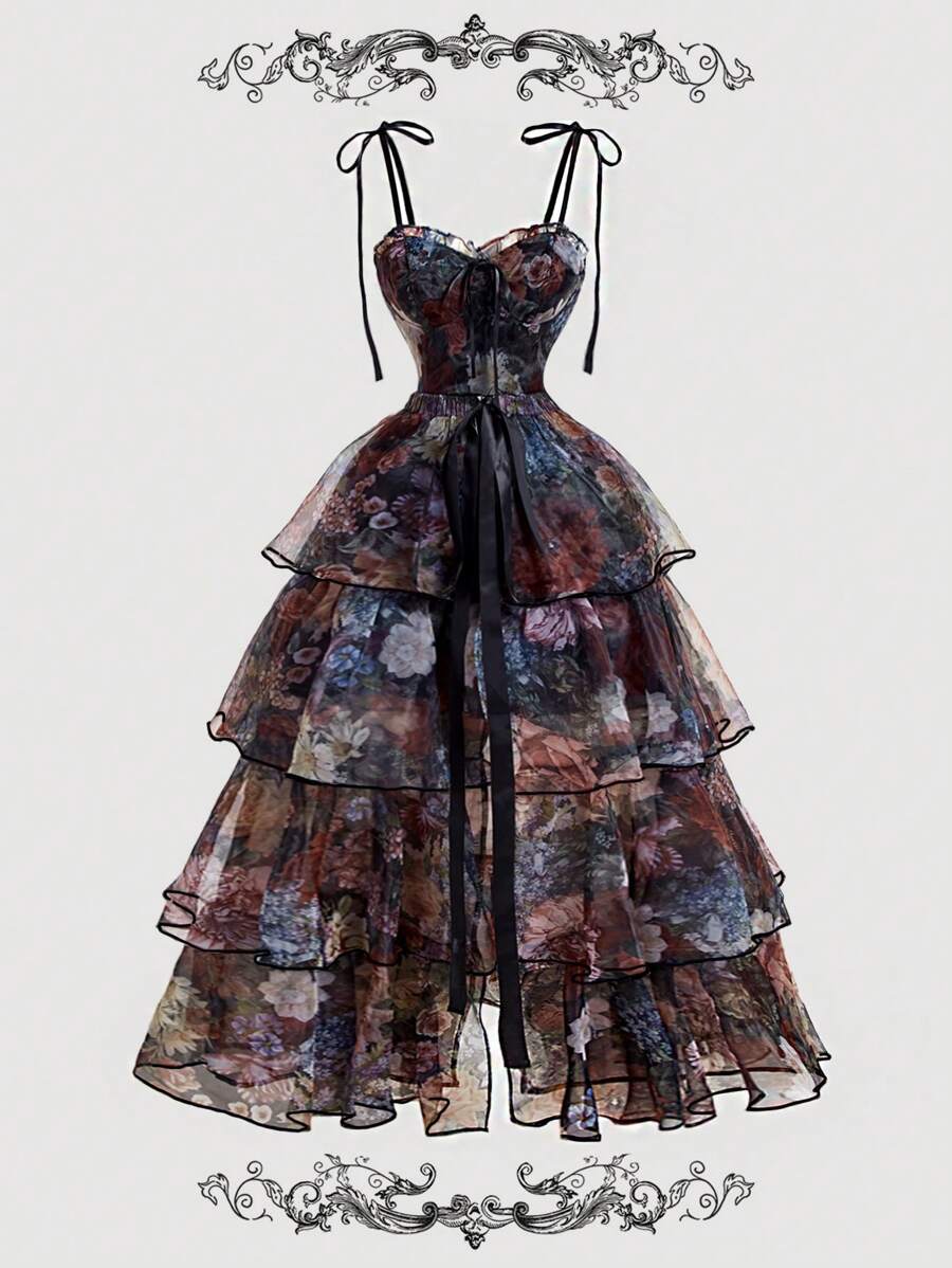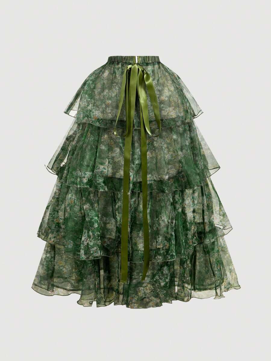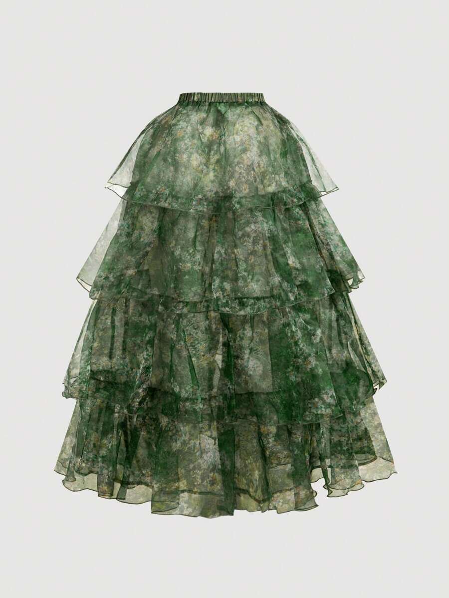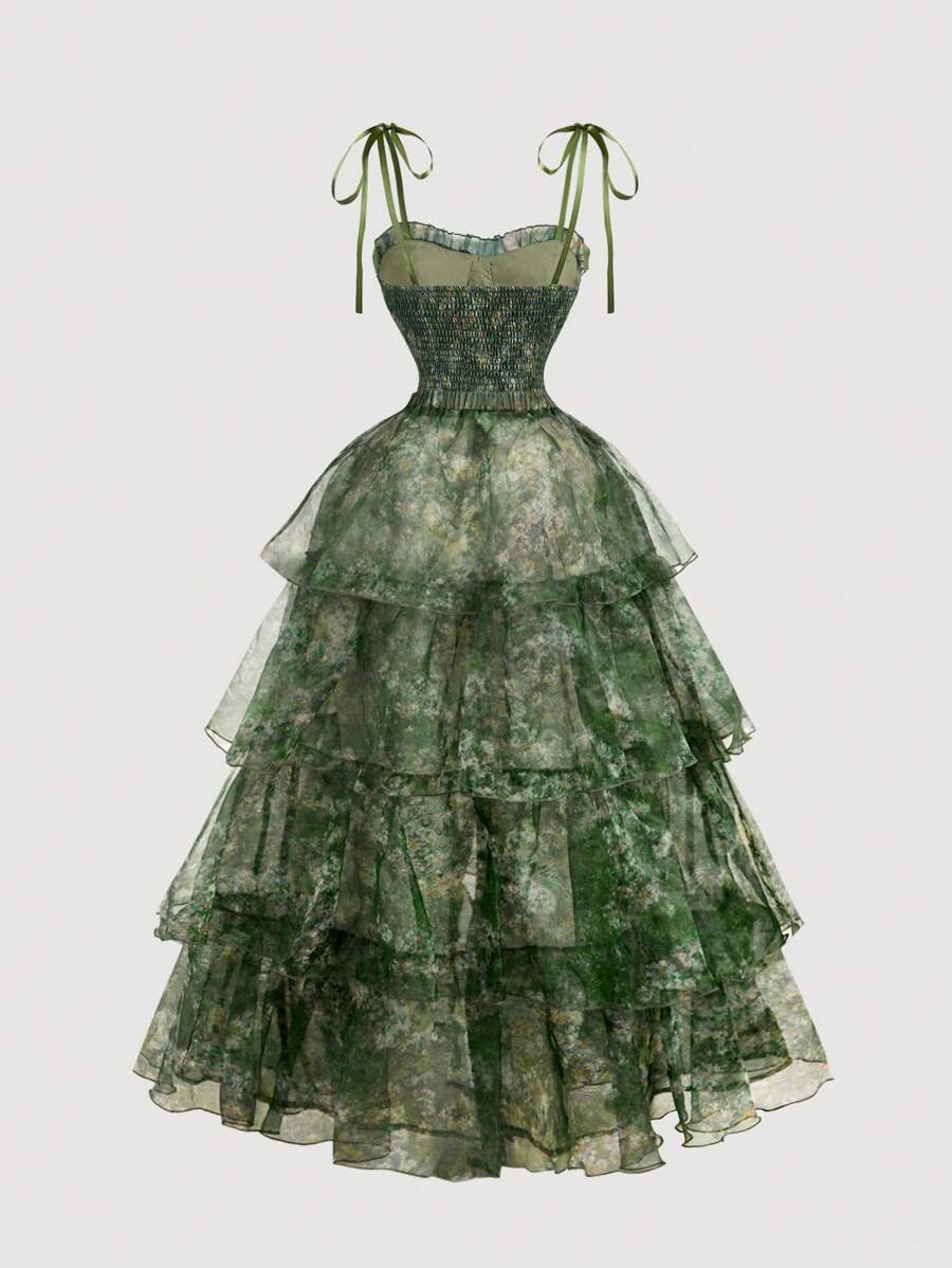 NOVOVintage uljana slika s cvjetnim printom - Prekrasna 2u1 haljina s odvojivim višestrukim suknjama - Palace stil, haljina za rođendan, haljina za krstarenje, slojevita haljina, cvjetna haljina, zelena haljina, odjeća za plažu, ljetne haljine, haljina z