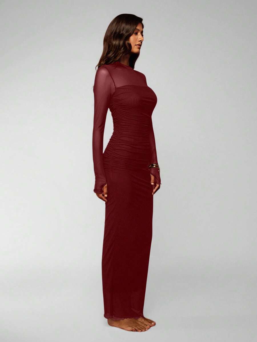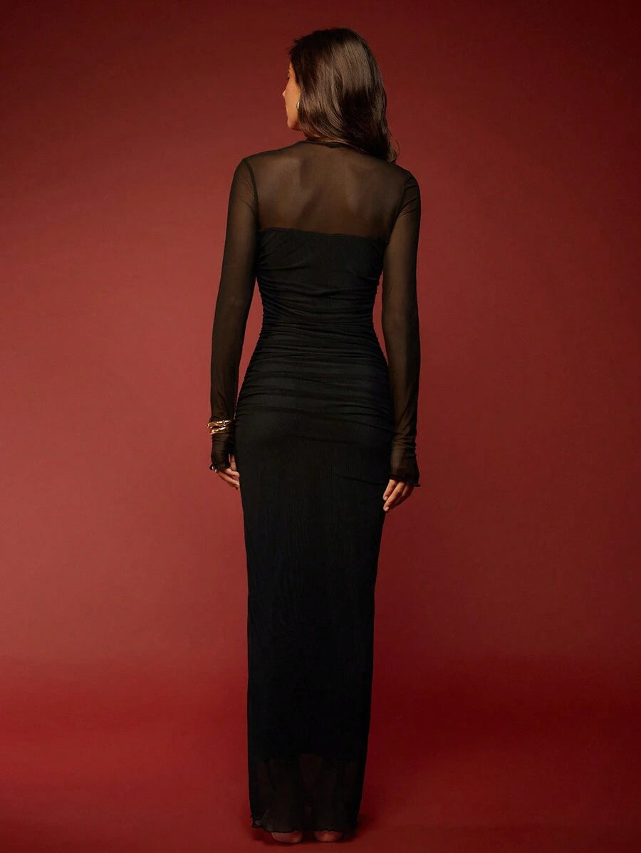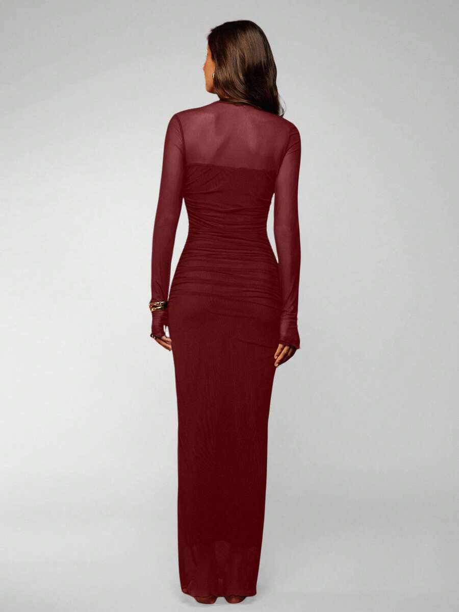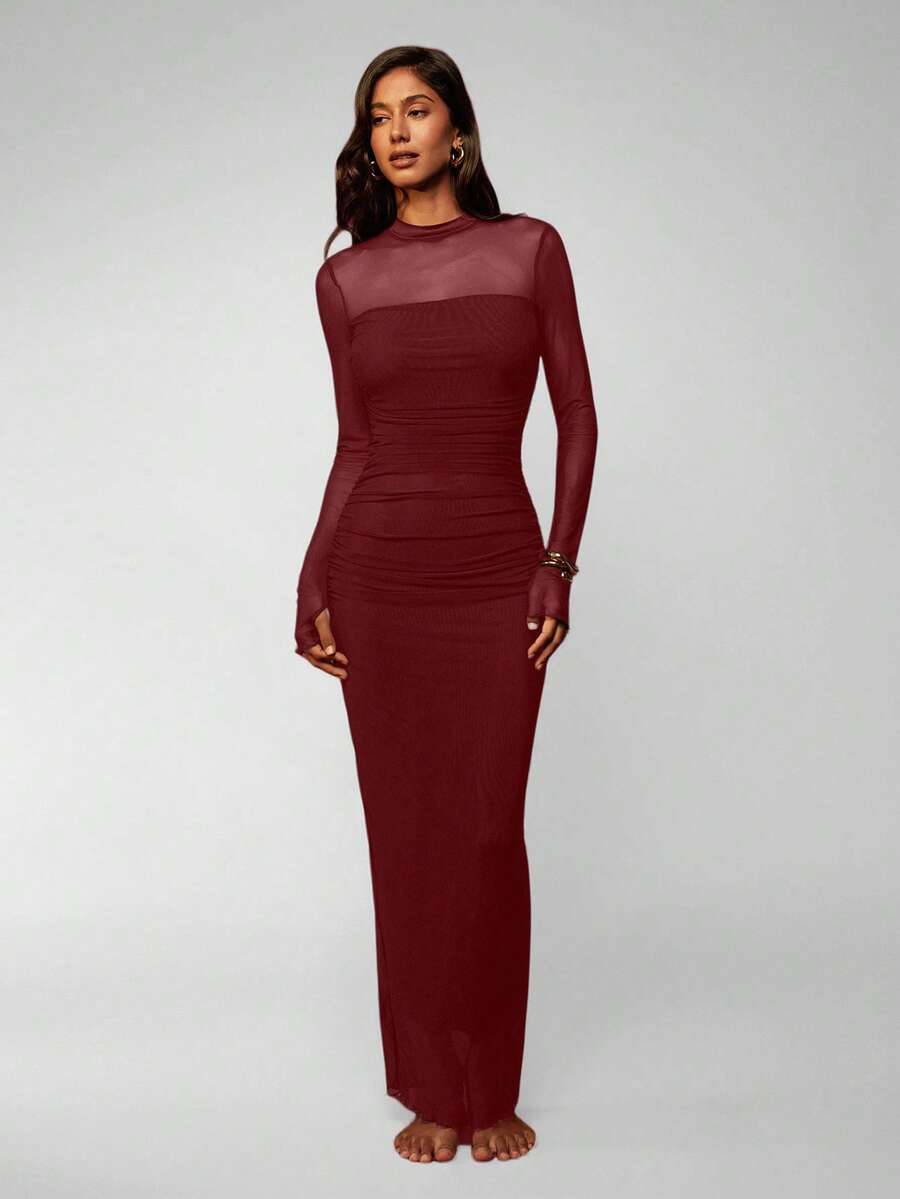 Opulessa Ženska Casual Sxy Mrežasta Patchwork Sirena Stil 1pc Odmor Duga Rukava Pletena Prozirna Haljina, Pogodna za Izlaske, Koncerte, Zabave, Klubove, Za Jesen i Zimu
