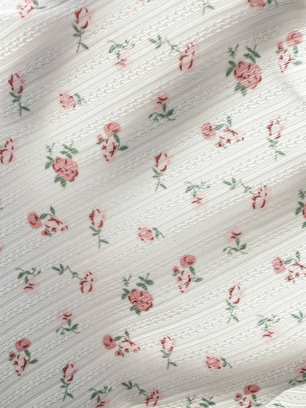 Komplet pidžame mit top od kamisola i kratke hlače u Weiß mit Ditsy Blume Muster und Rüschensaum