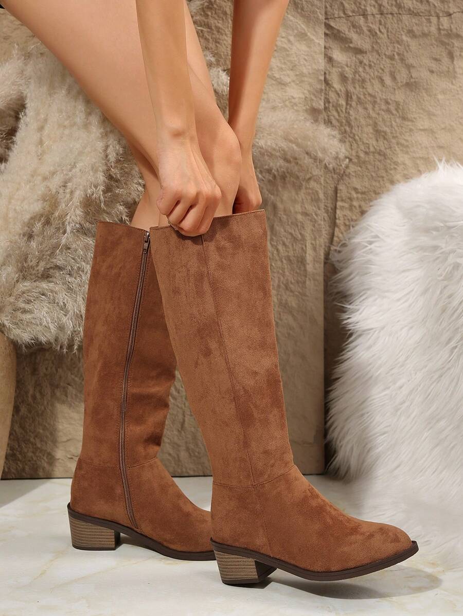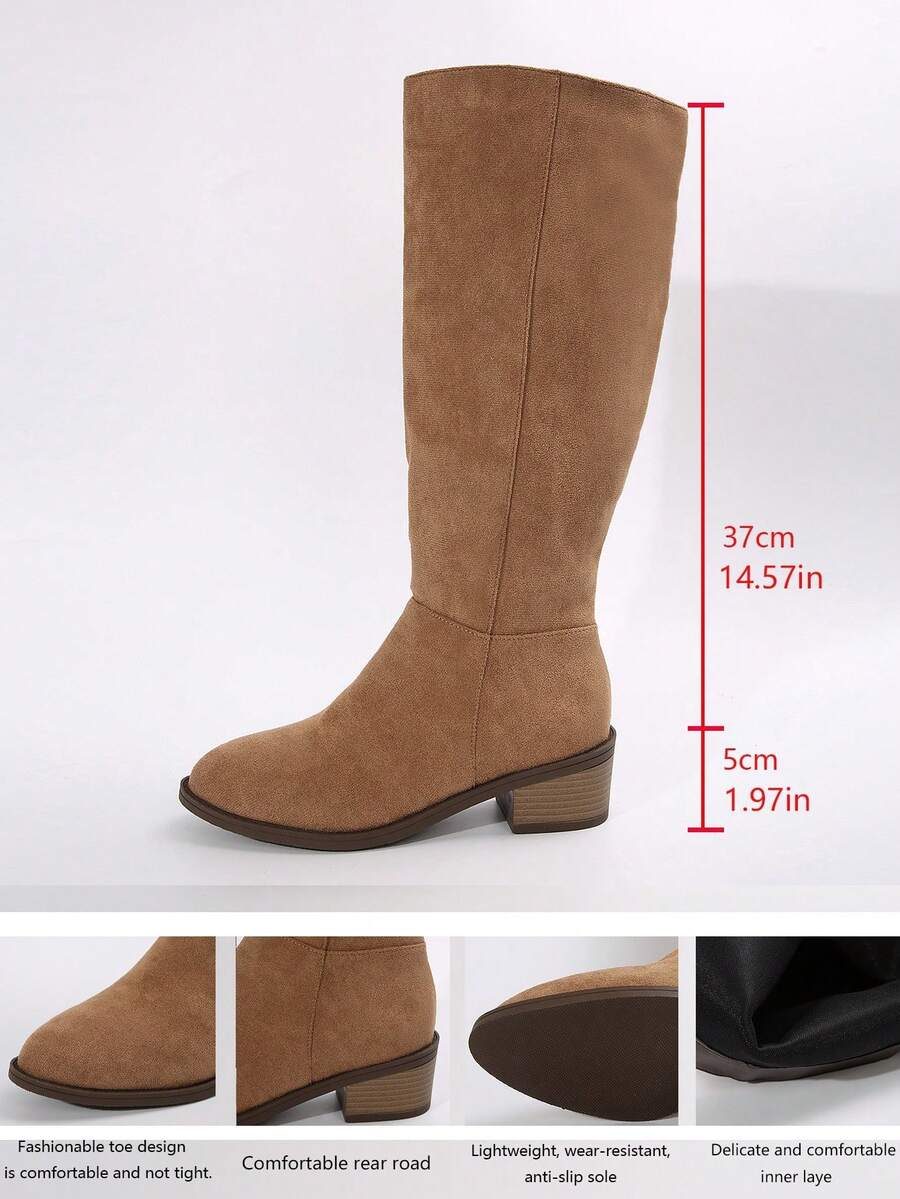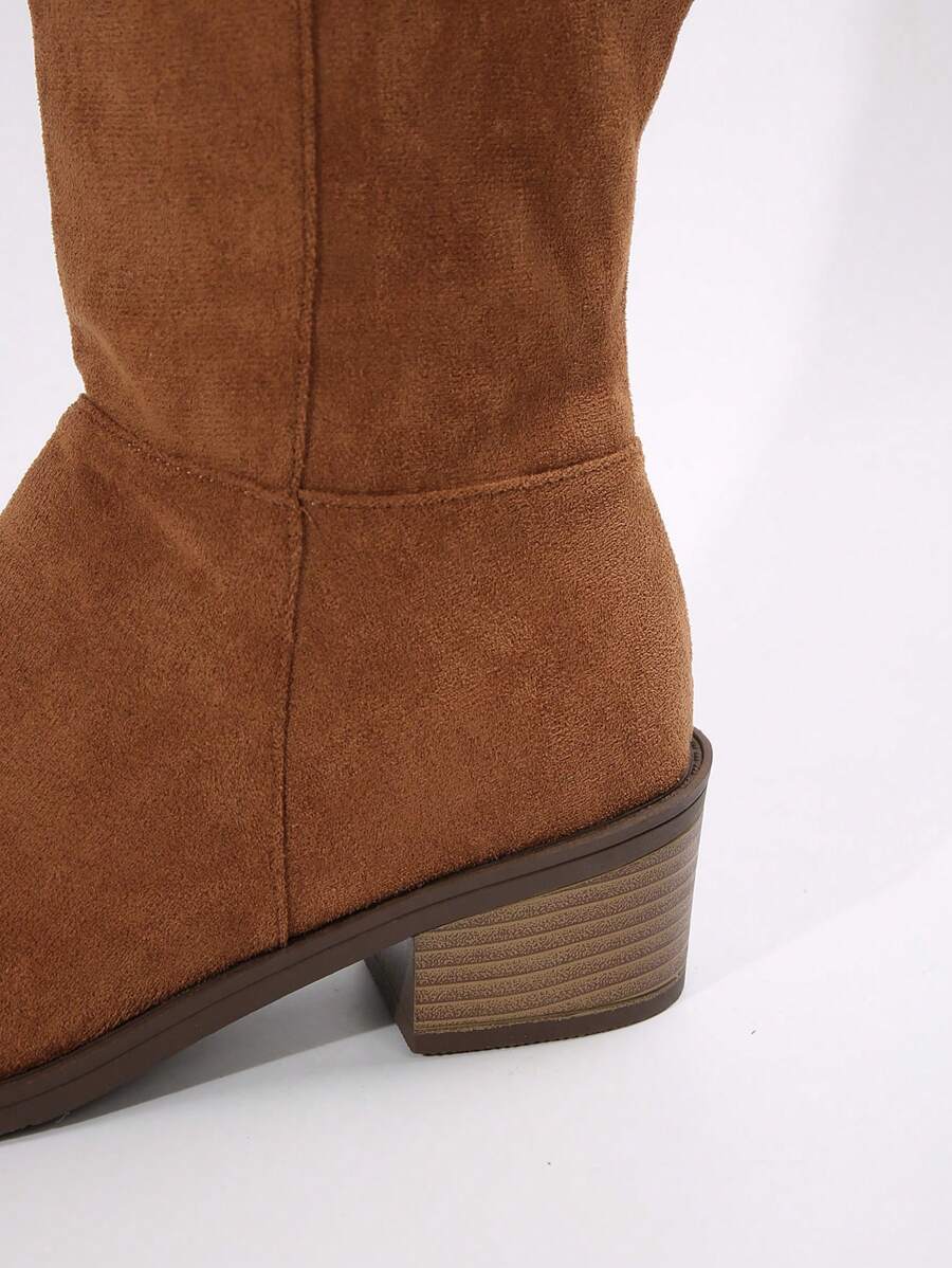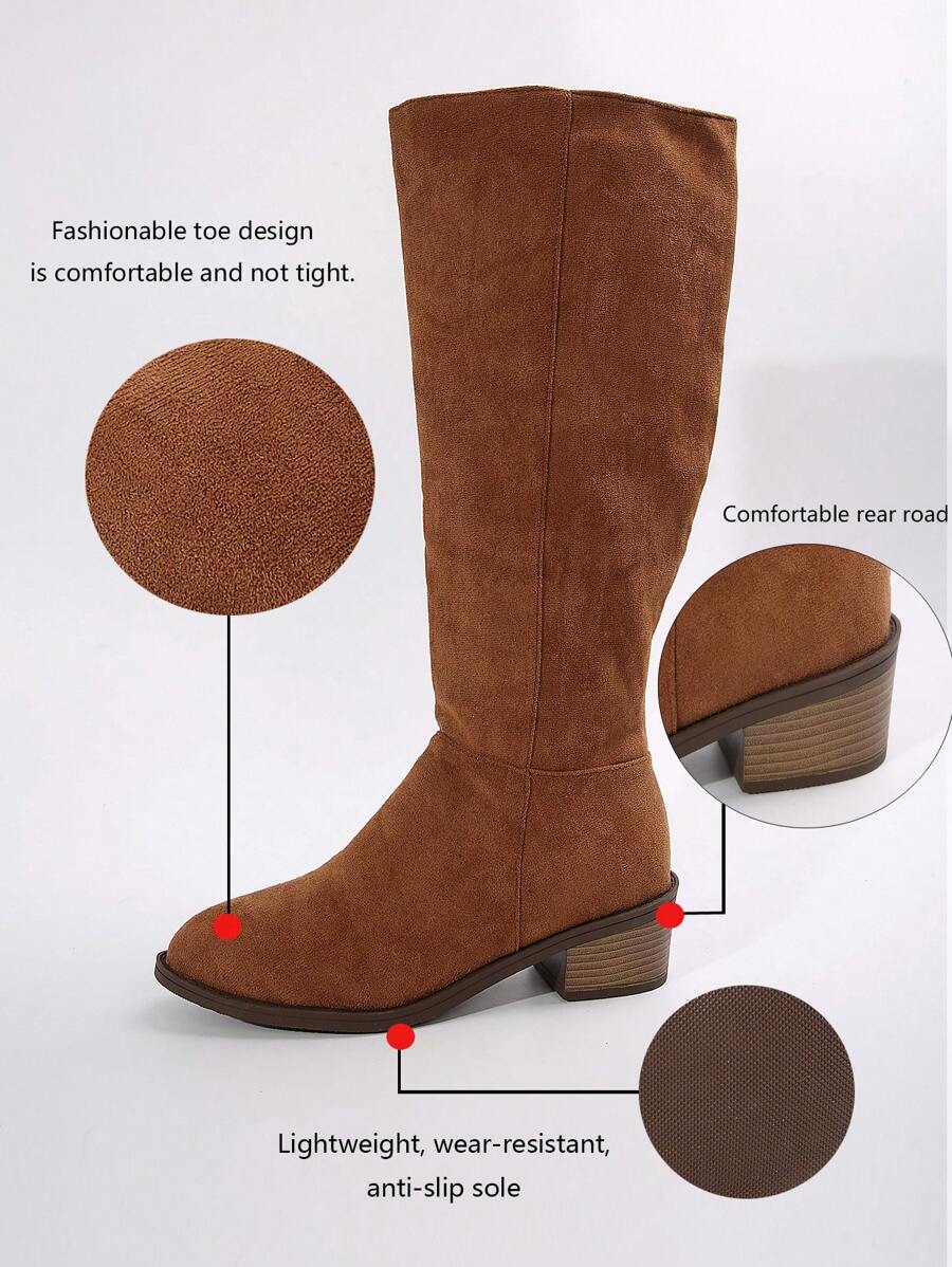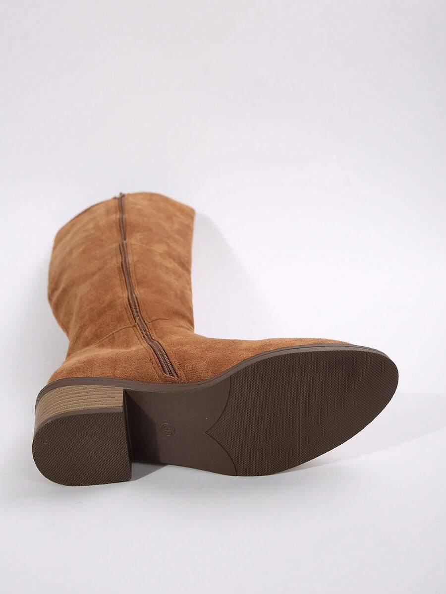 Plus Size Ženske Suede Smeđe Čizme do Koljena sa Bočnim Rajsferšlusom i Chunky Petom