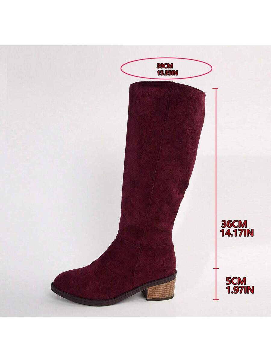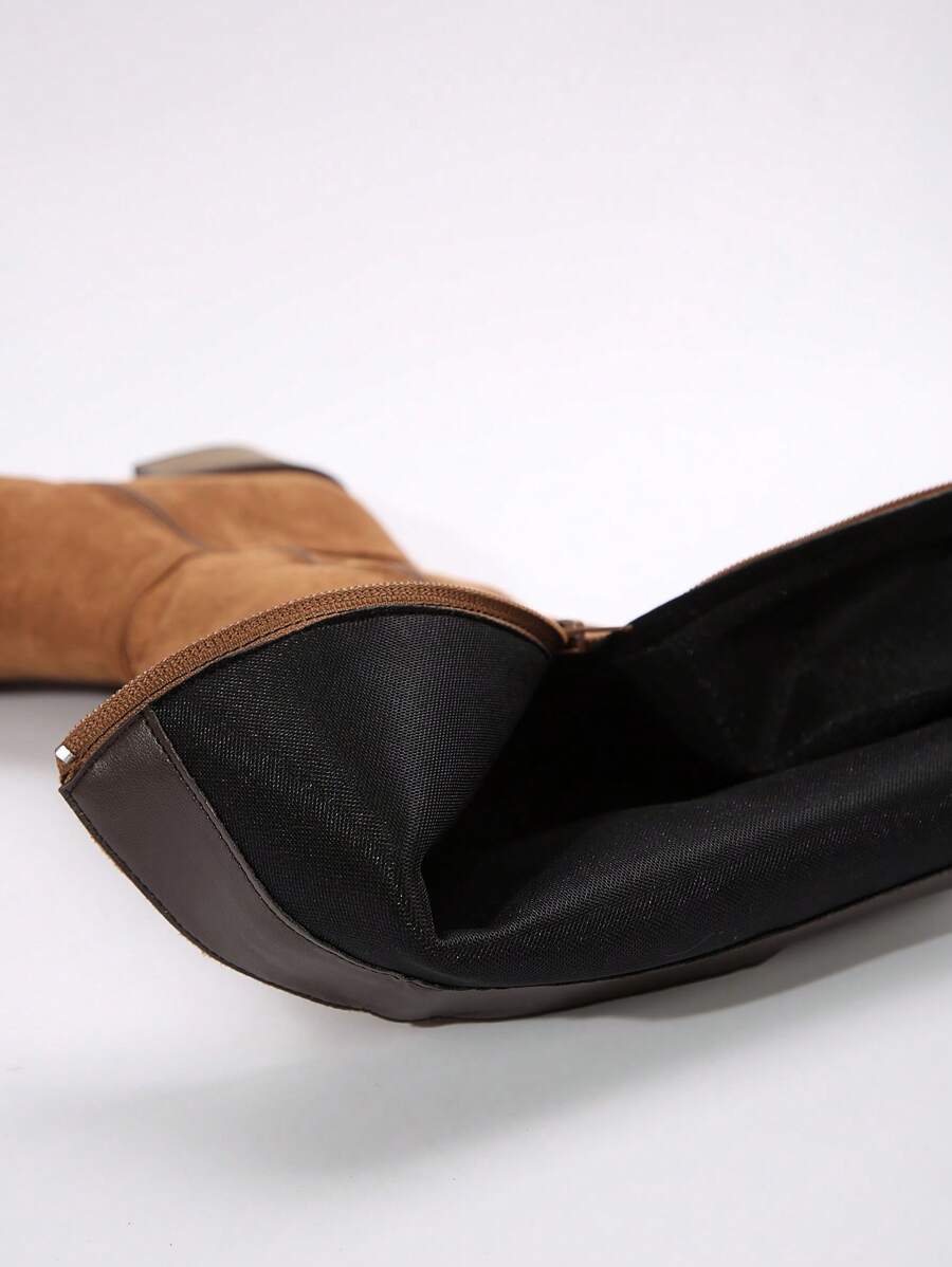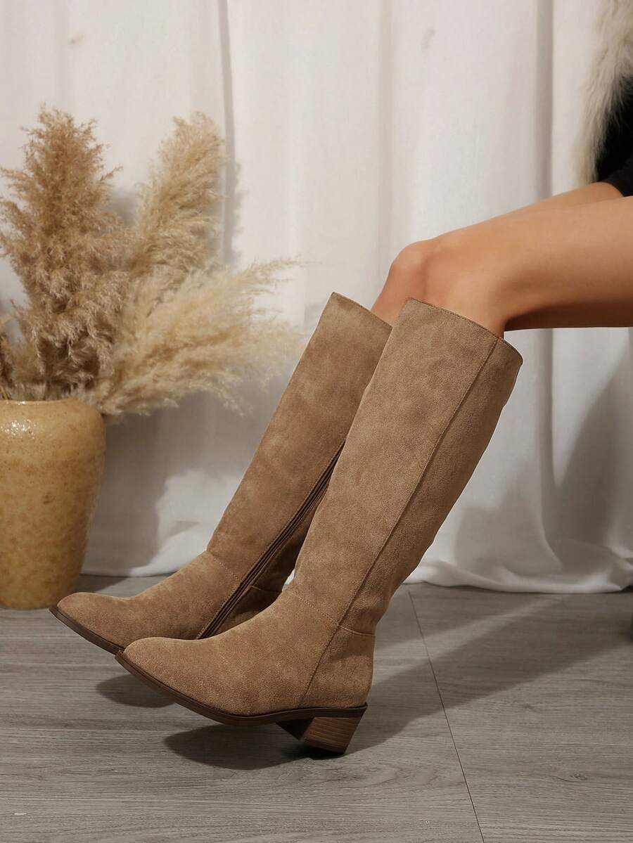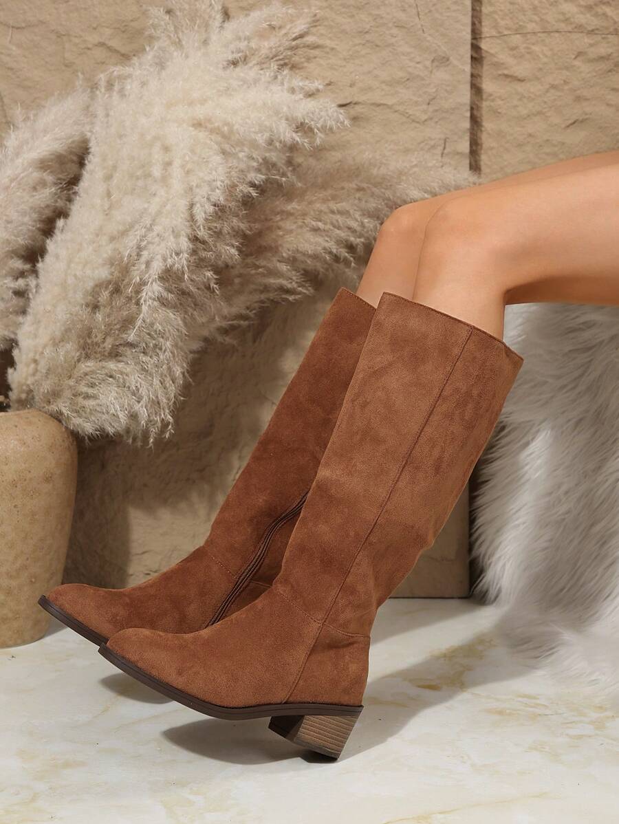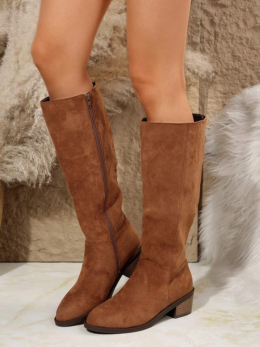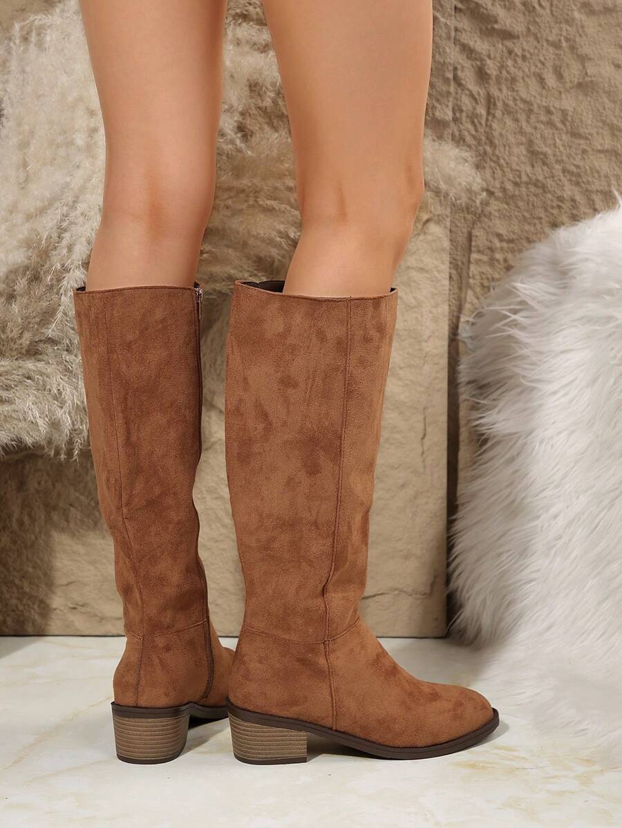 Plus Size Ženske Suede Smeđe Čizme do Koljena sa Bočnim Rajsferšlusom i Chunky Petom