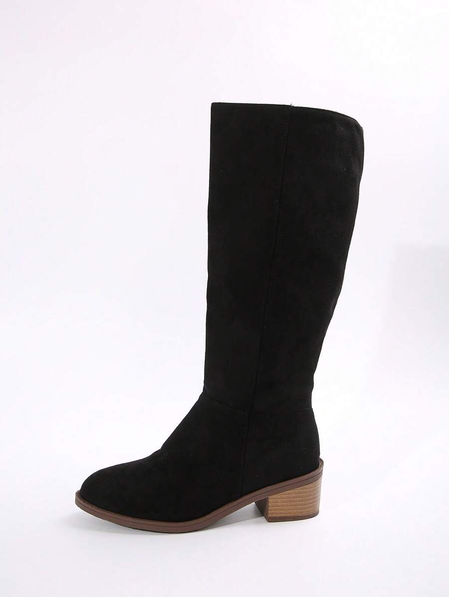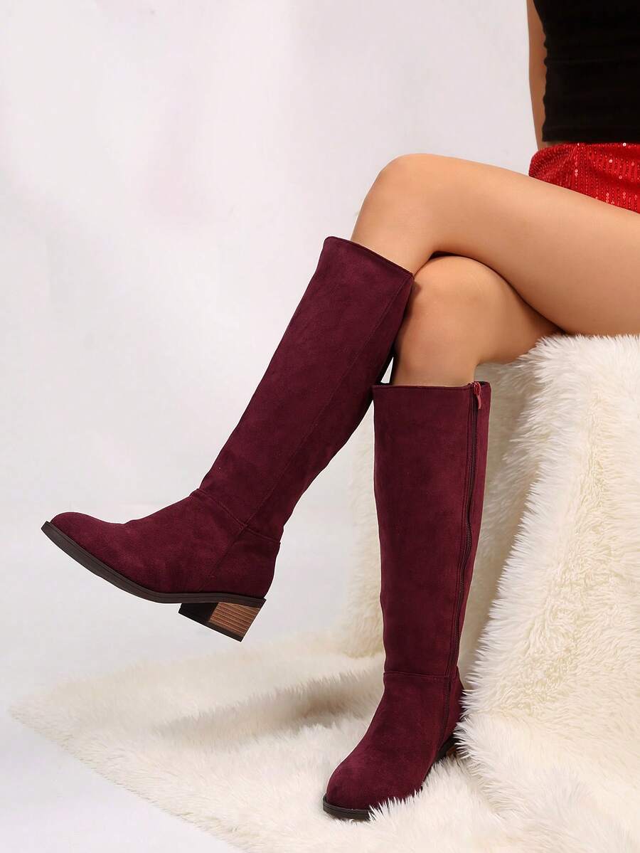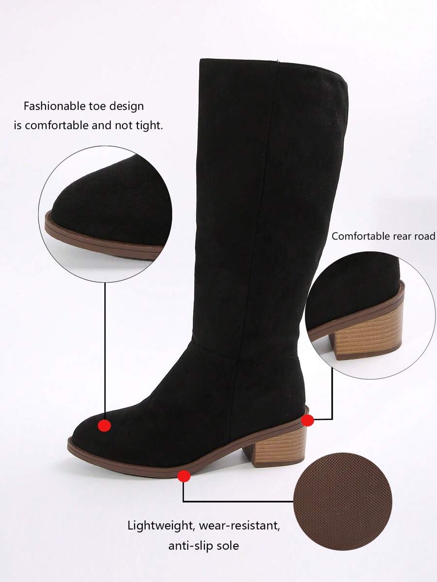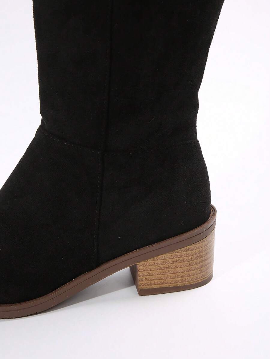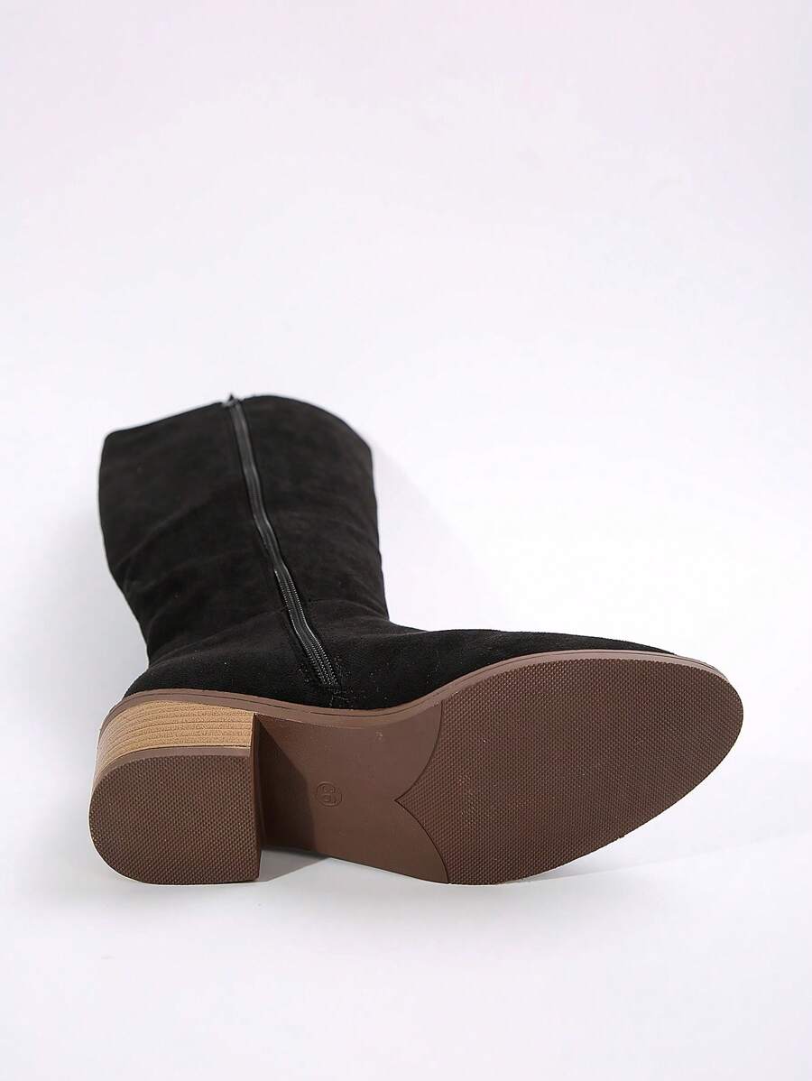 Plus Size Ženske Suede Smeđe Čizme do Koljena sa Bočnim Rajsferšlusom i Chunky Petom