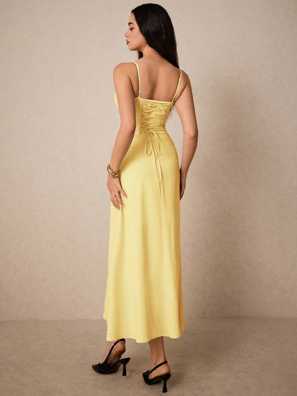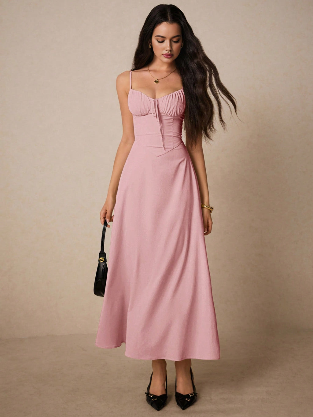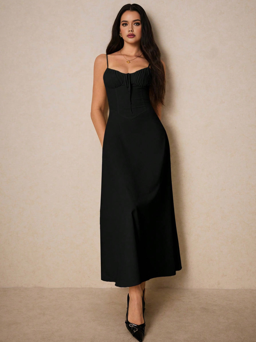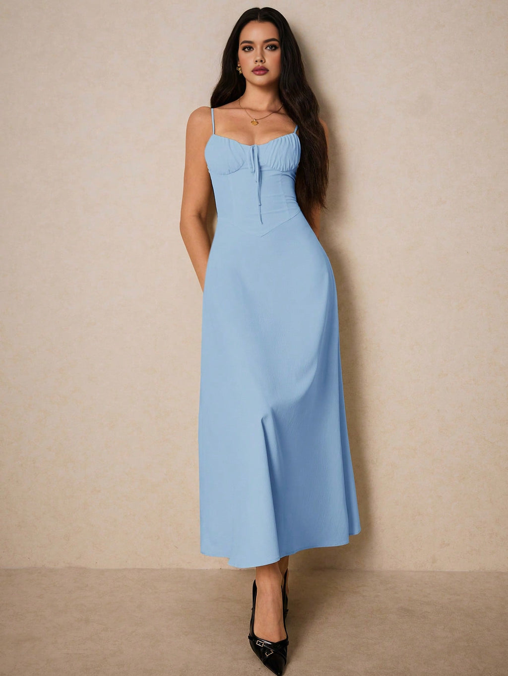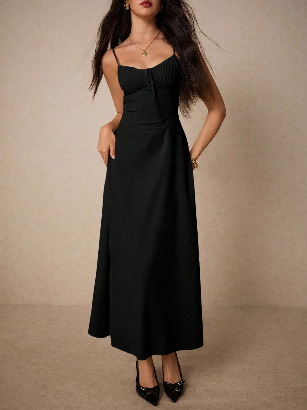 Poéselle elegantna krem maksi haljina – srcoliki izrez, volani, za vjenčanja, maturu i romantične prilike