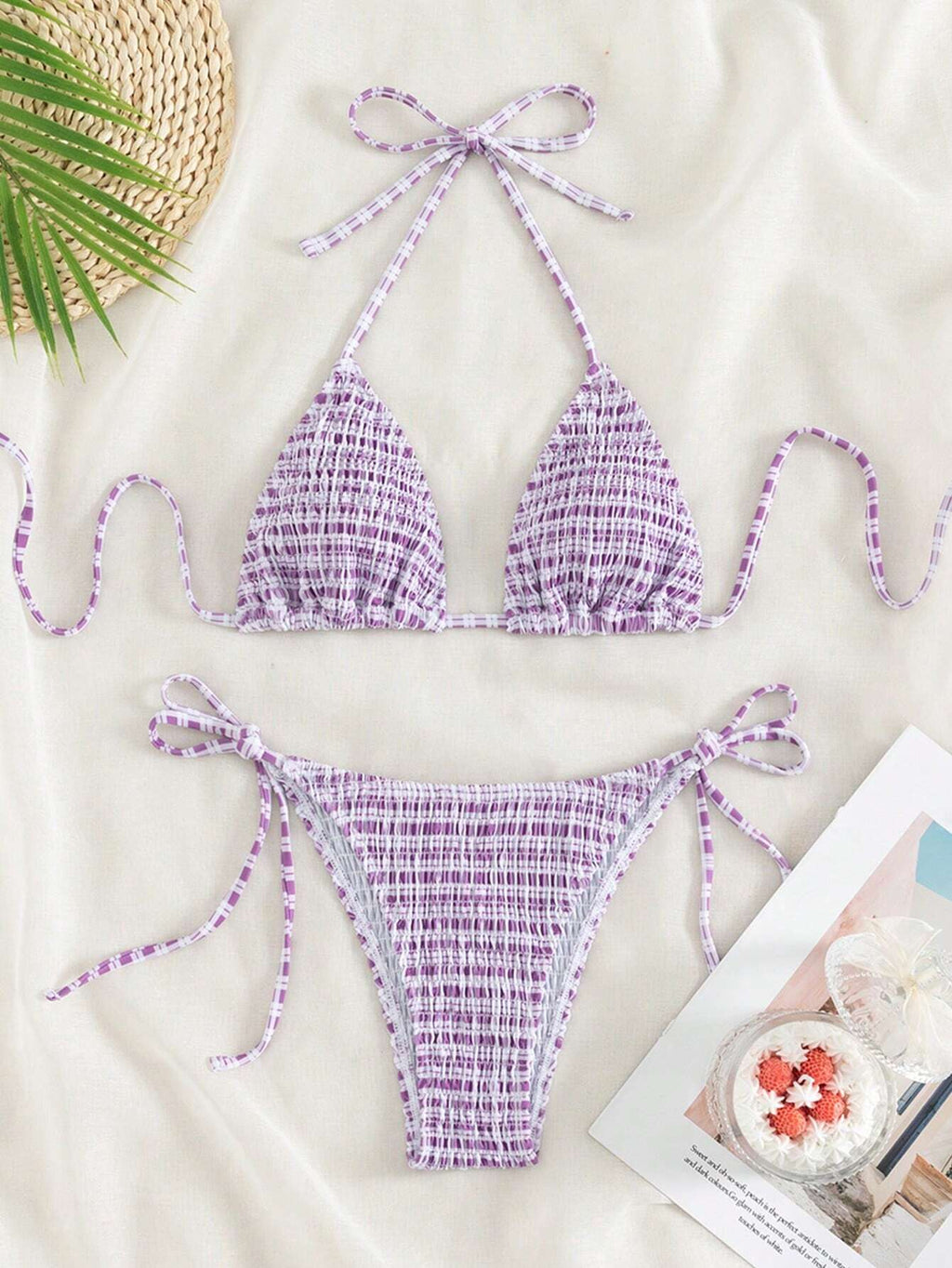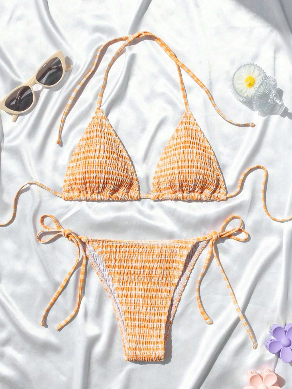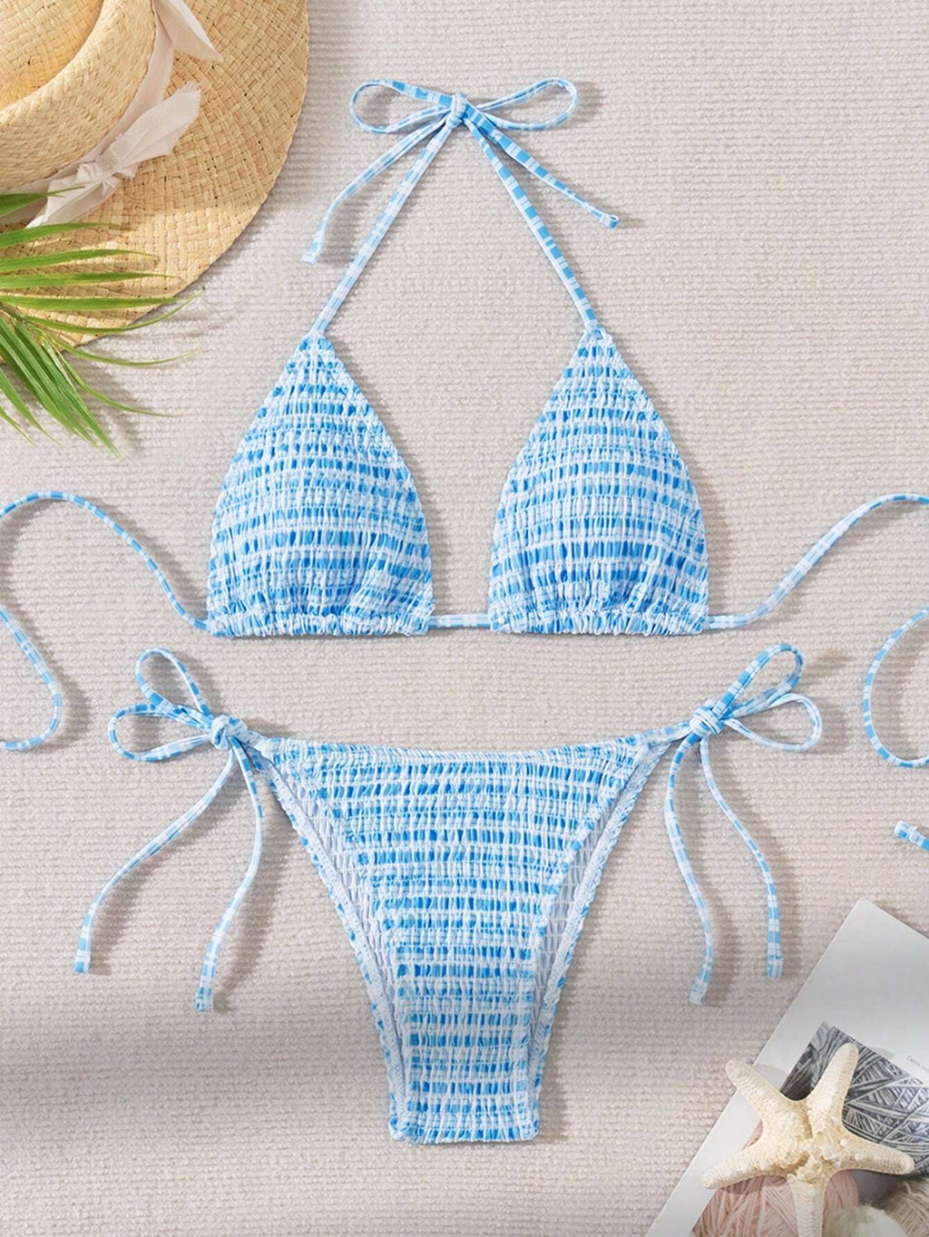 Prugasti bikini set za plivanje, dvodijelni kupaći kostim sa trouglastim grudnjakom i tangama za plivanje