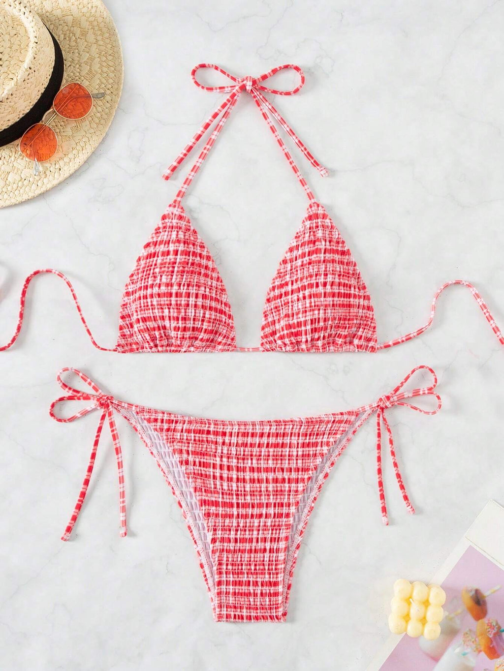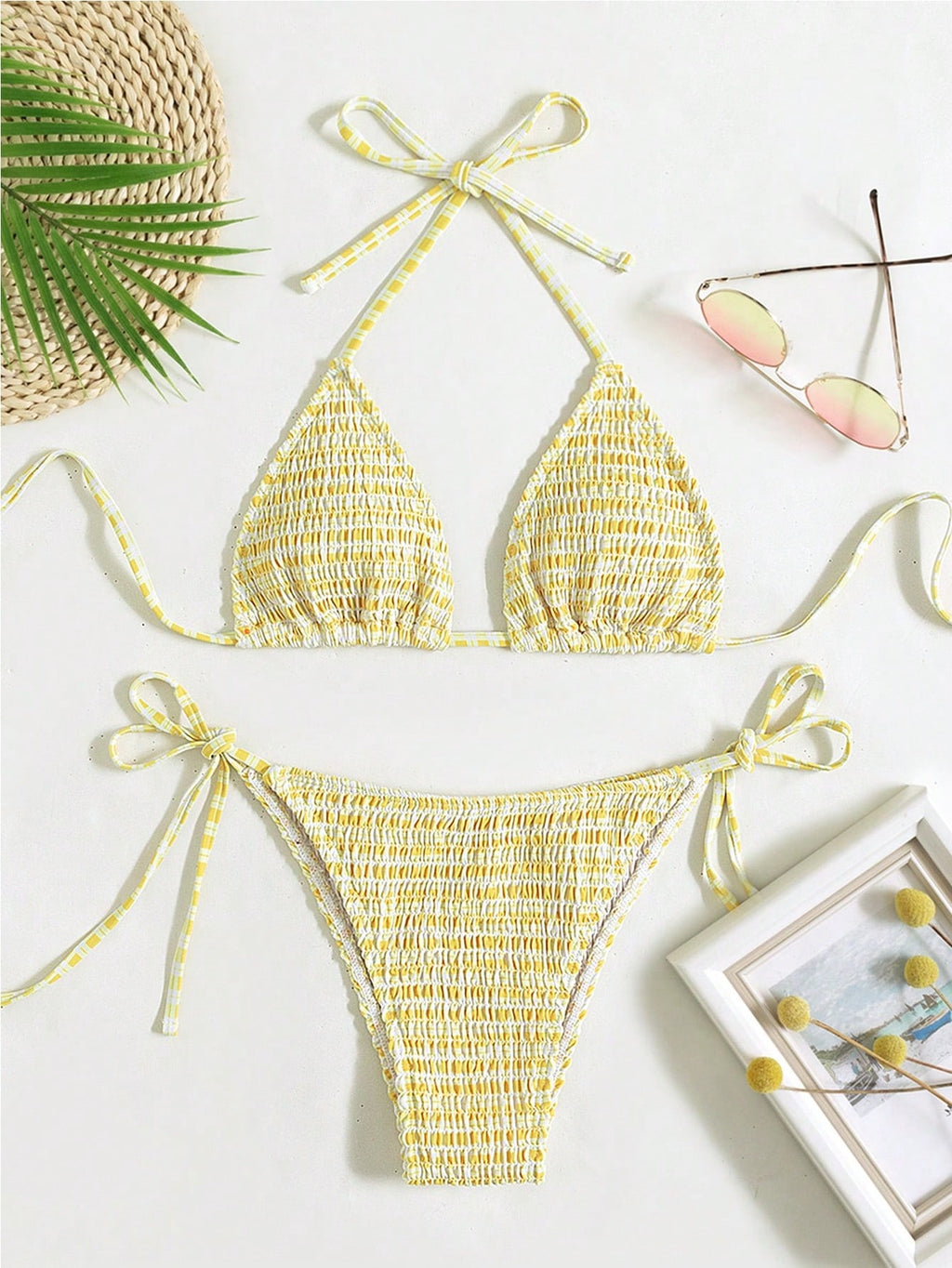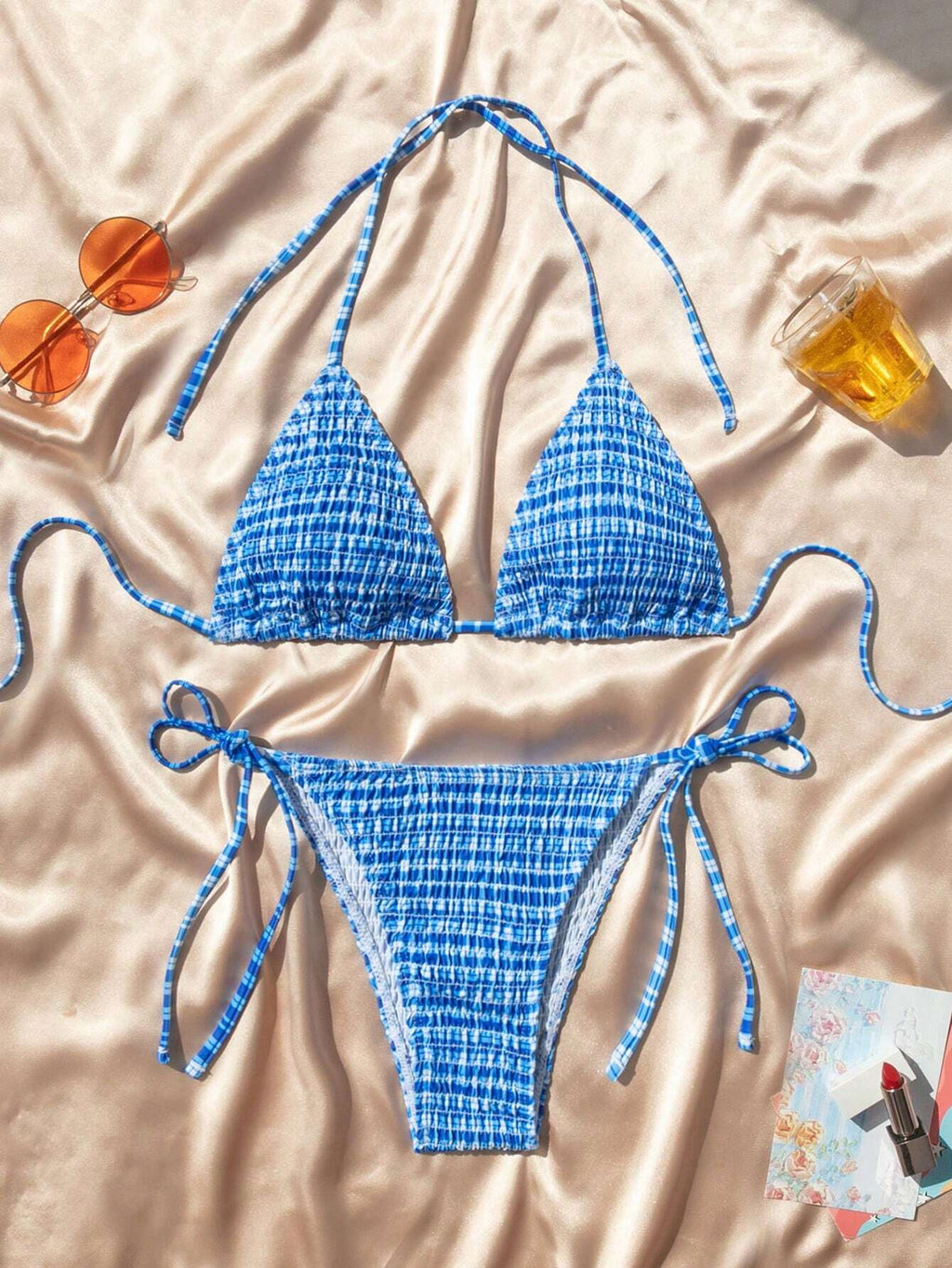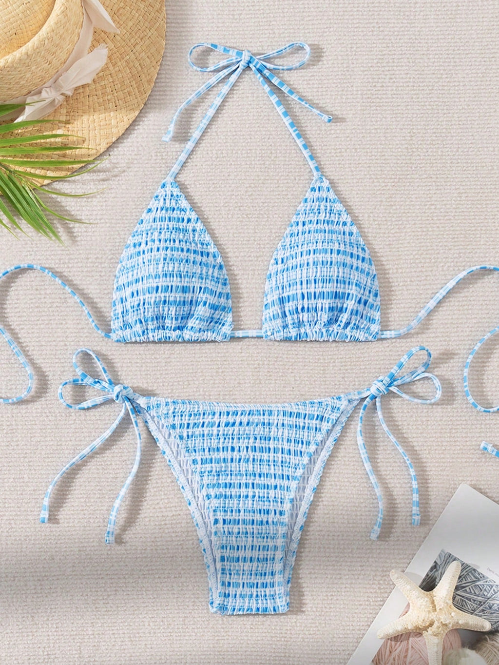 Prugasti bikini set za plivanje, dvodijelni kupaći kostim sa trouglastim grudnjakom i tangama za plivanje