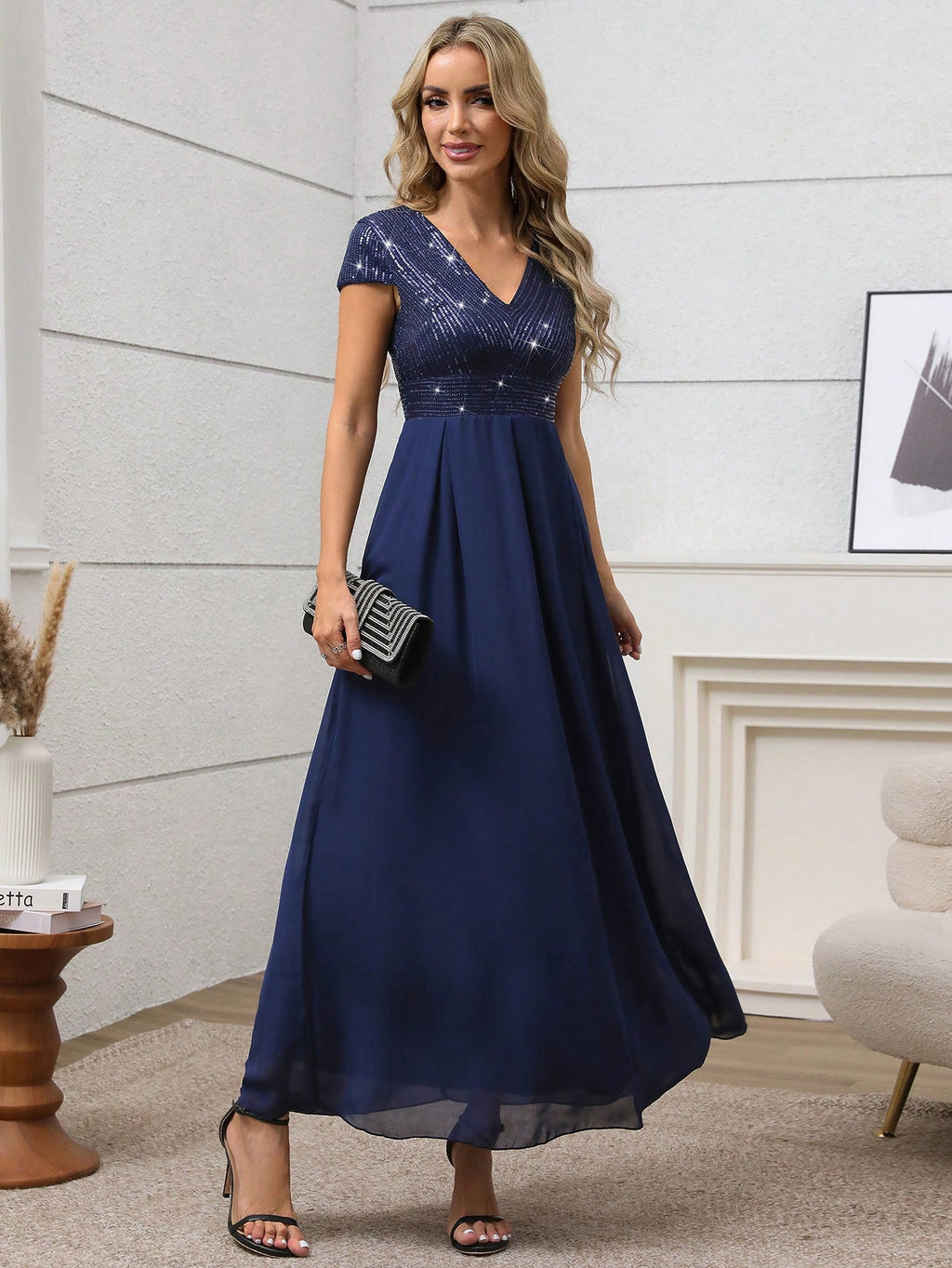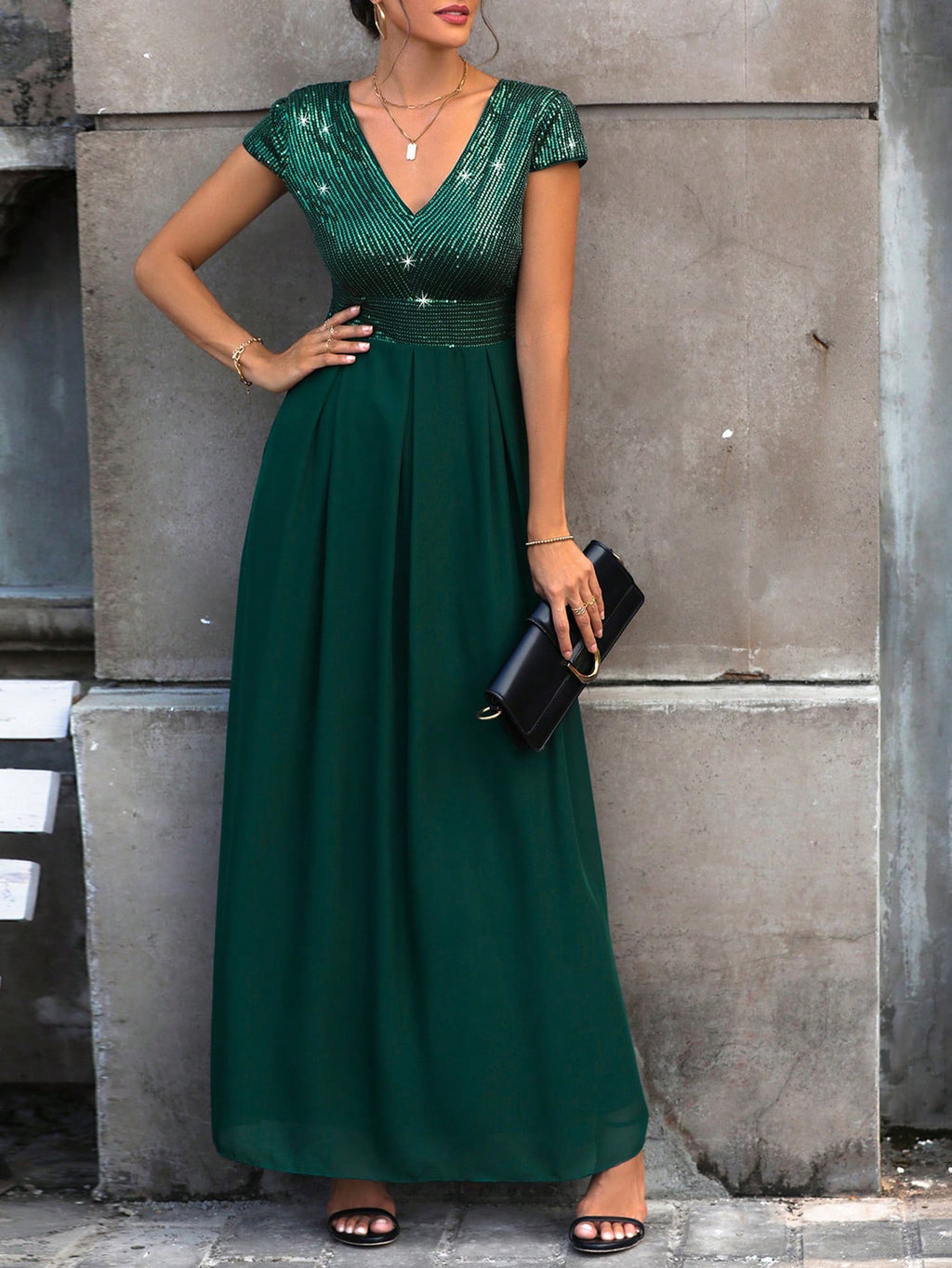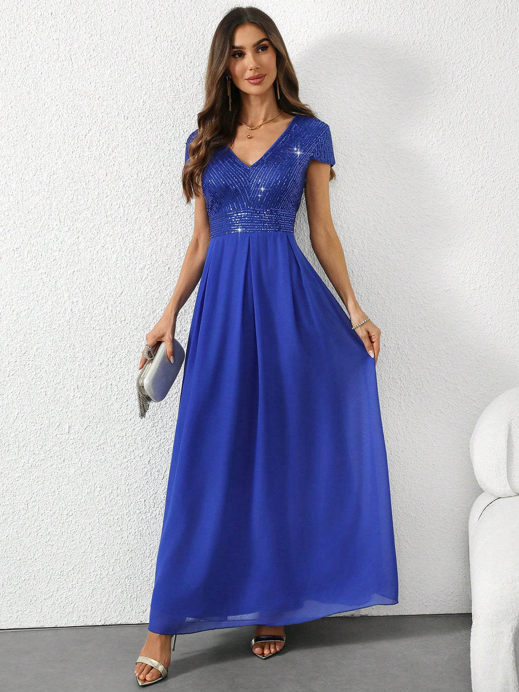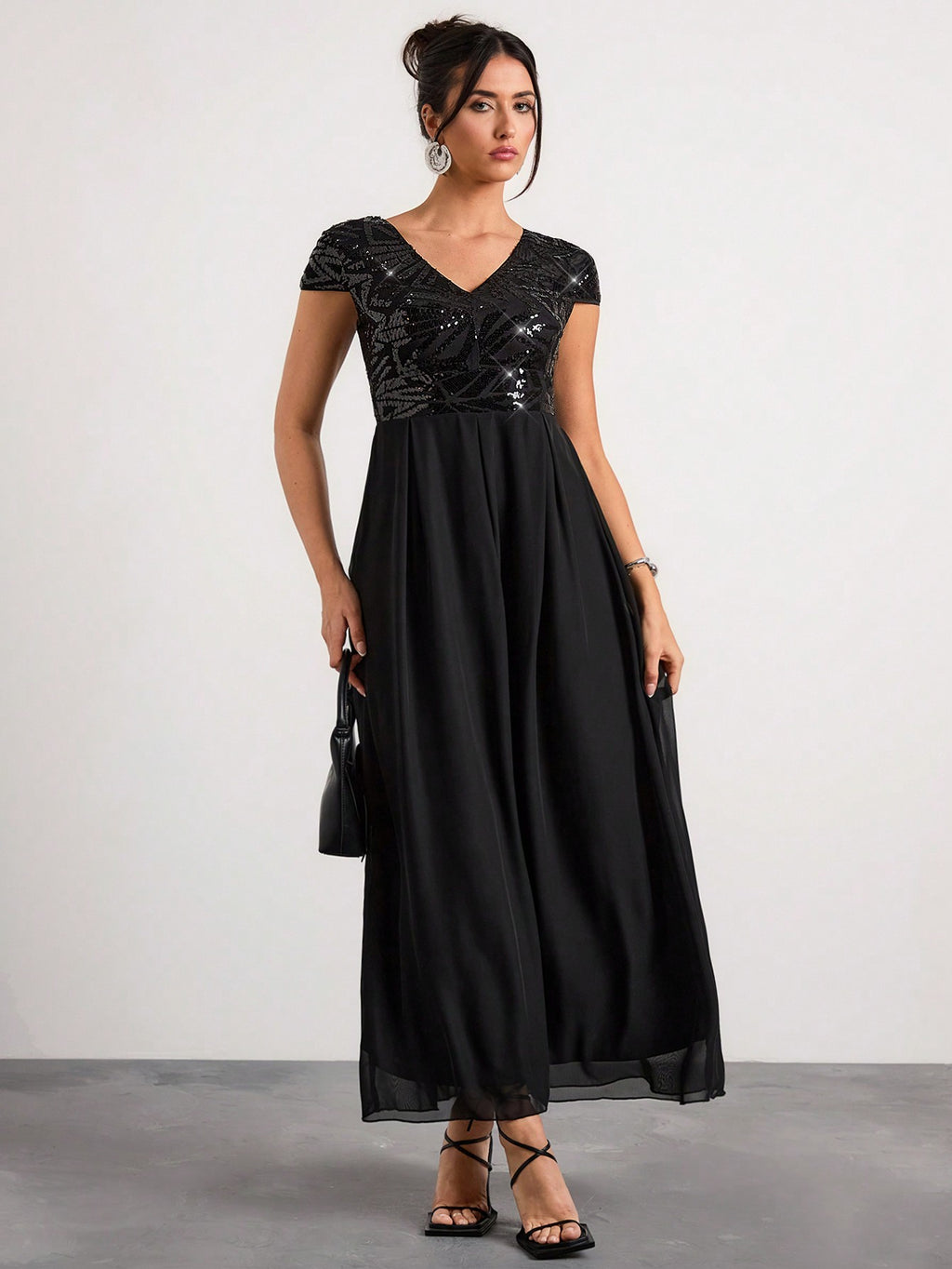 Ženska maksi haljina od šifona s V izrezom i kontrastnim šljokicama BELLAVOG Rafferiza