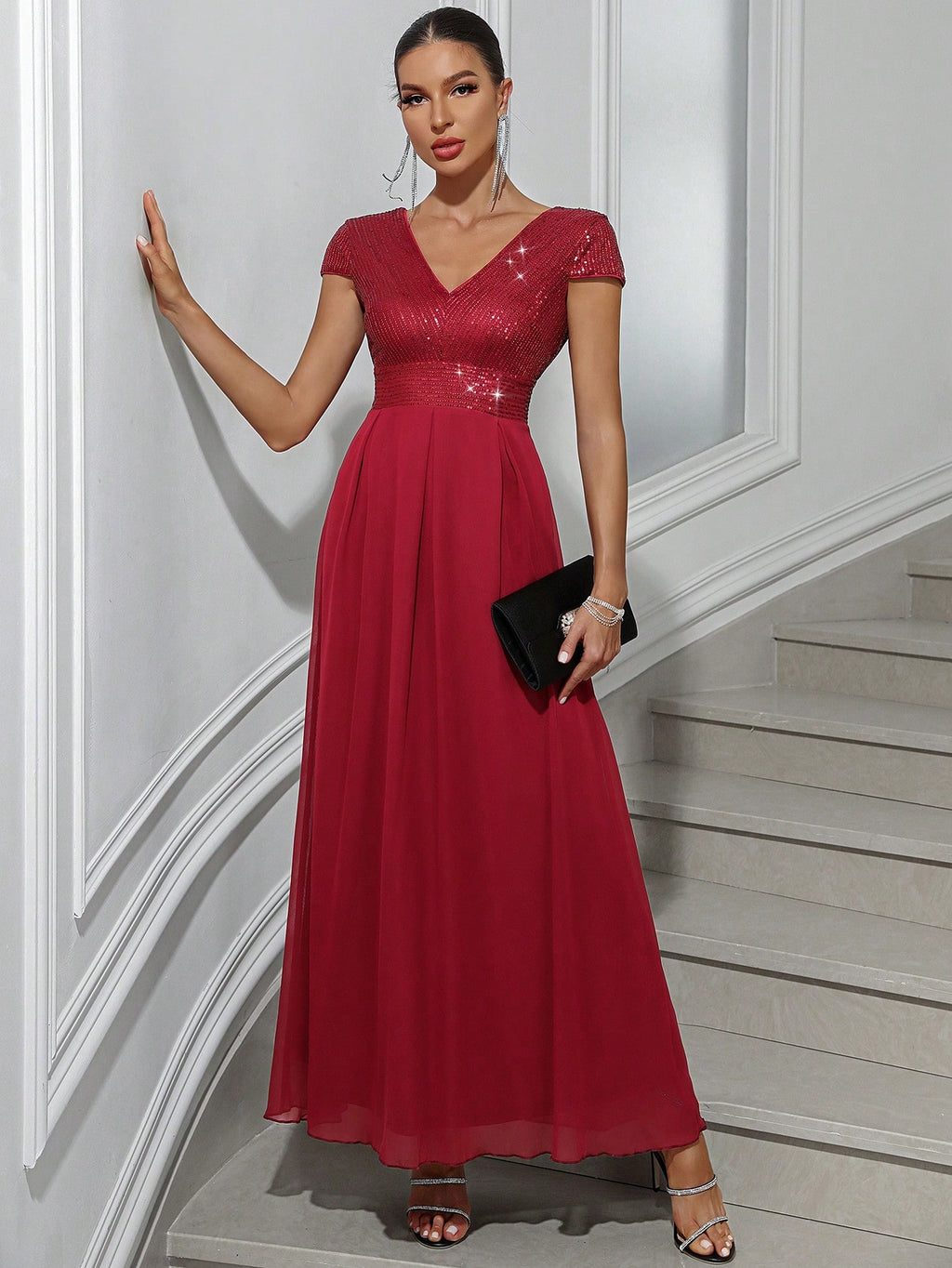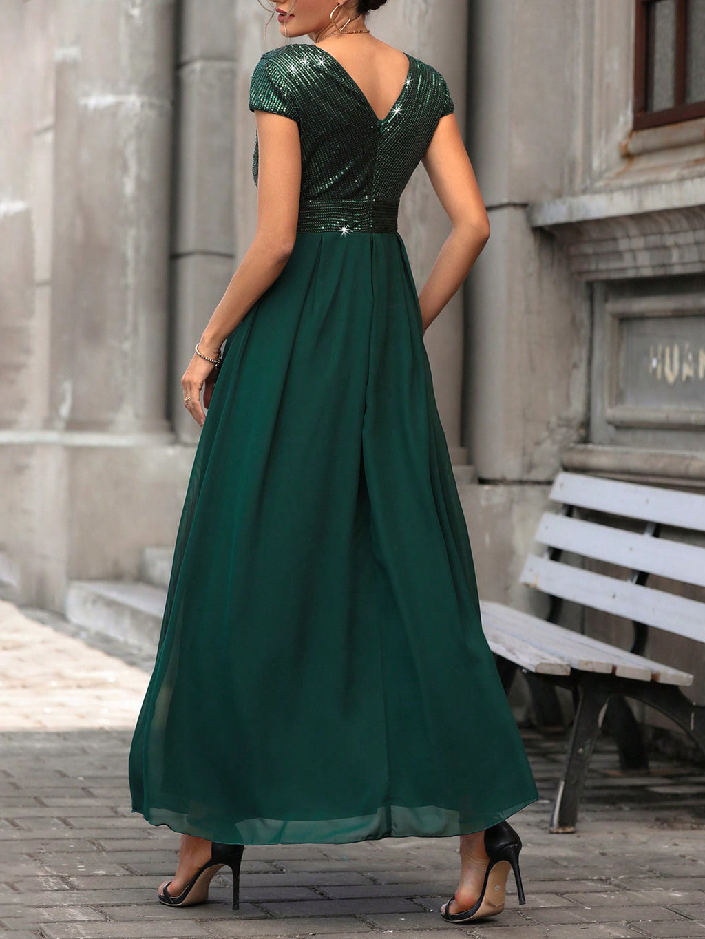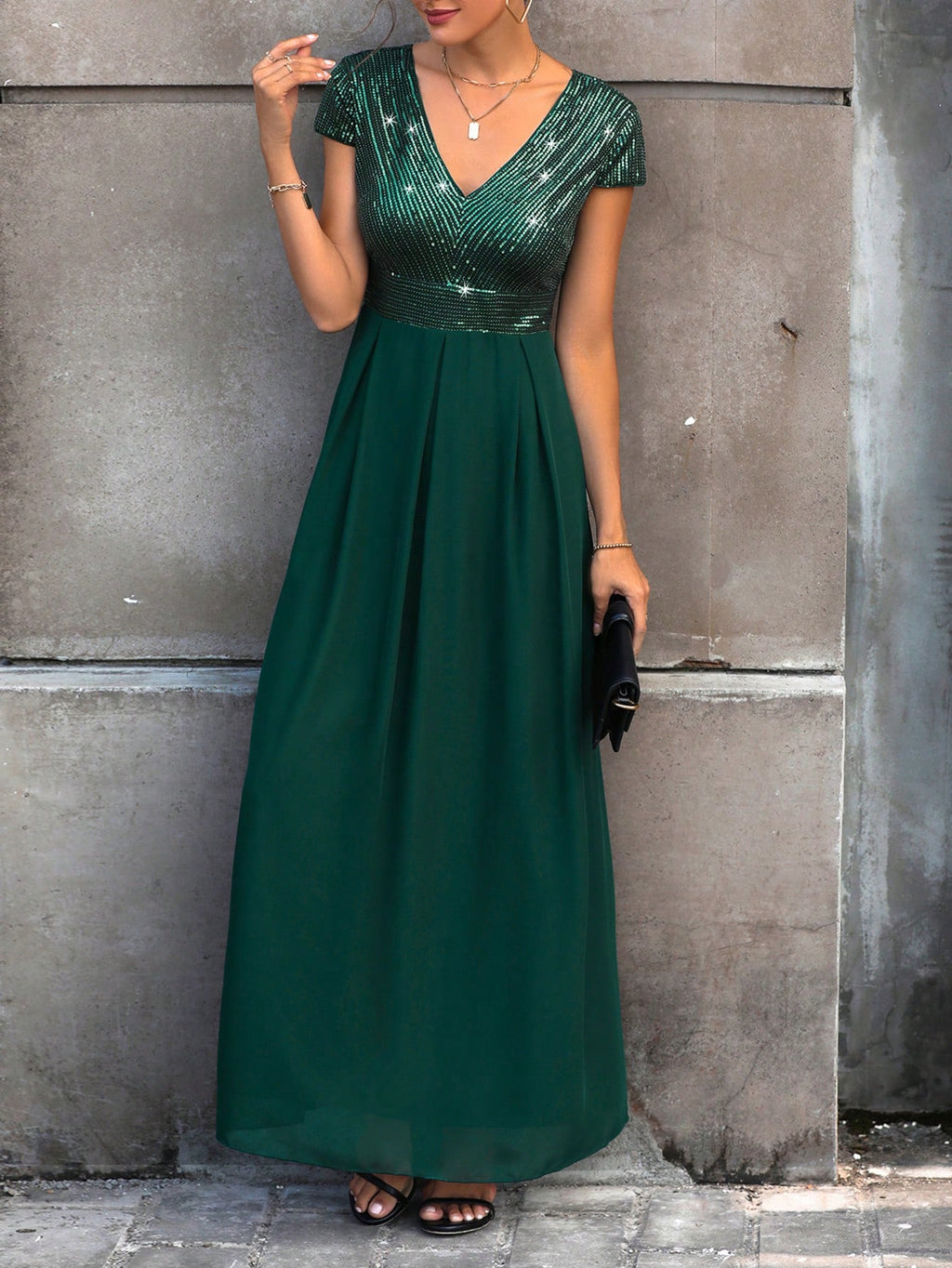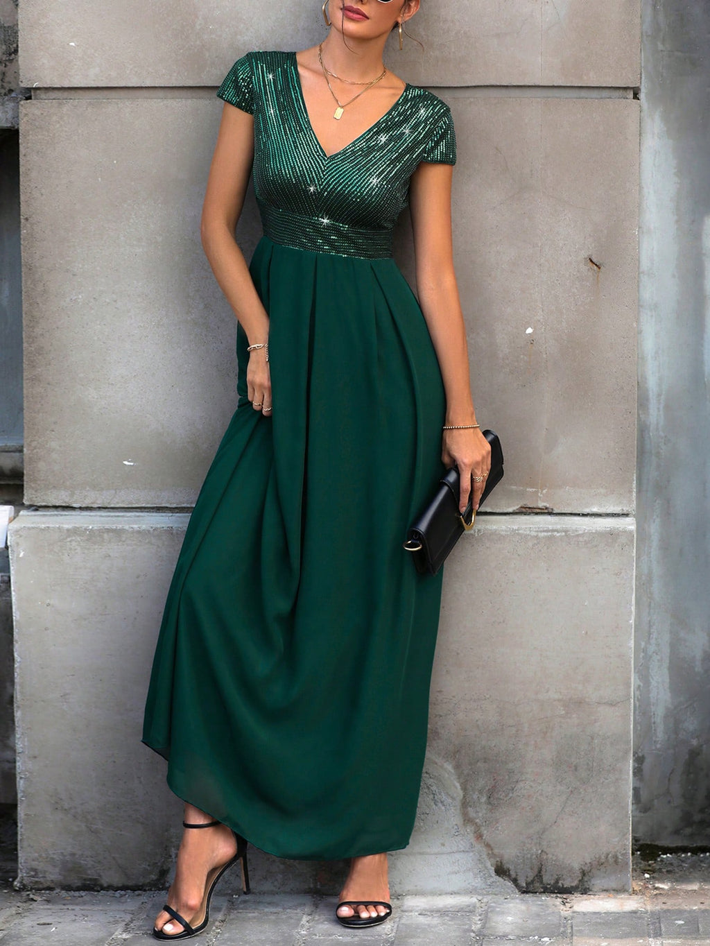 Ženska maksi haljina od šifona s V izrezom i kontrastnim šljokicama BELLAVOG Rafferiza
