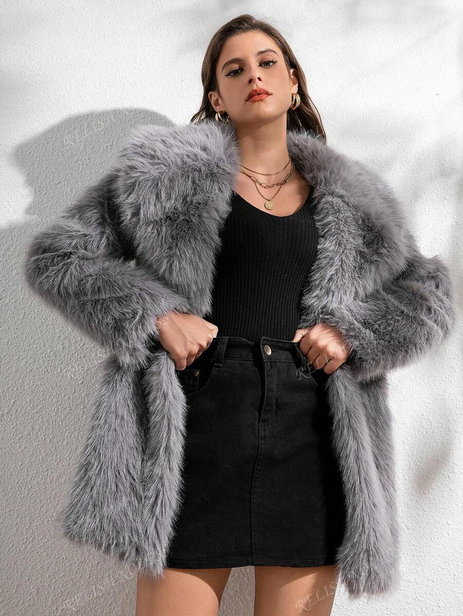 RELISH NOLESS pahuljasti kaput s rever-ovratnikom i kosim džepovima