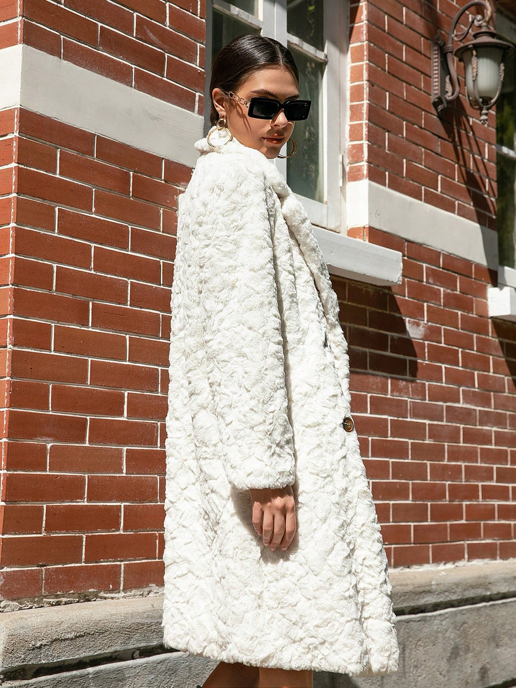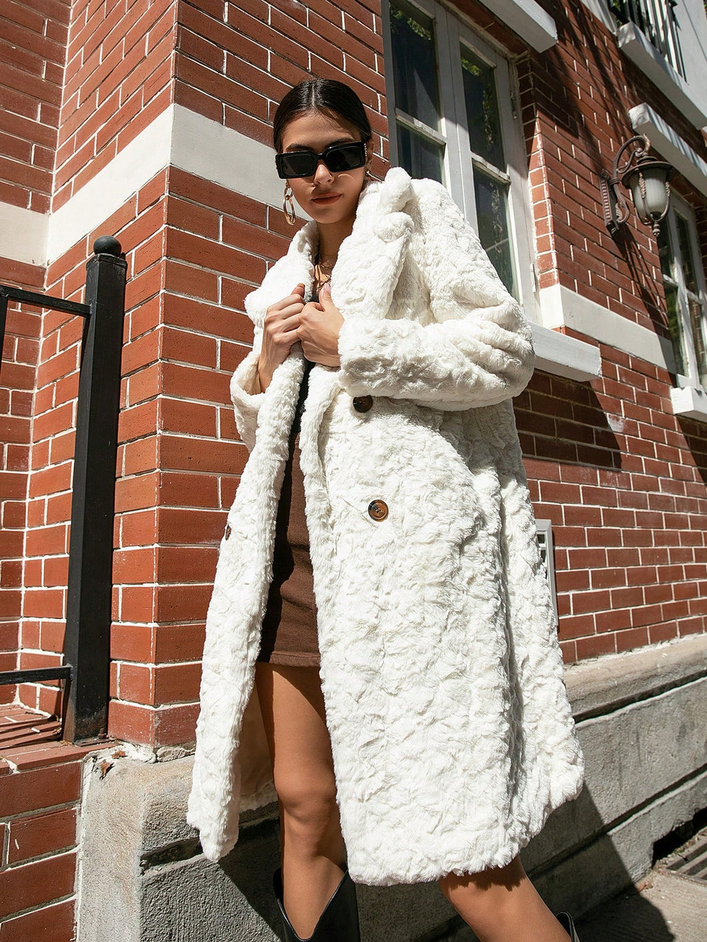 RELISH NOLESS Ženska duga bijela dvostruko kopčana jakna od umjetnog krzna – Jesen/Zima