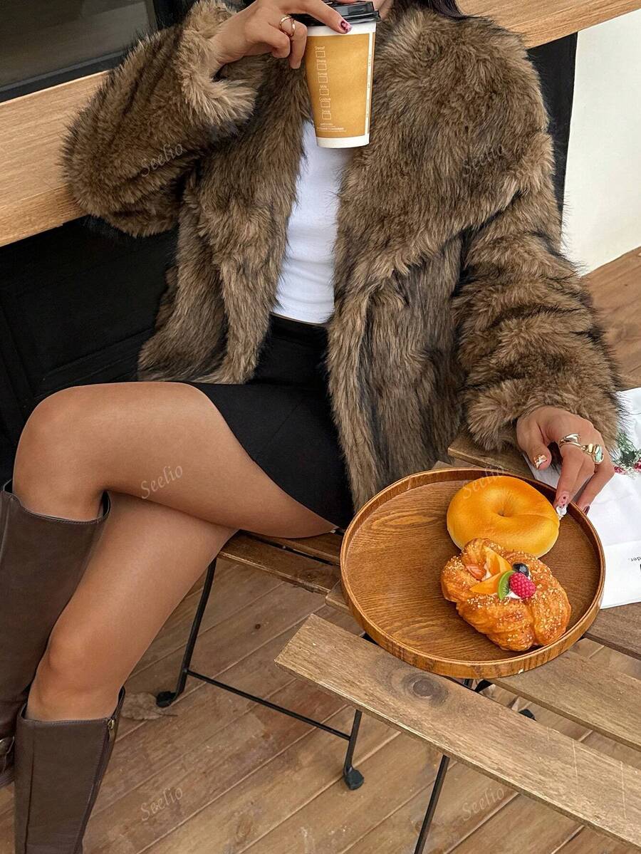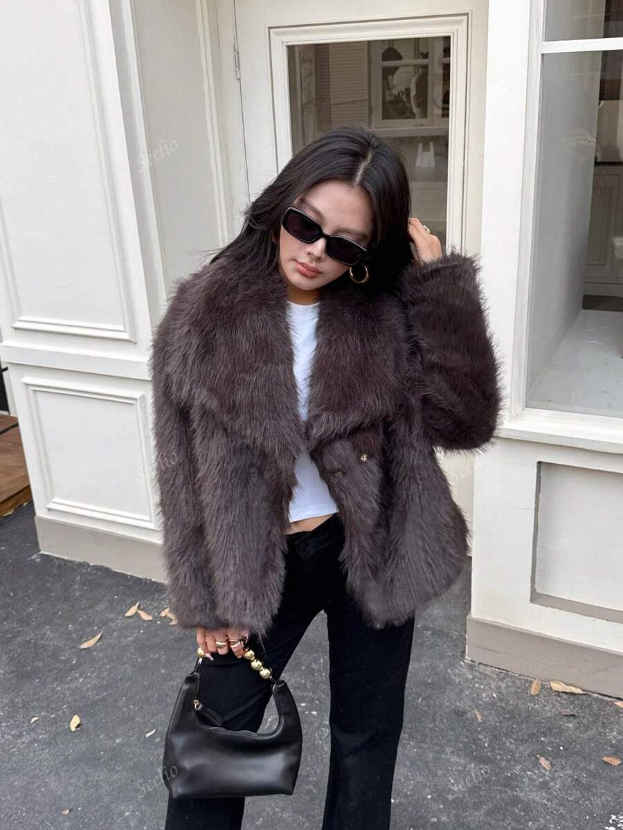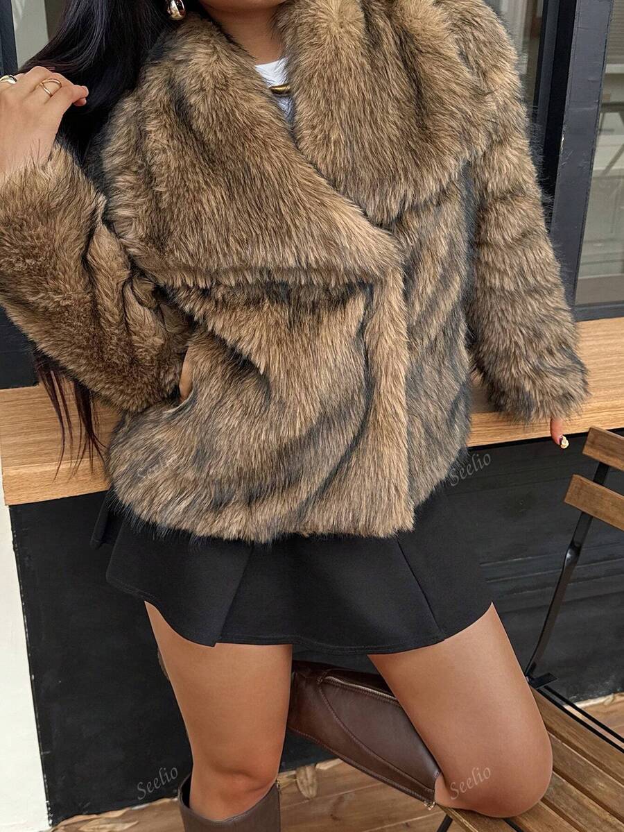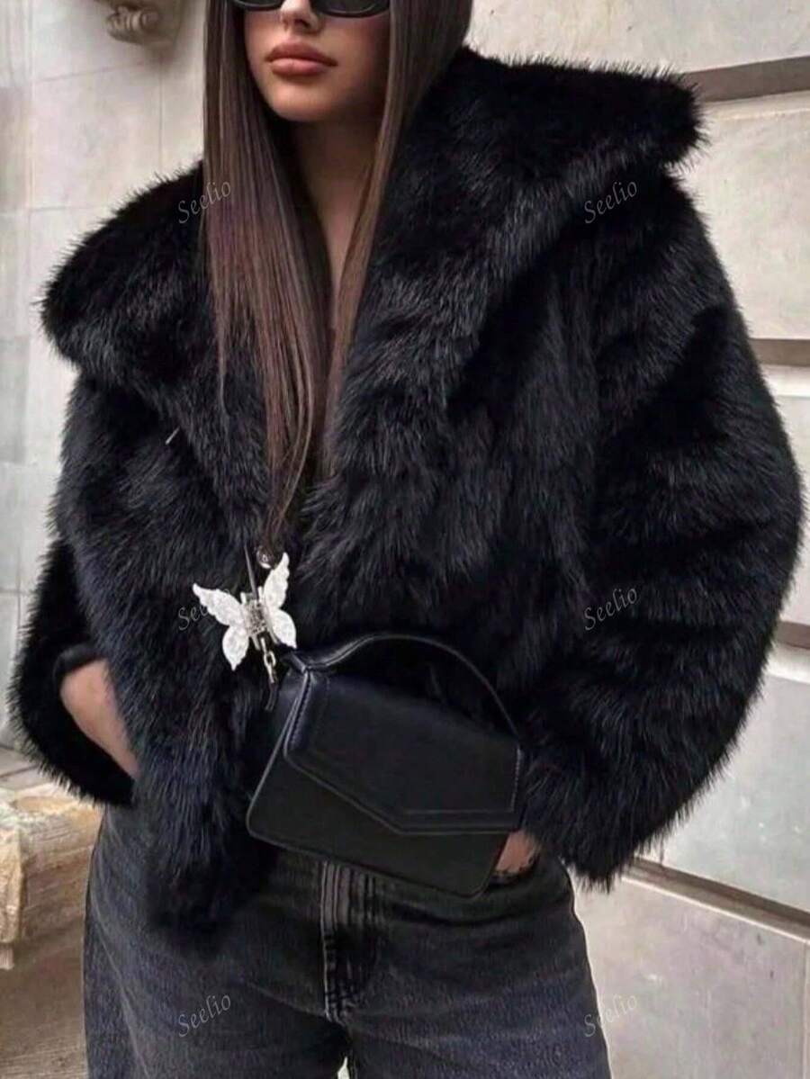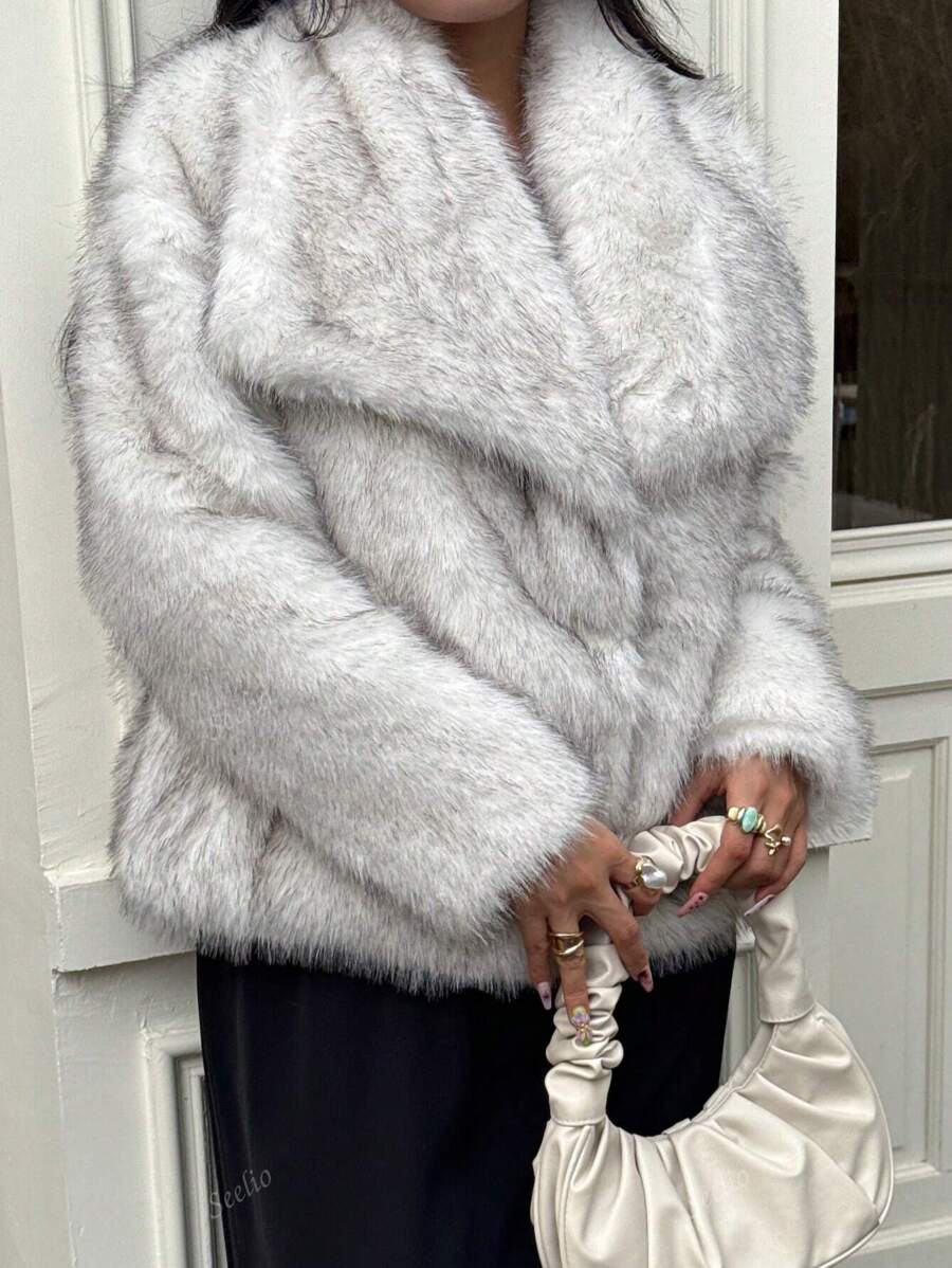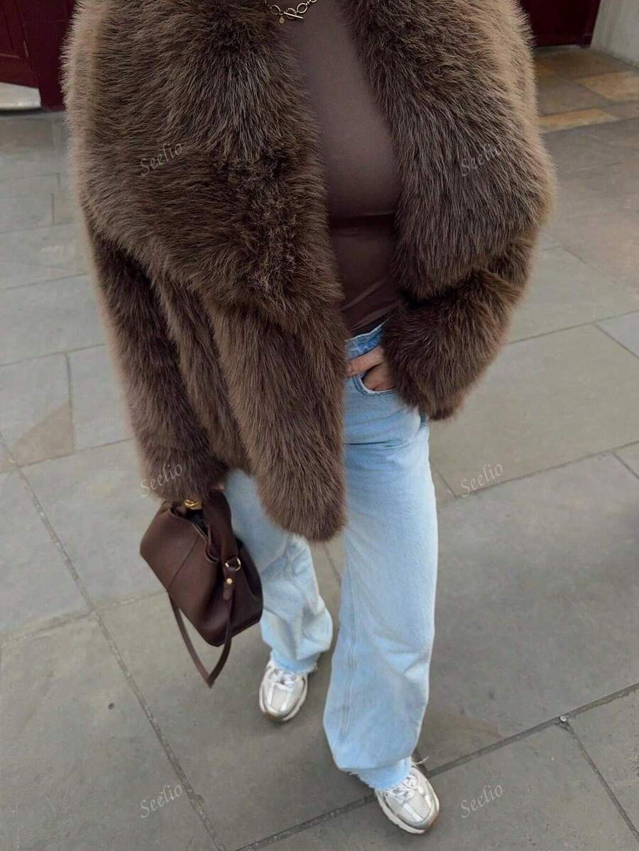 Seelio Jesen/Zima Novi Debeli Kaput sa Ovratnikom od Umjetnog Krzna, Srednje Dužine, Modni Efekt Krzna, Podstavljen Umjetnim Krznom