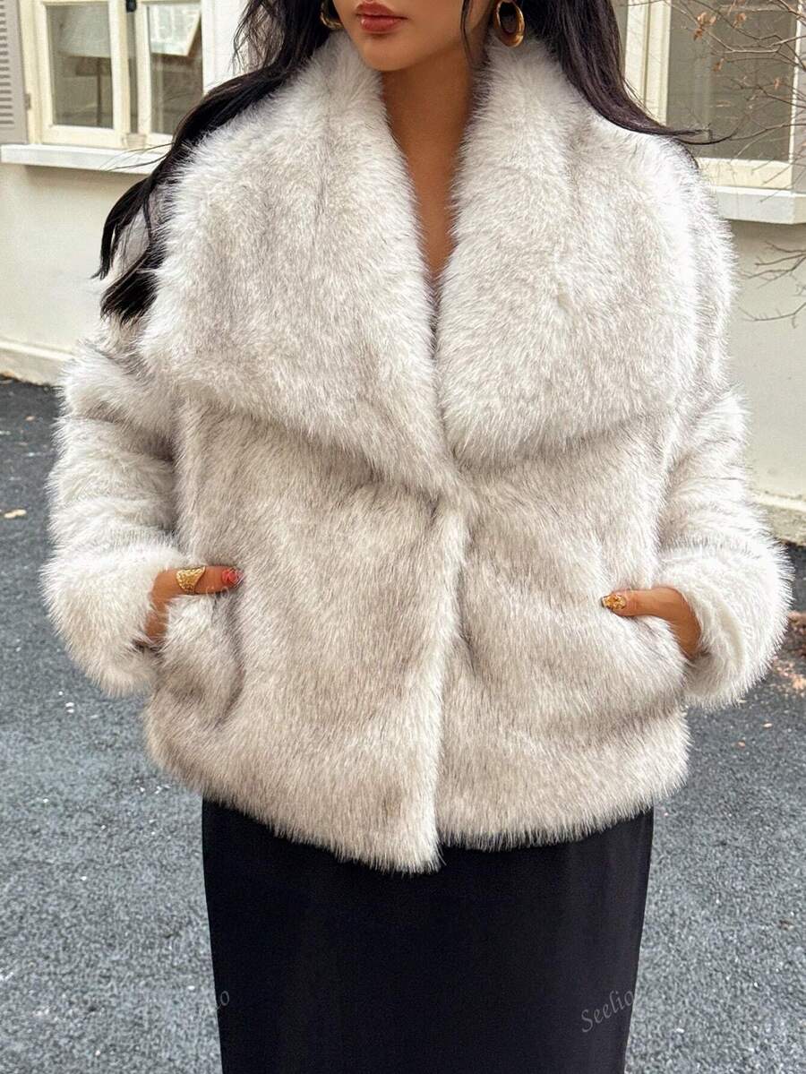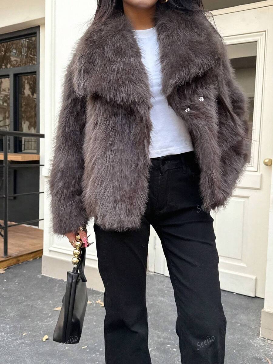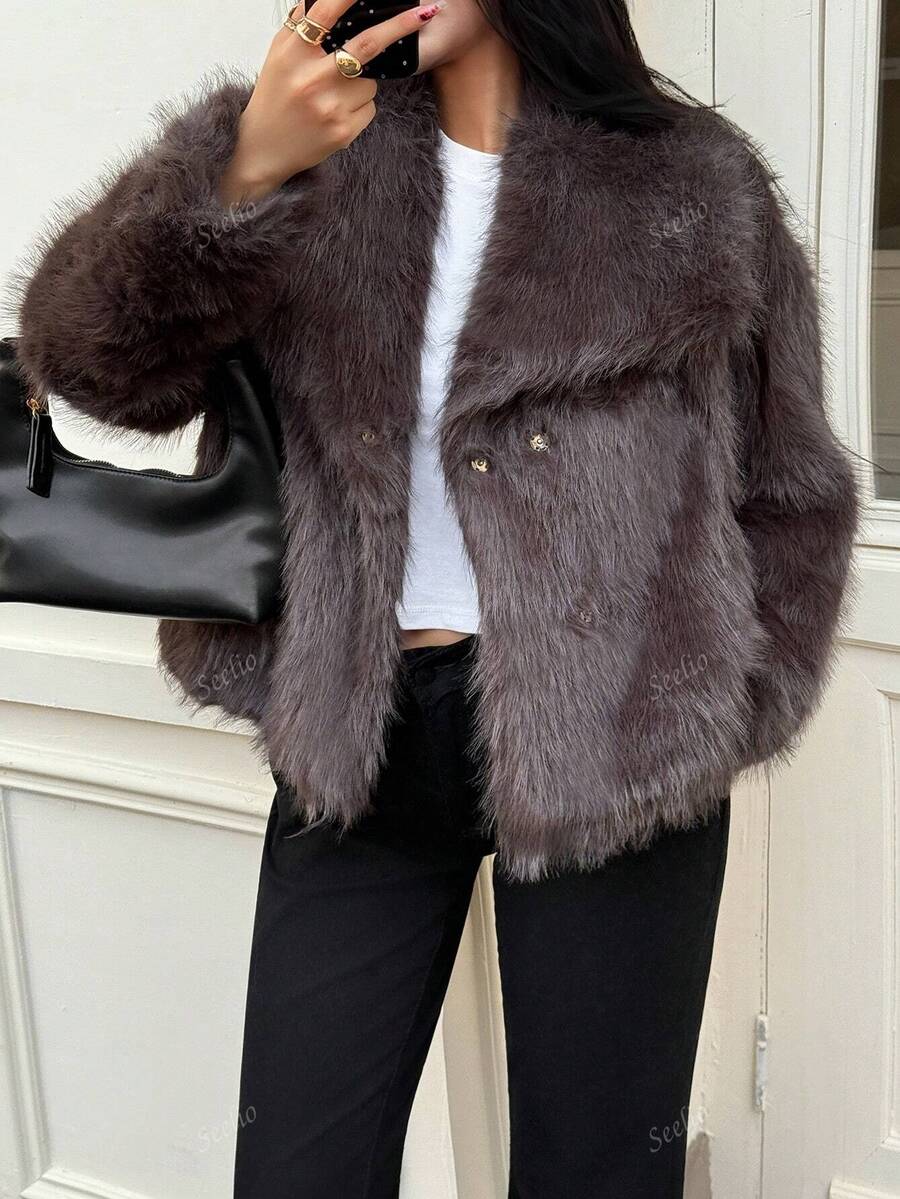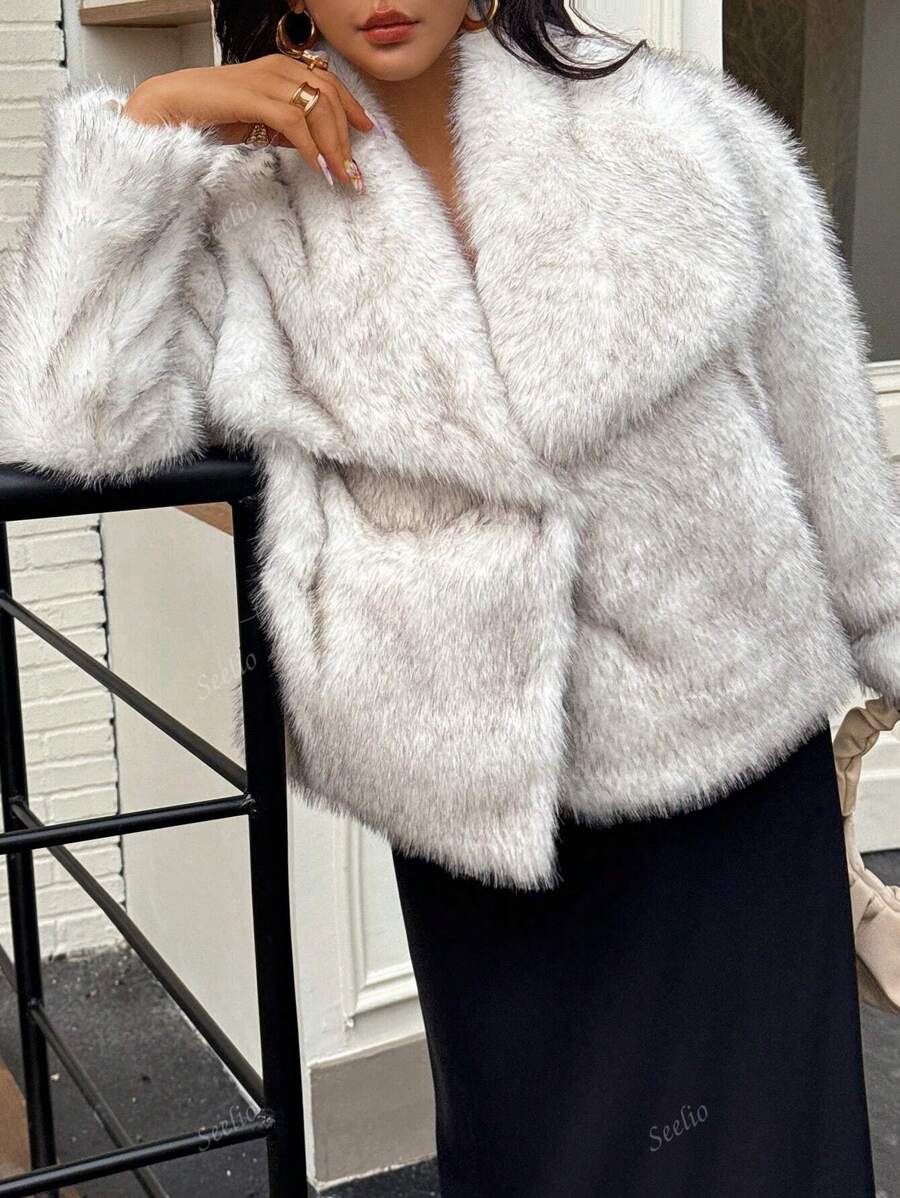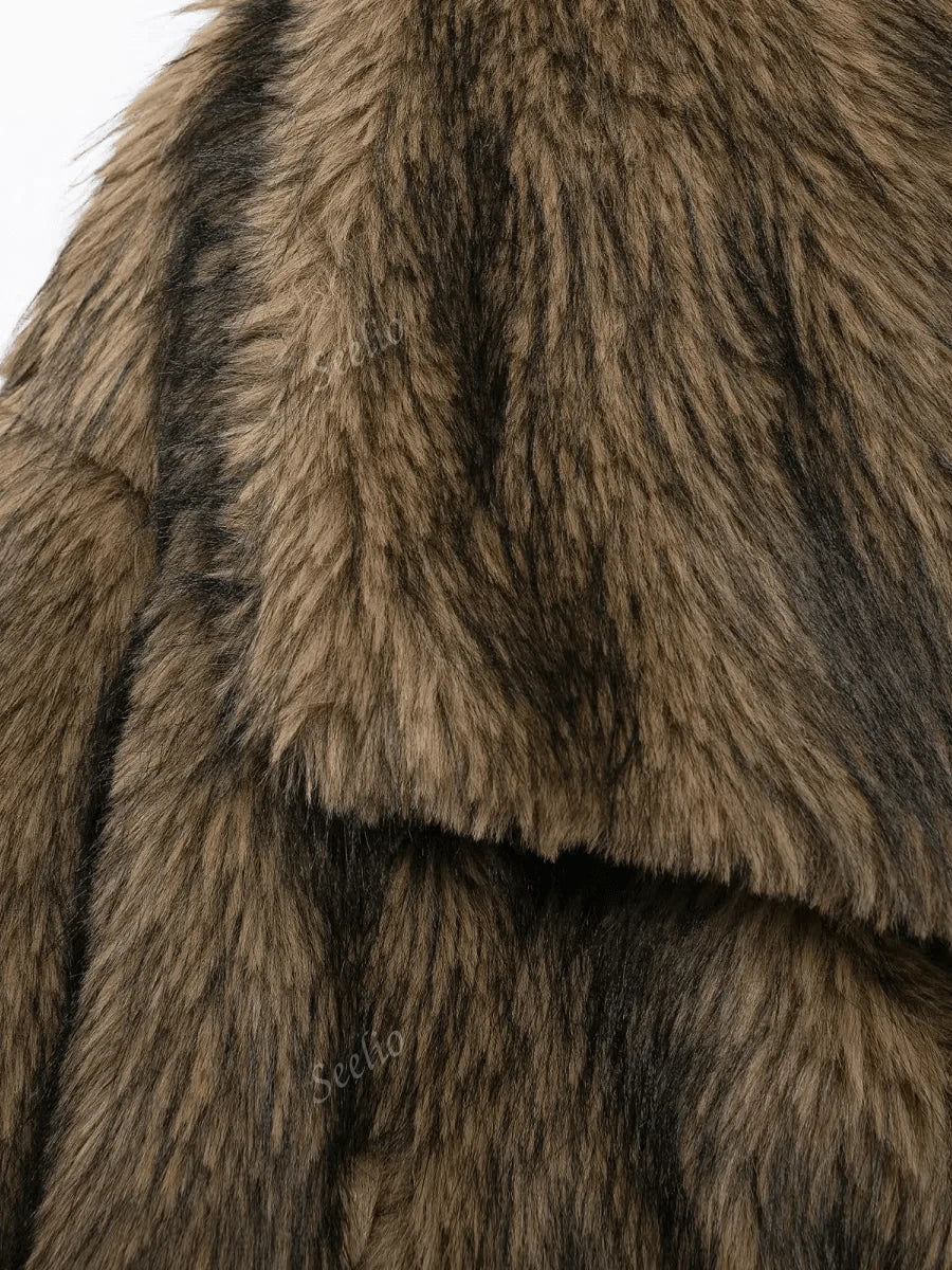 Seelio Jesen/Zima Novi Debeli Kaput sa Ovratnikom od Umjetnog Krzna, Srednje Dužine, Modni Efekt Krzna, Podstavljen Umjetnim Krznom