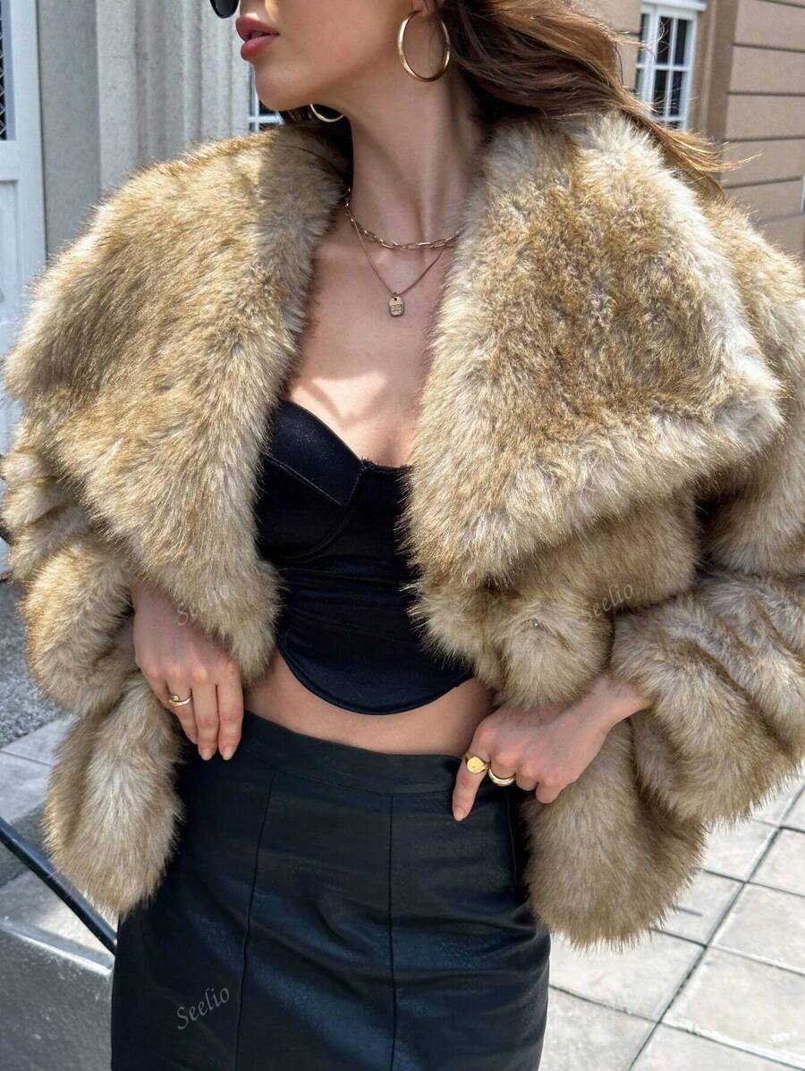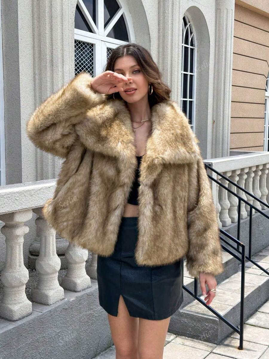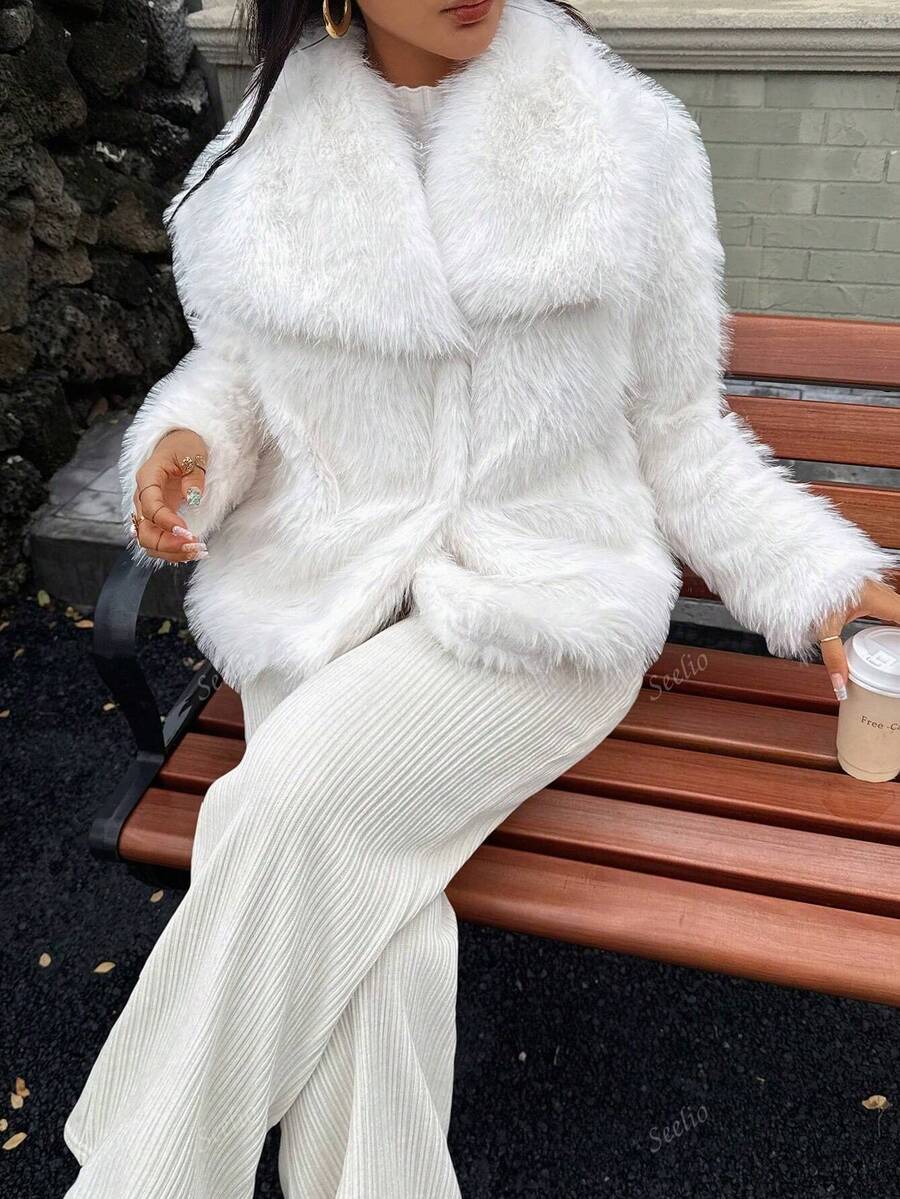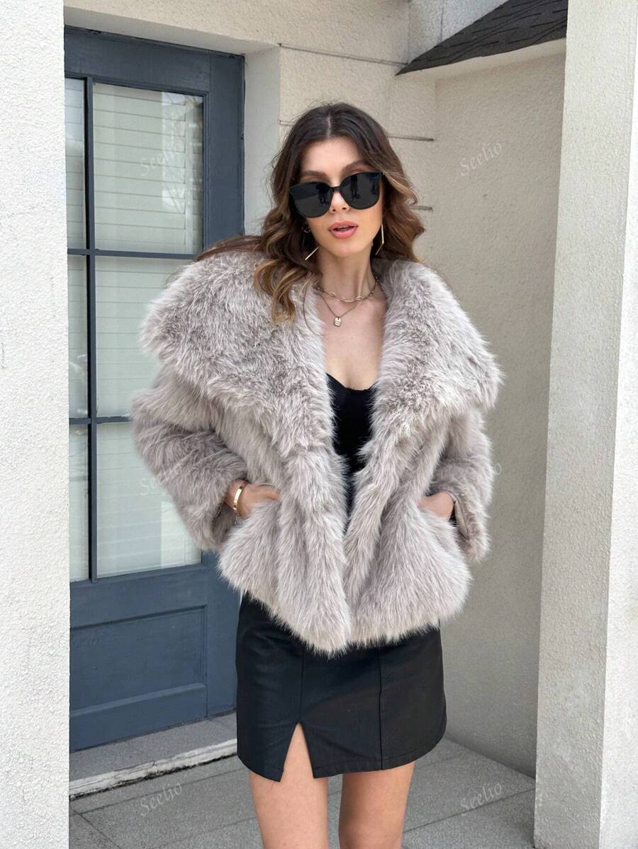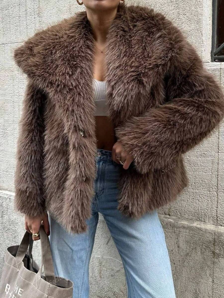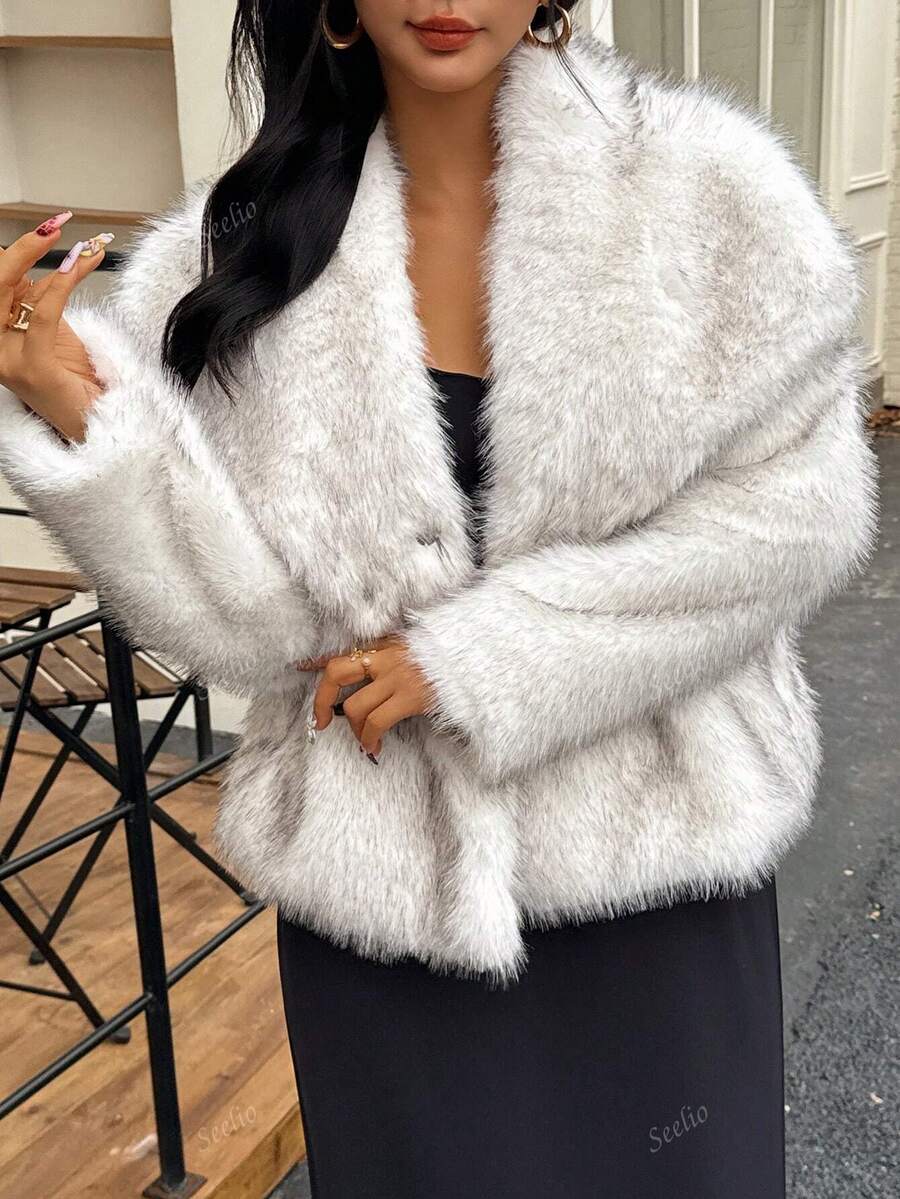 Seelio Jesen/Zima Novi Debeli Kaput sa Ovratnikom od Umjetnog Krzna, Srednje Dužine, Modni Efekt Krzna, Podstavljen Umjetnim Krznom