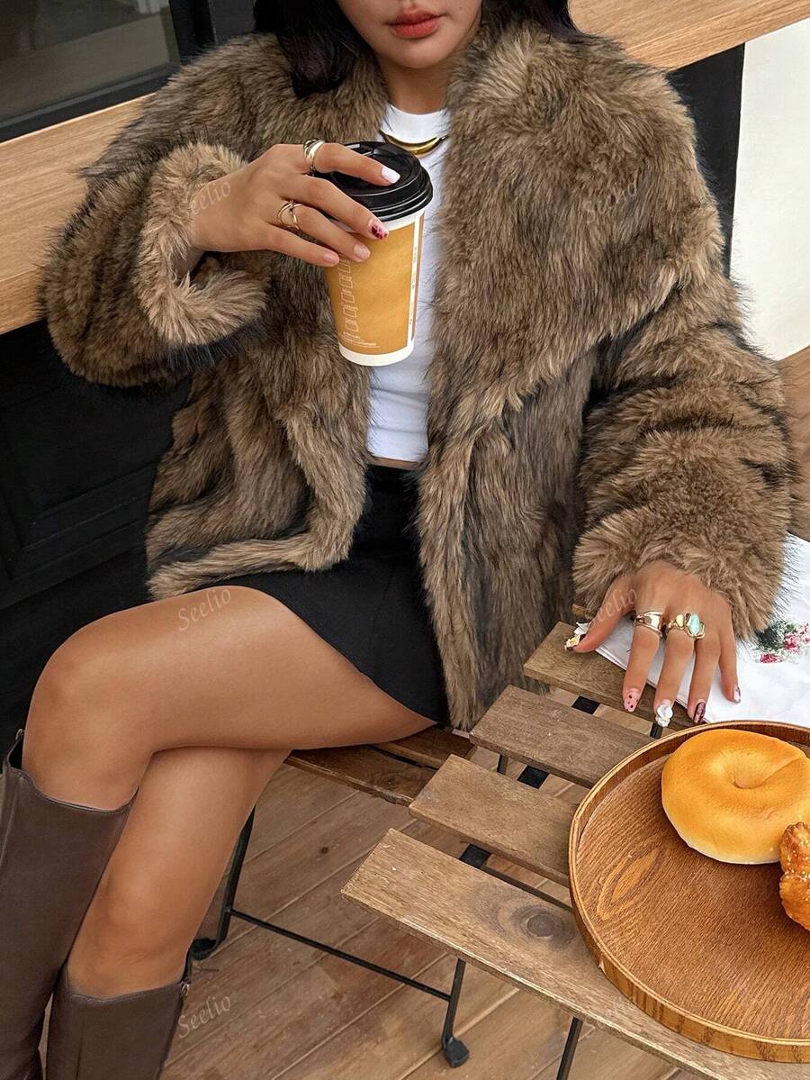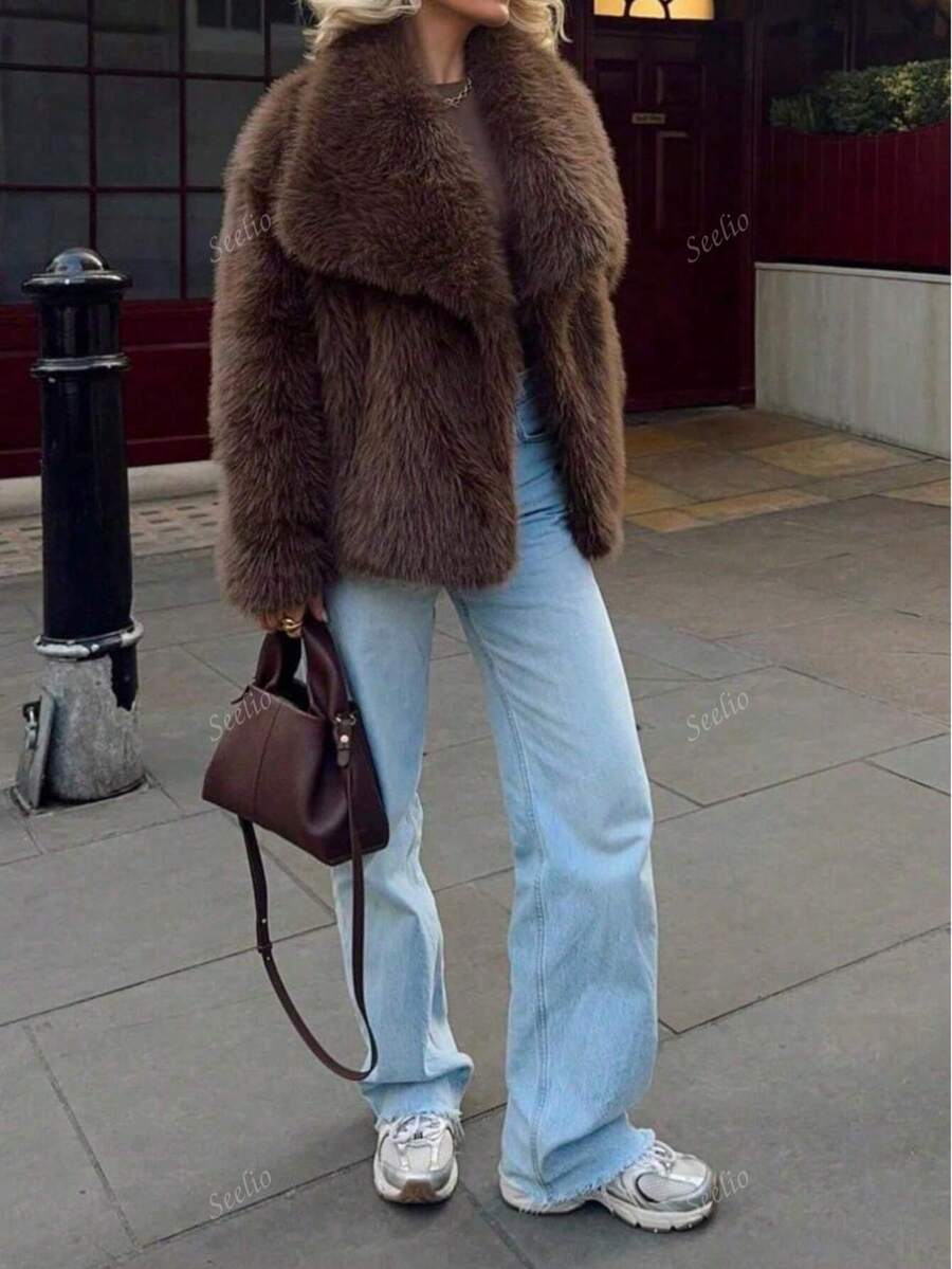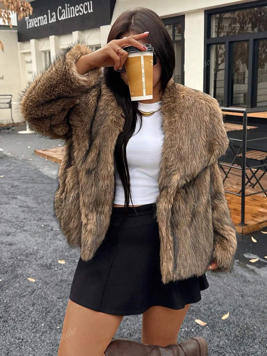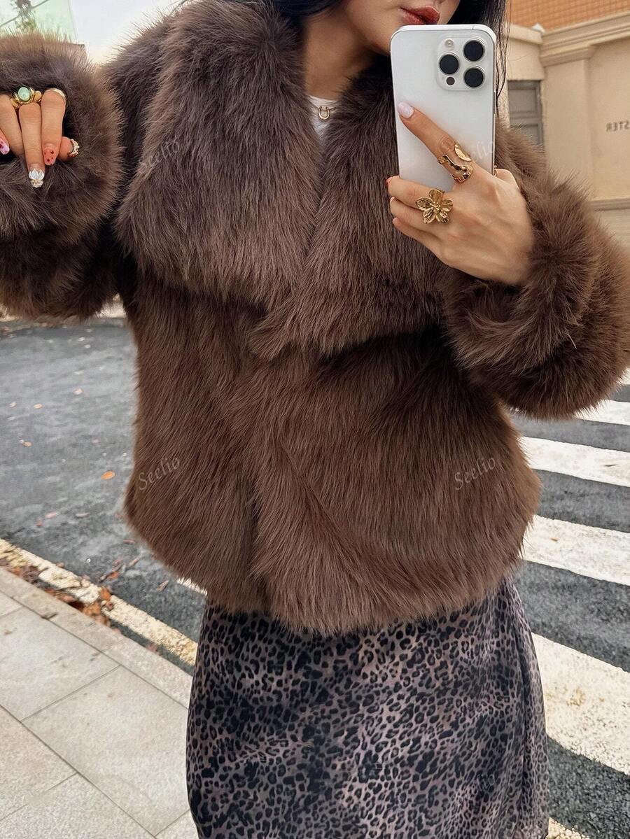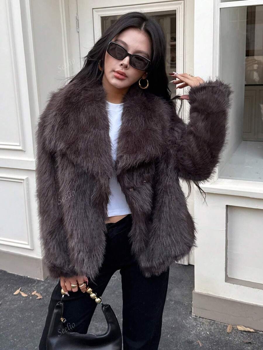 Seelio Jesen/Zima Novi Debeli Kaput sa Ovratnikom od Umjetnog Krzna, Srednje Dužine, Modni Efekt Krzna, Podstavljen Umjetnim Krznom