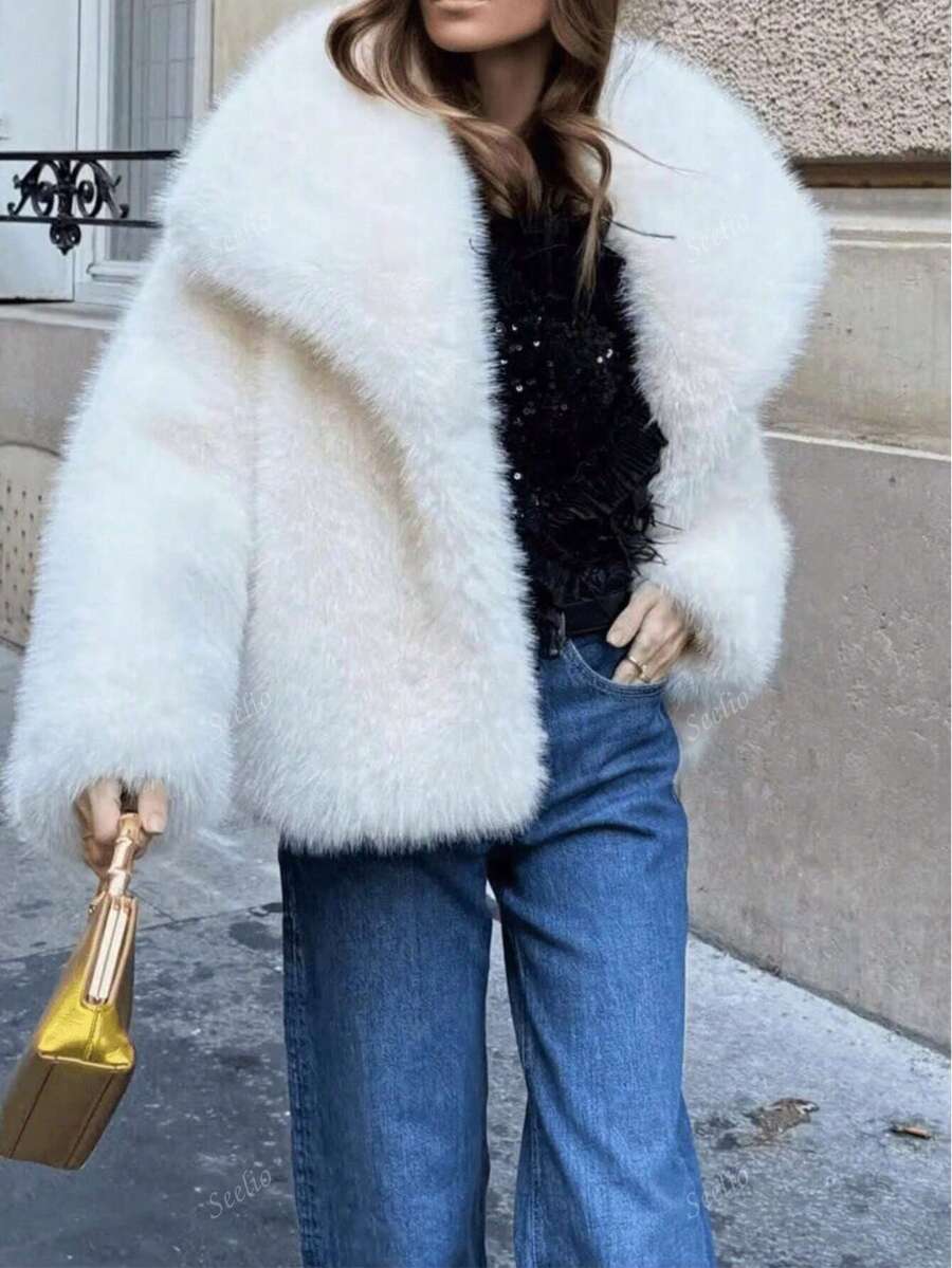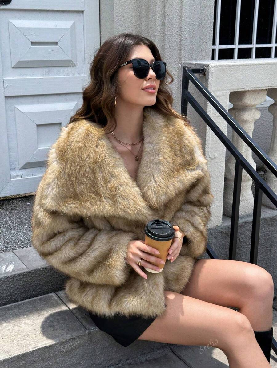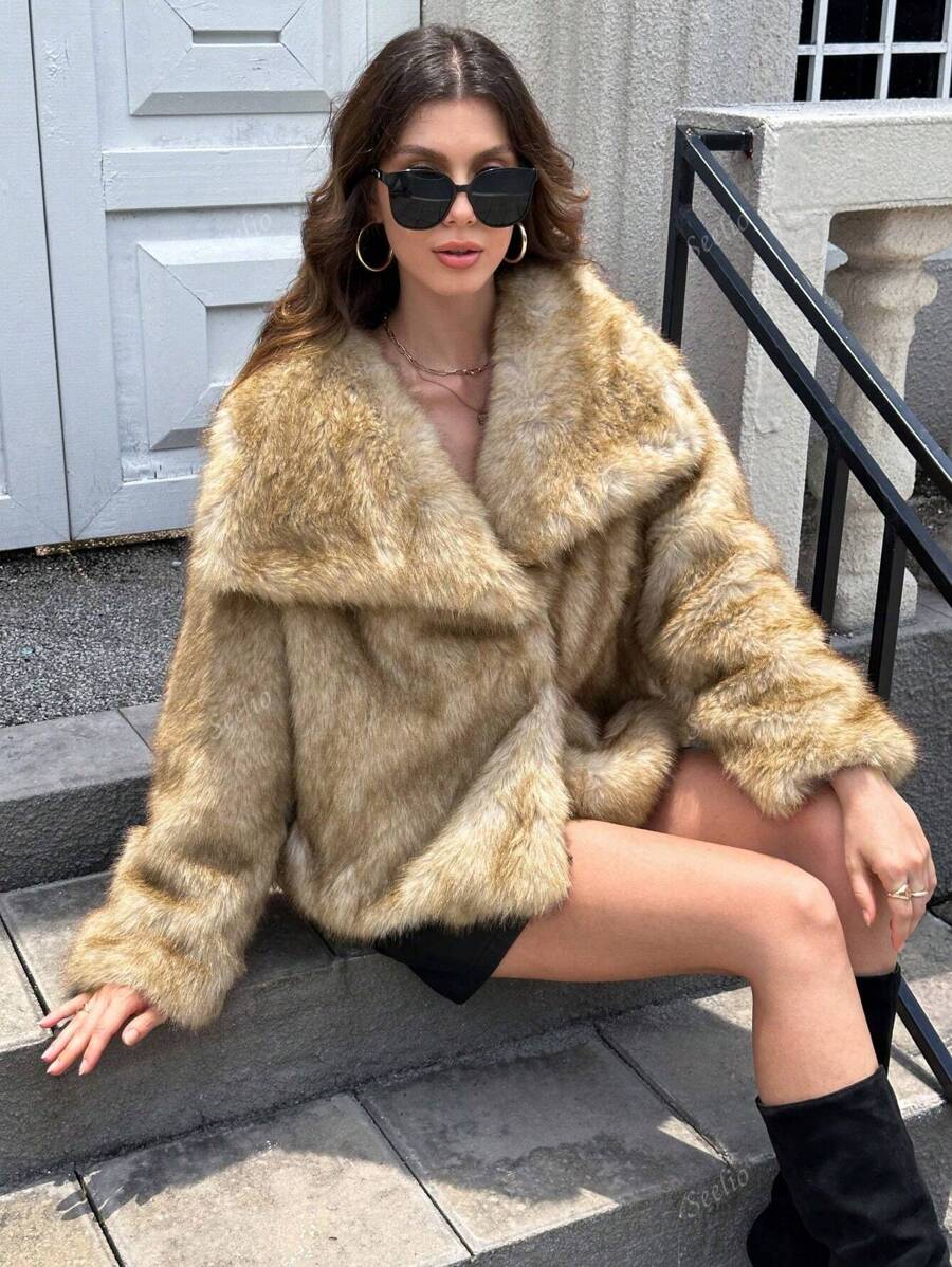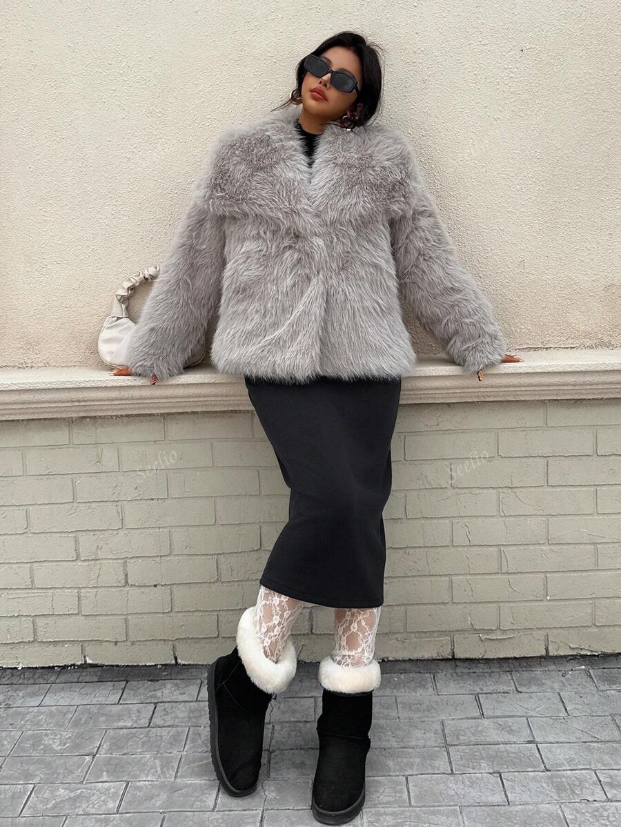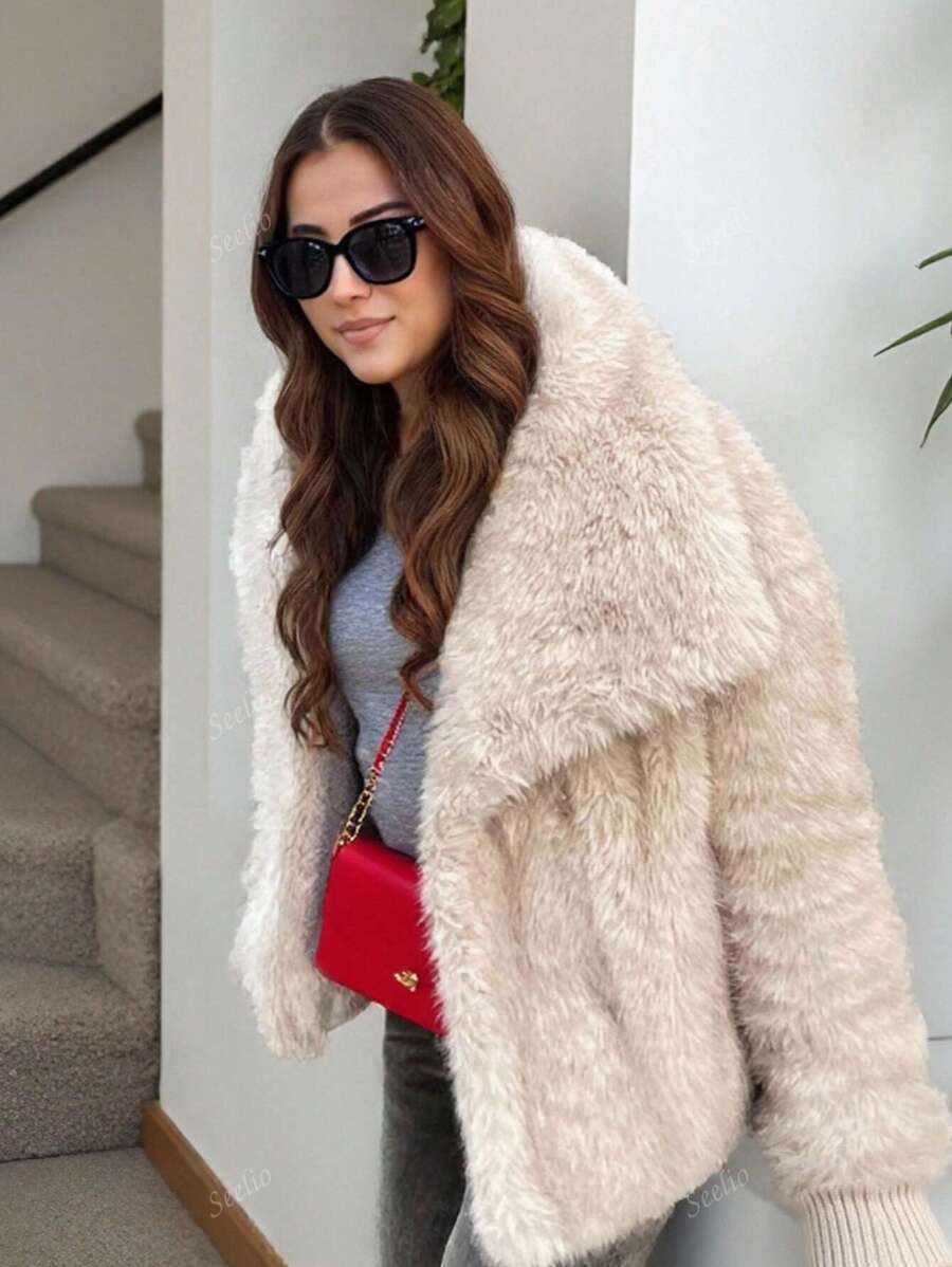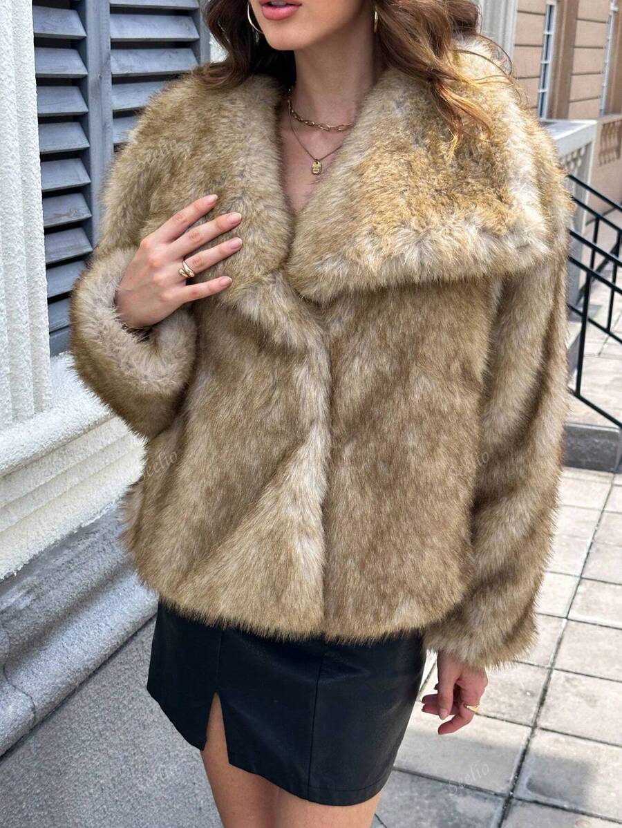 Seelio Jesen/Zima Novi Debeli Kaput sa Ovratnikom od Umjetnog Krzna, Srednje Dužine, Modni Efekt Krzna, Podstavljen Umjetnim Krznom