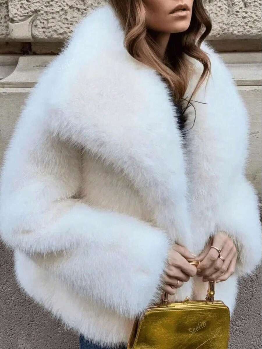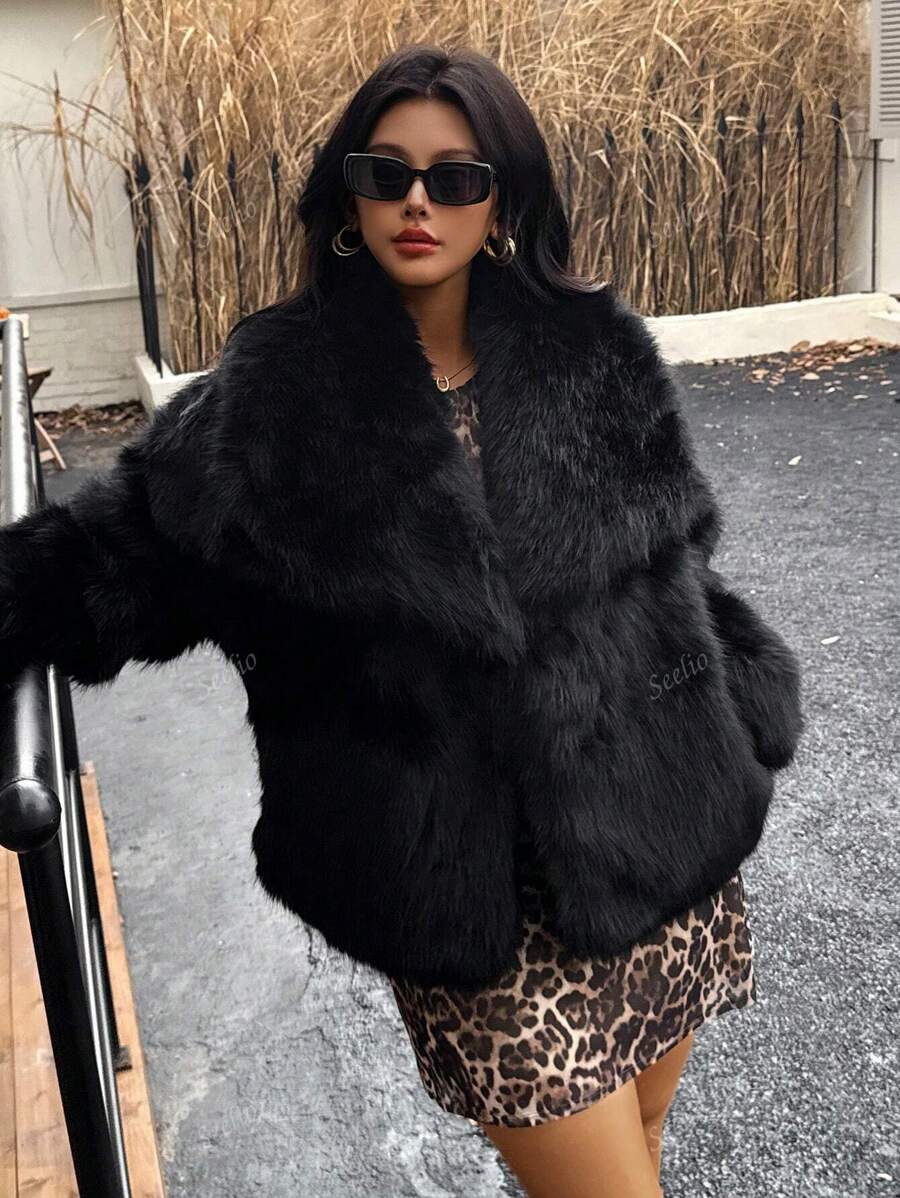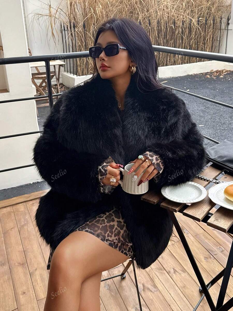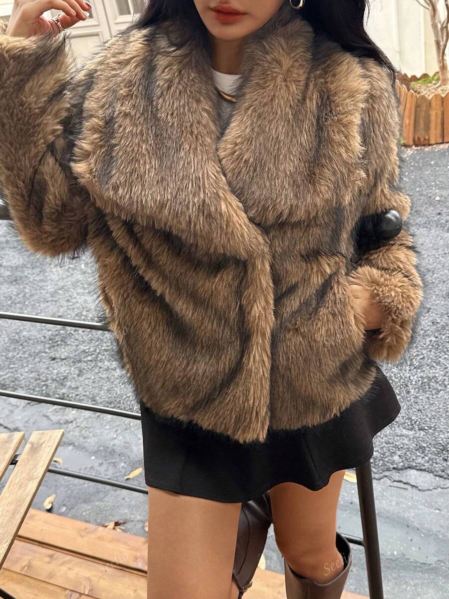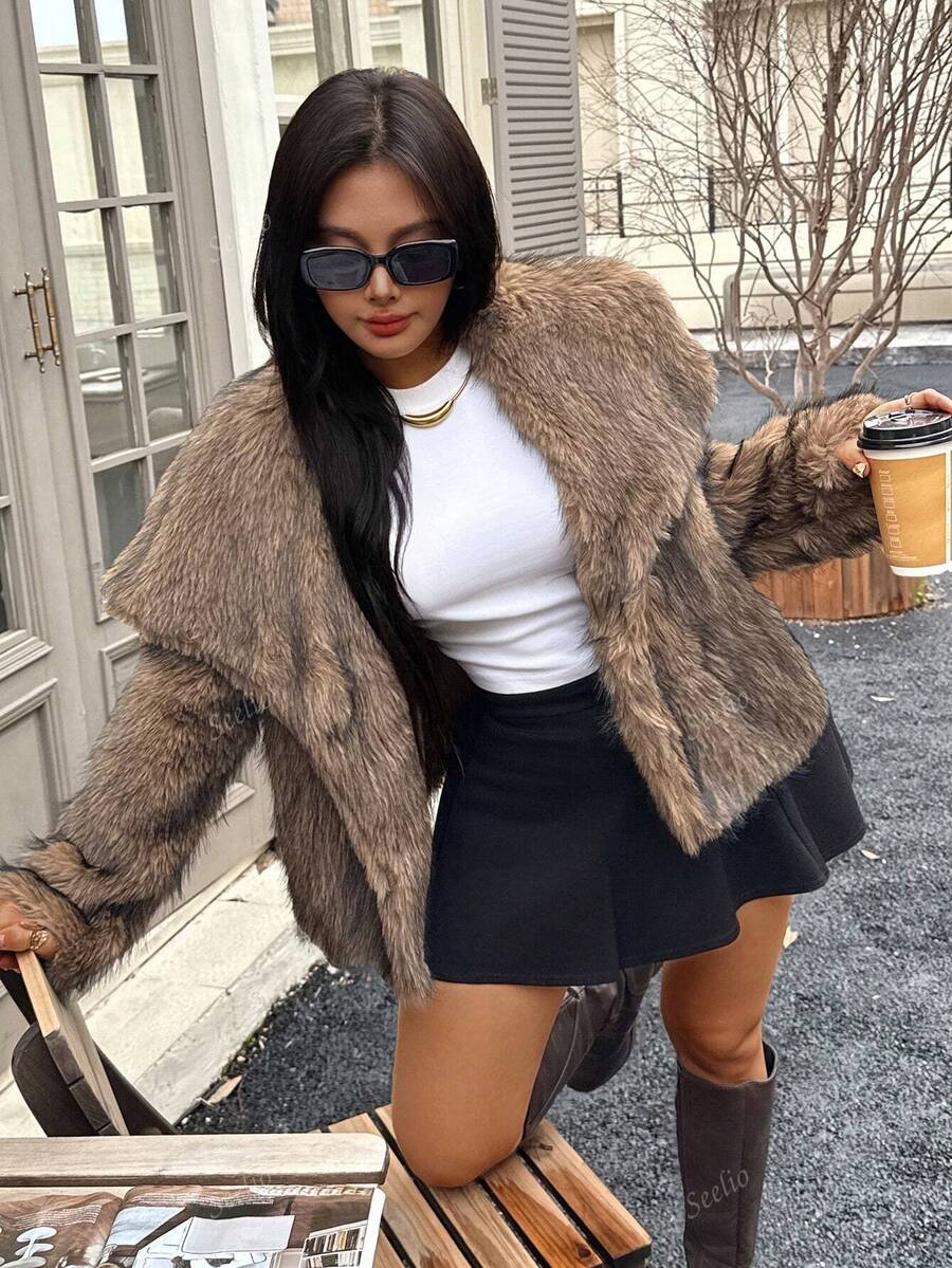 Seelio Jesen/Zima Novi Debeli Kaput sa Ovratnikom od Umjetnog Krzna, Srednje Dužine, Modni Efekt Krzna, Podstavljen Umjetnim Krznom