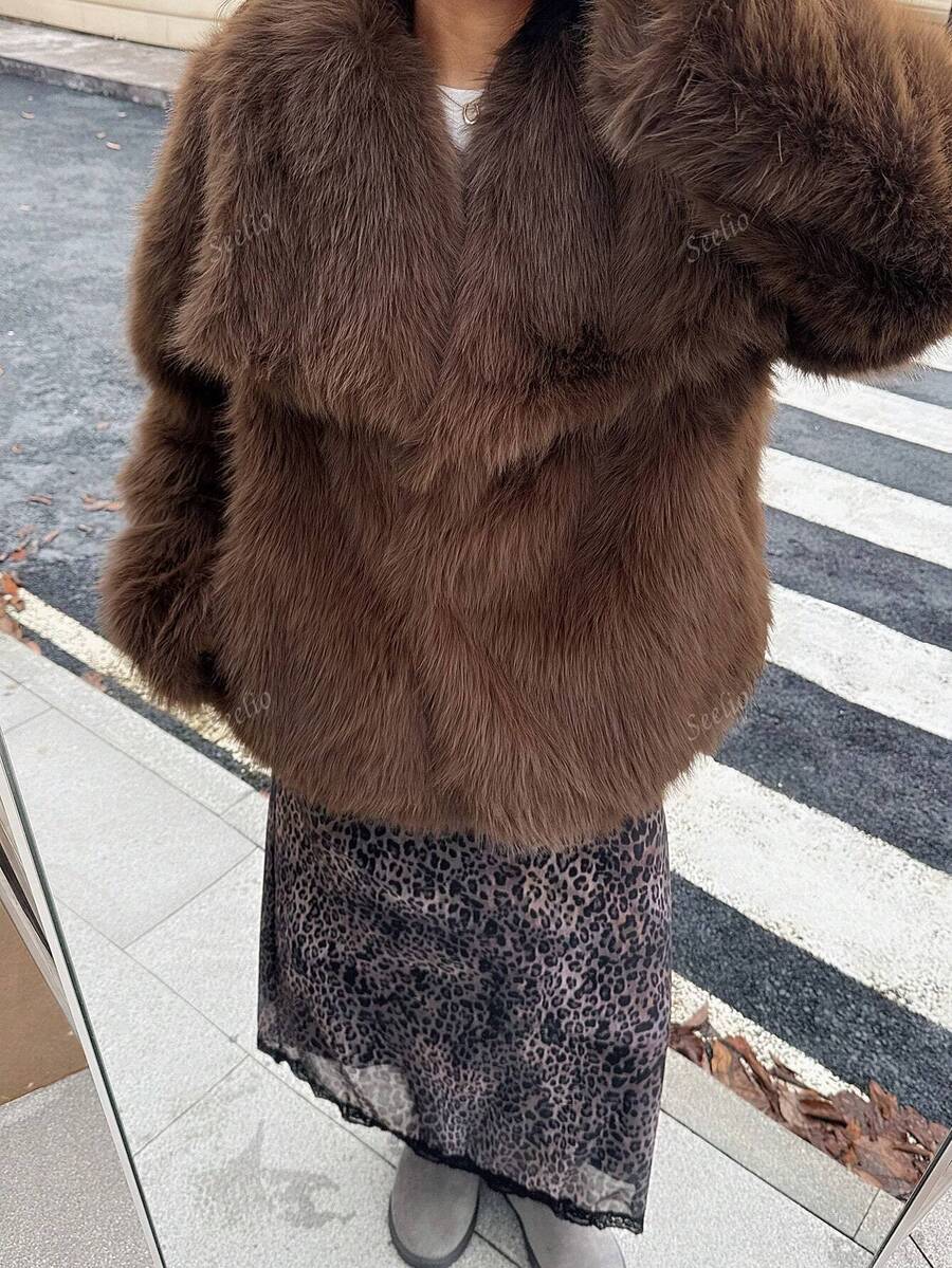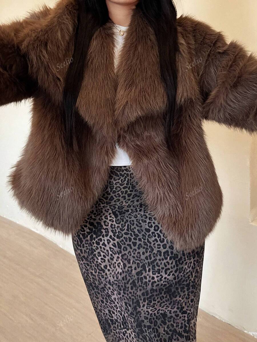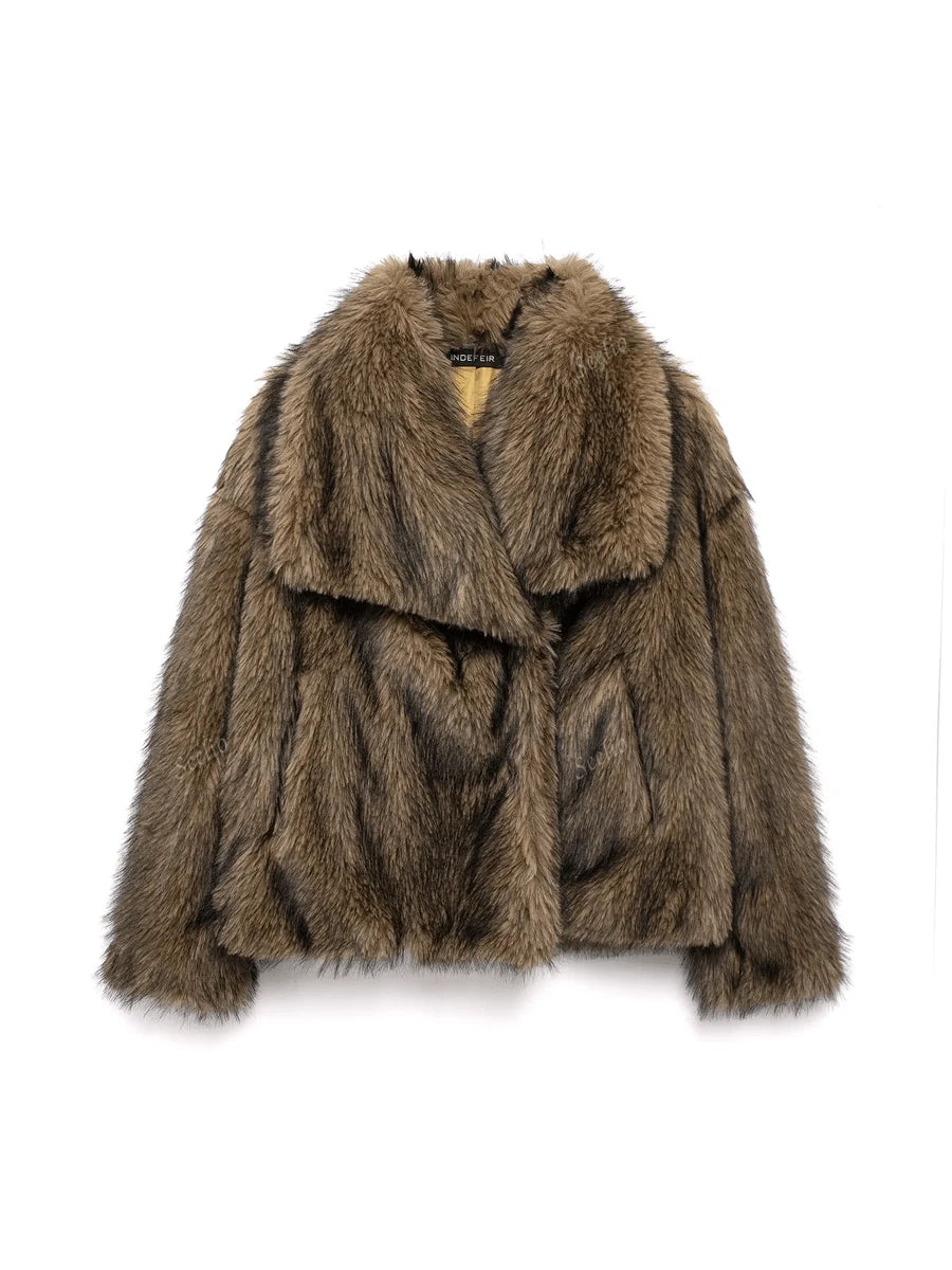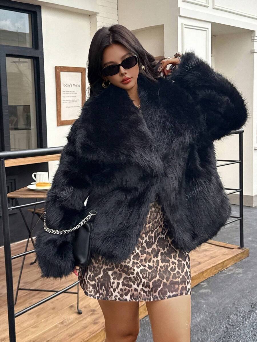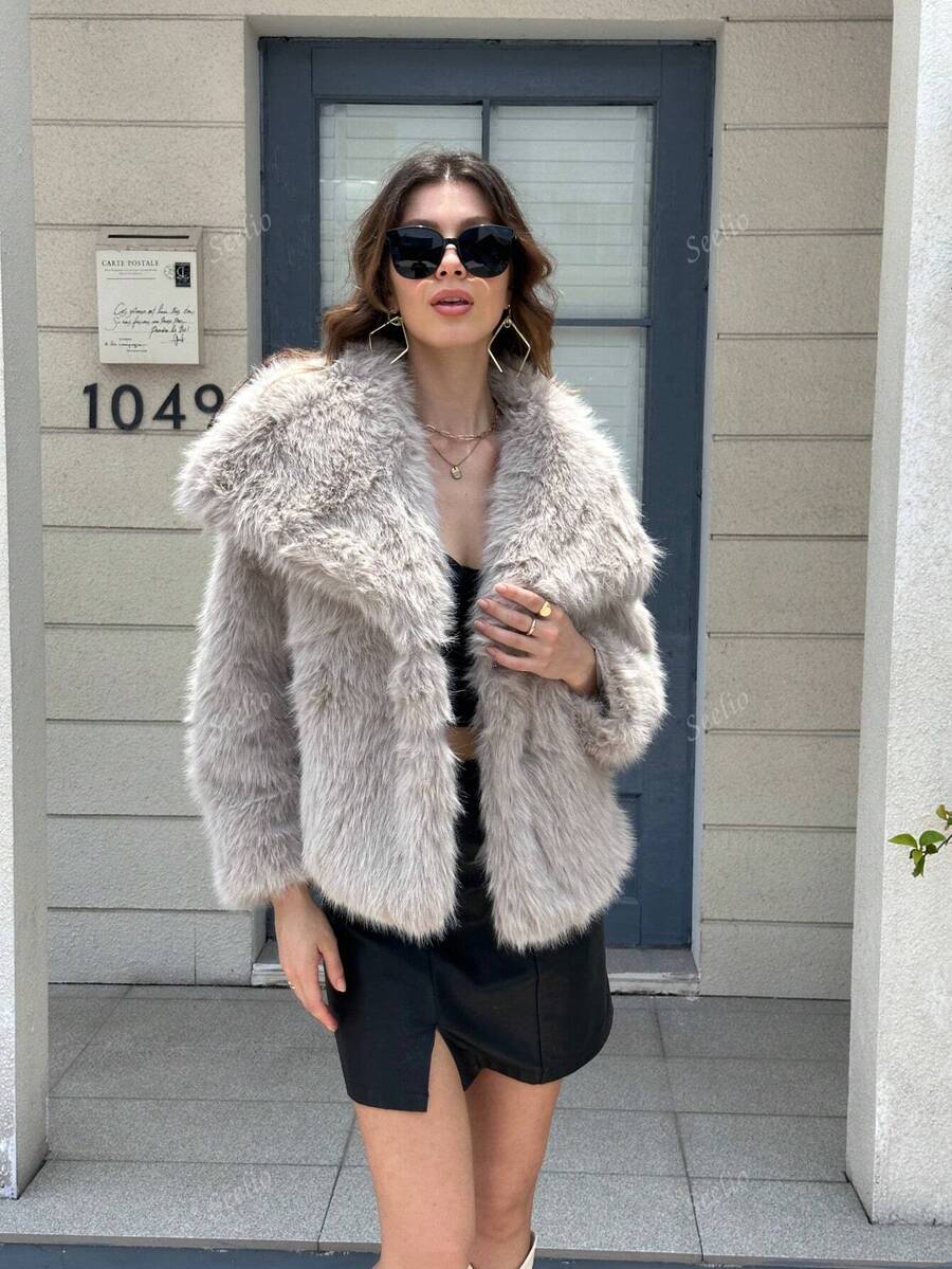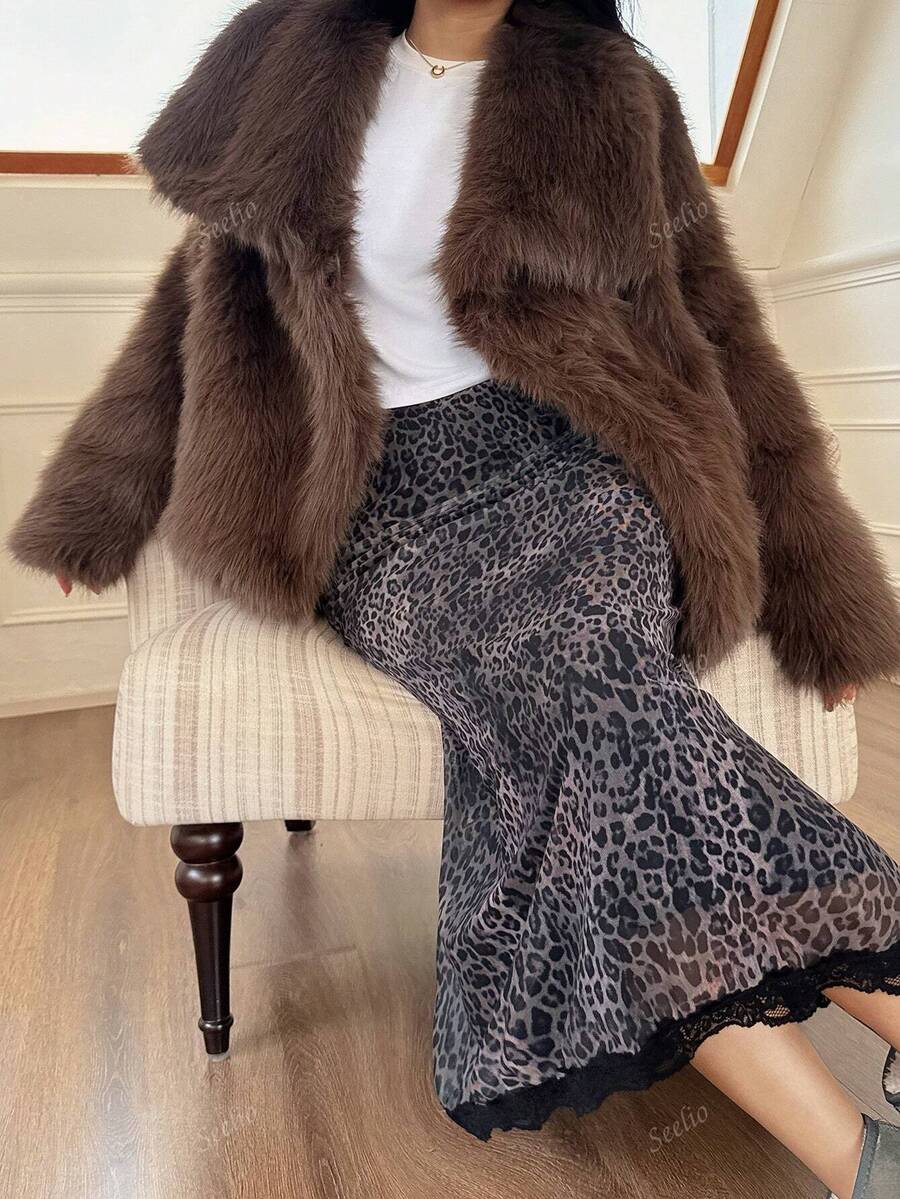 Seelio Jesen/Zima Novi Debeli Kaput sa Ovratnikom od Umjetnog Krzna, Srednje Dužine, Modni Efekt Krzna, Podstavljen Umjetnim Krznom